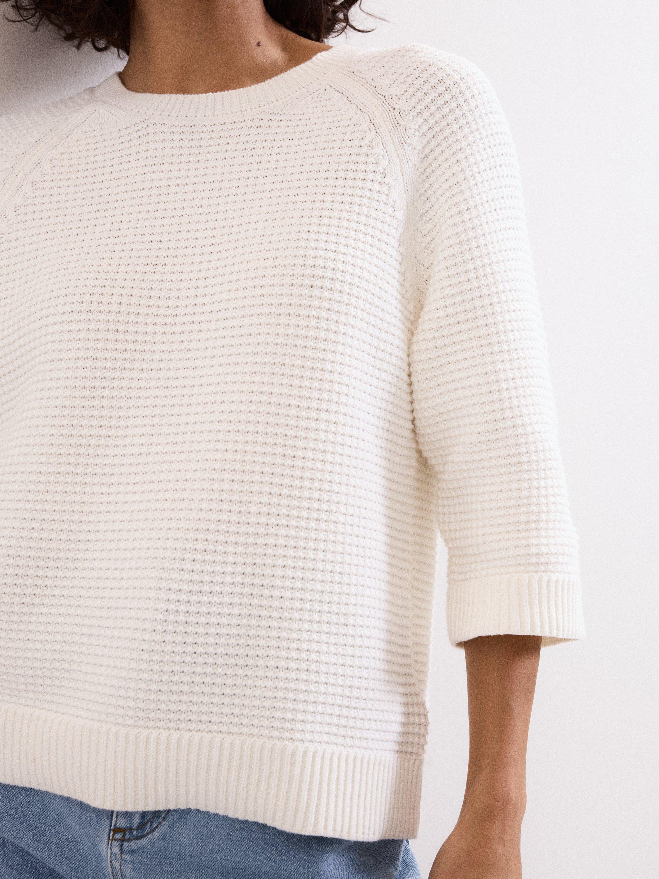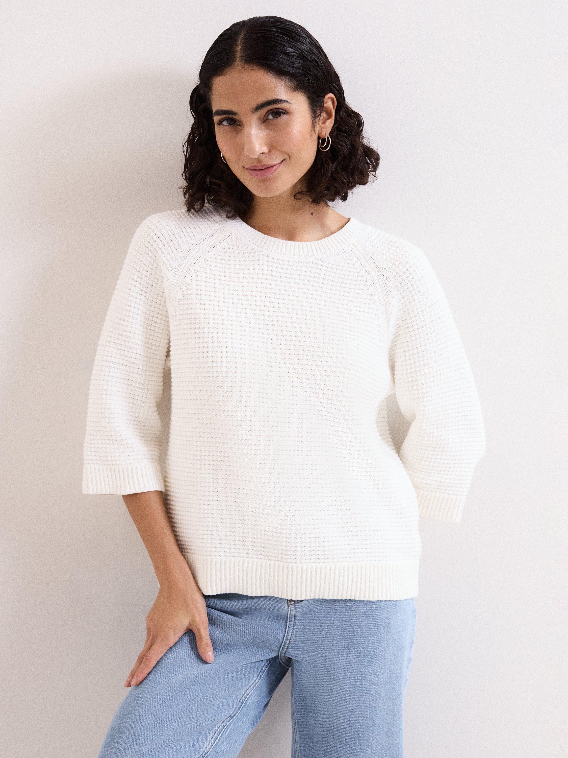 A round neck jumper by Phase Eight. Its textured cotton and three quarter length sleeves bring practical flair to your every day, offering warmth that fits effortlessly into your routine.