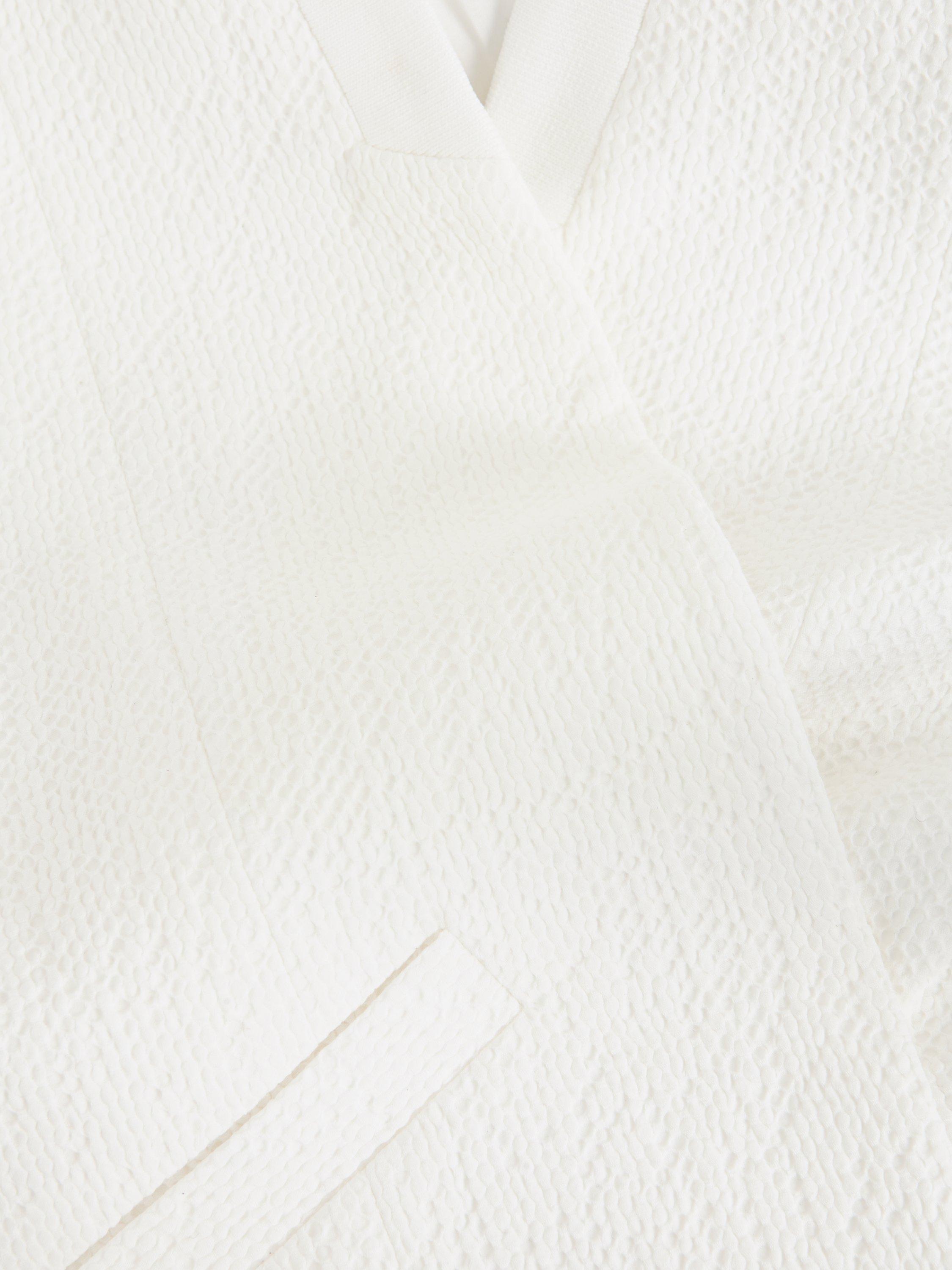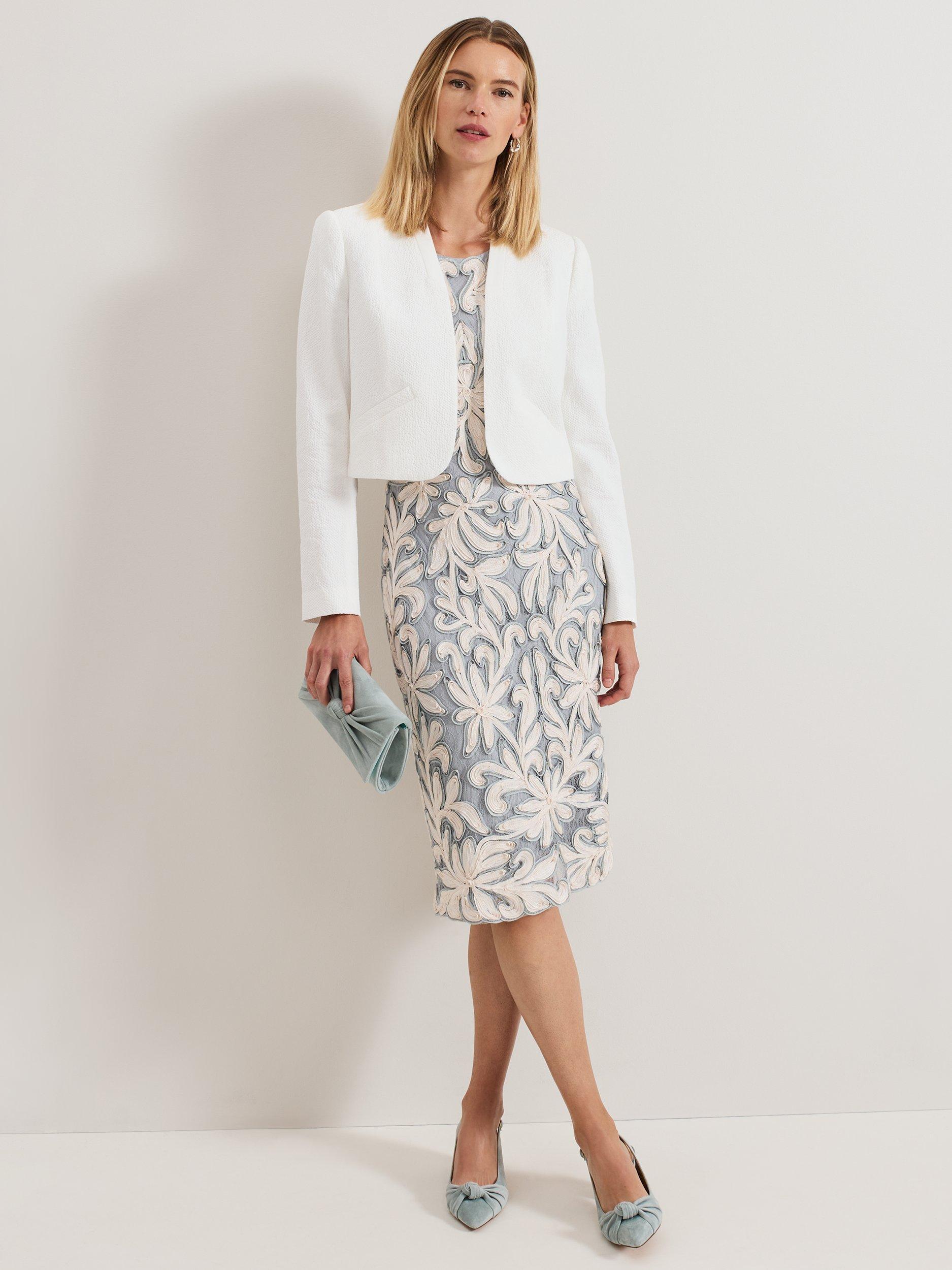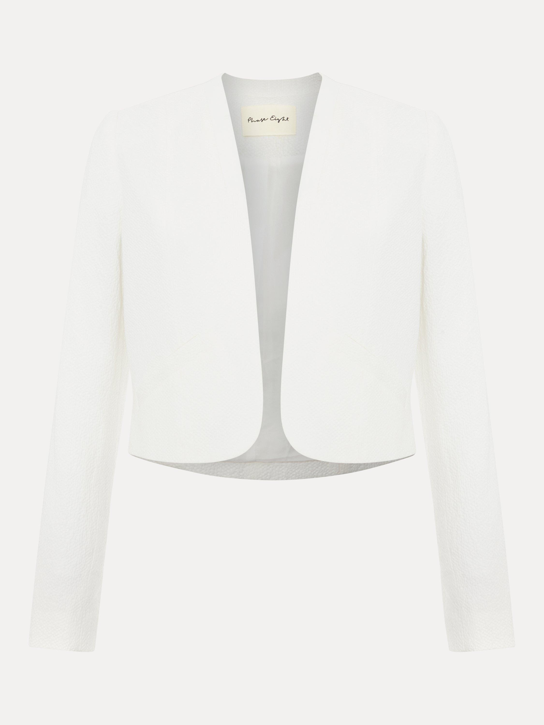 The Olivia jacket is a relaxed yet refined style. In a timeless shade, the jacket features a subtle texture for a modern edge. The cropped silhouette makes it the perfect finishing touch for your event styles for a sophisticated look.