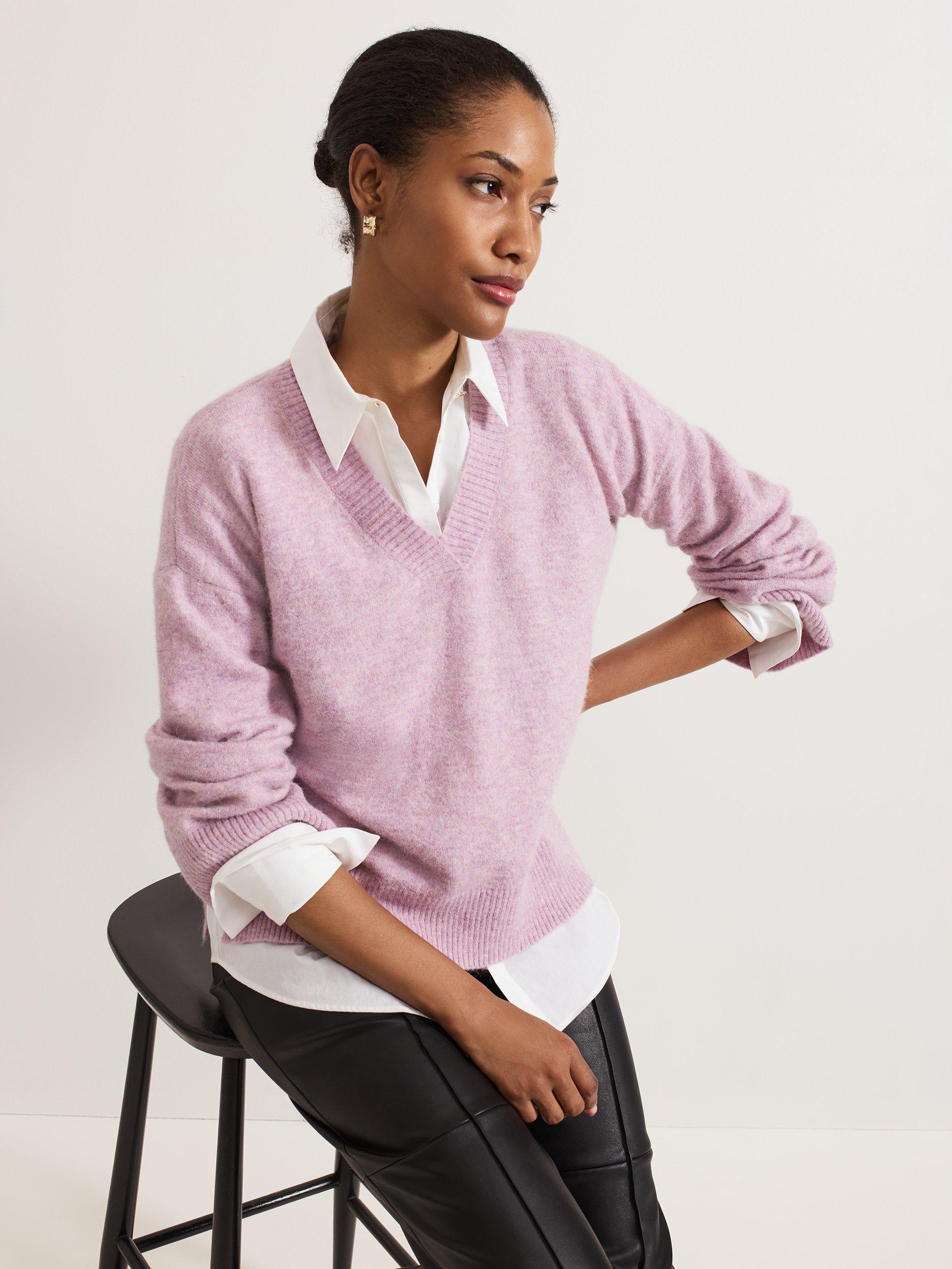 Nice and simple with a v-neckline, this jumper by Phase Eight is blended with wool for cosy wear.