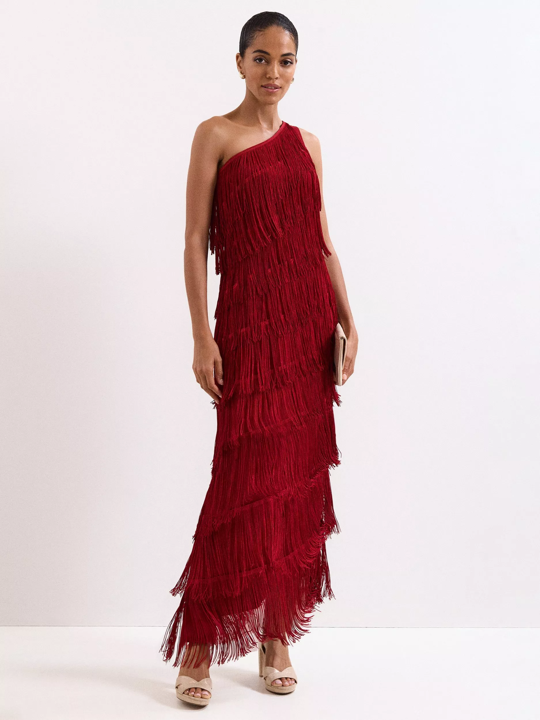 Phase EightOtto Fringed Maxi Dress, Dark Red