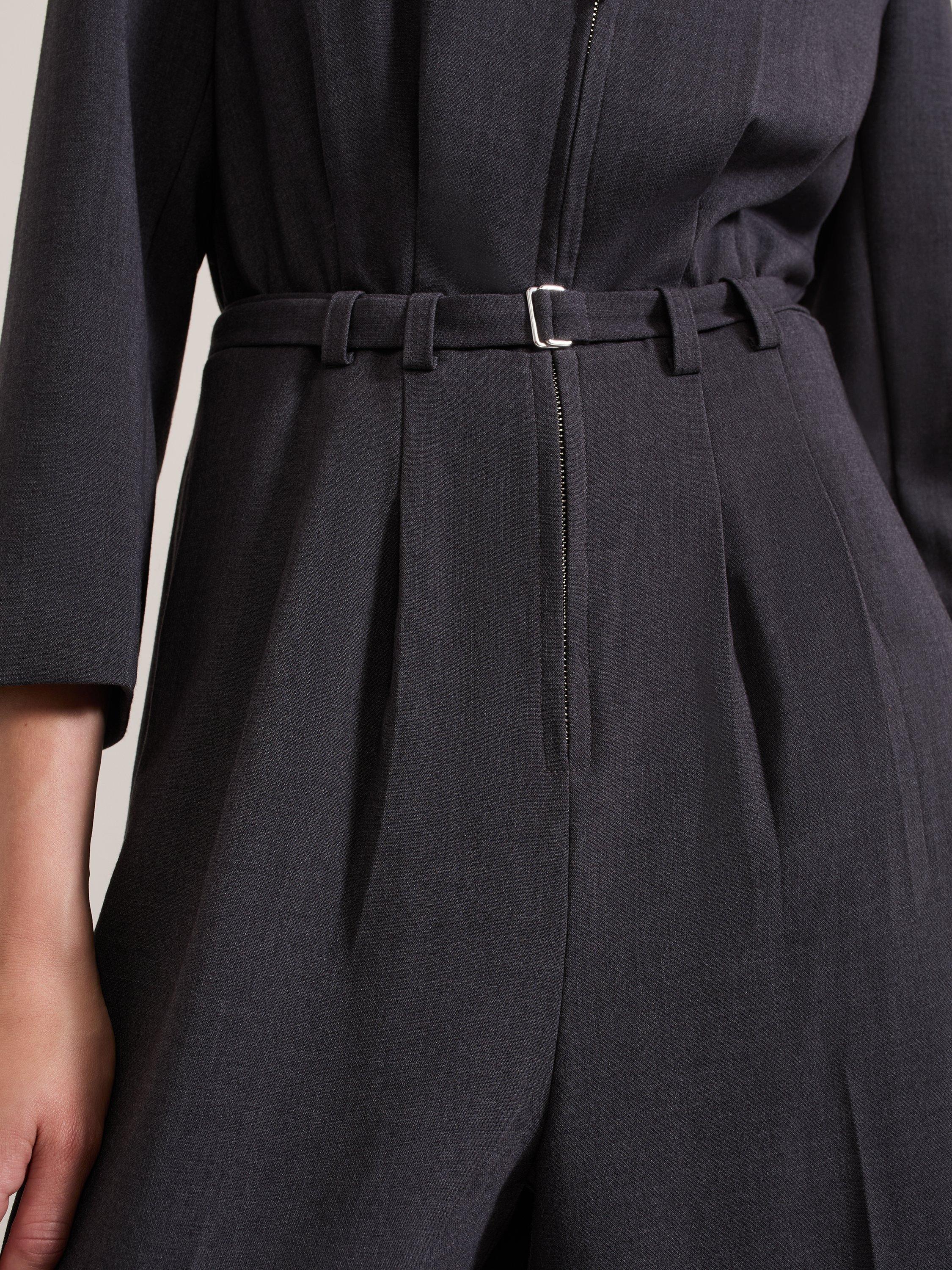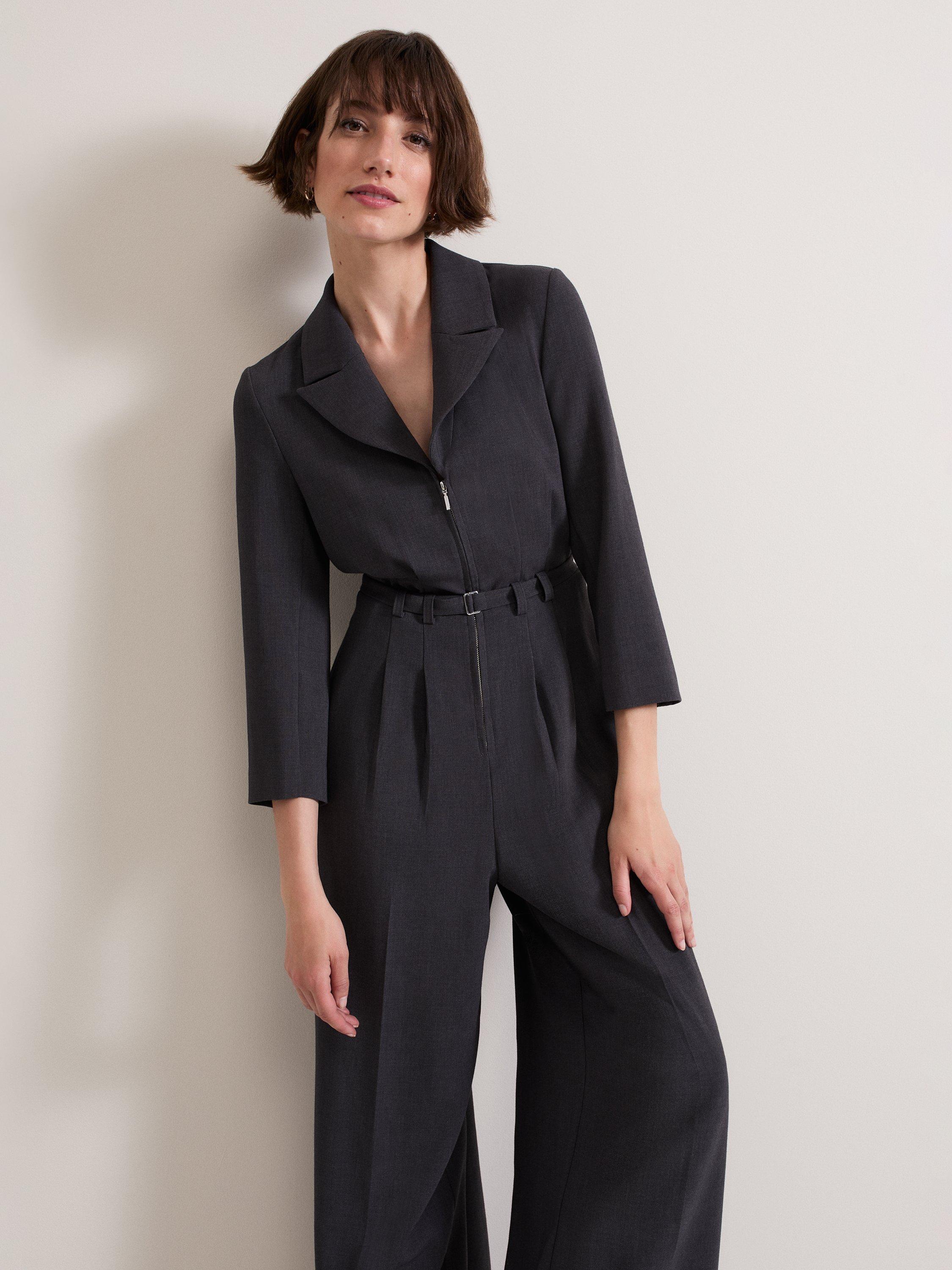 The Pamela jumpsuit features zip detailing on the bodice and cuffs and falls to a modern wide leg. With an adjustable belt to cinch the waist and handy pockets, our jumpsuit creates a contemporary silhouette.