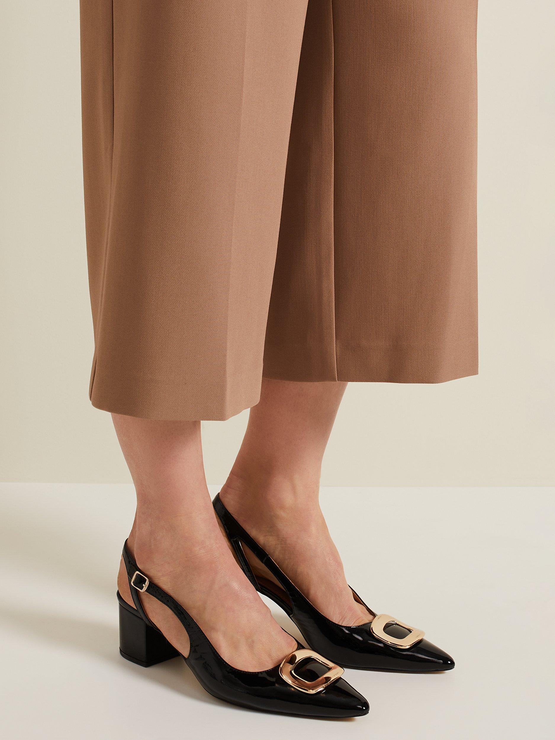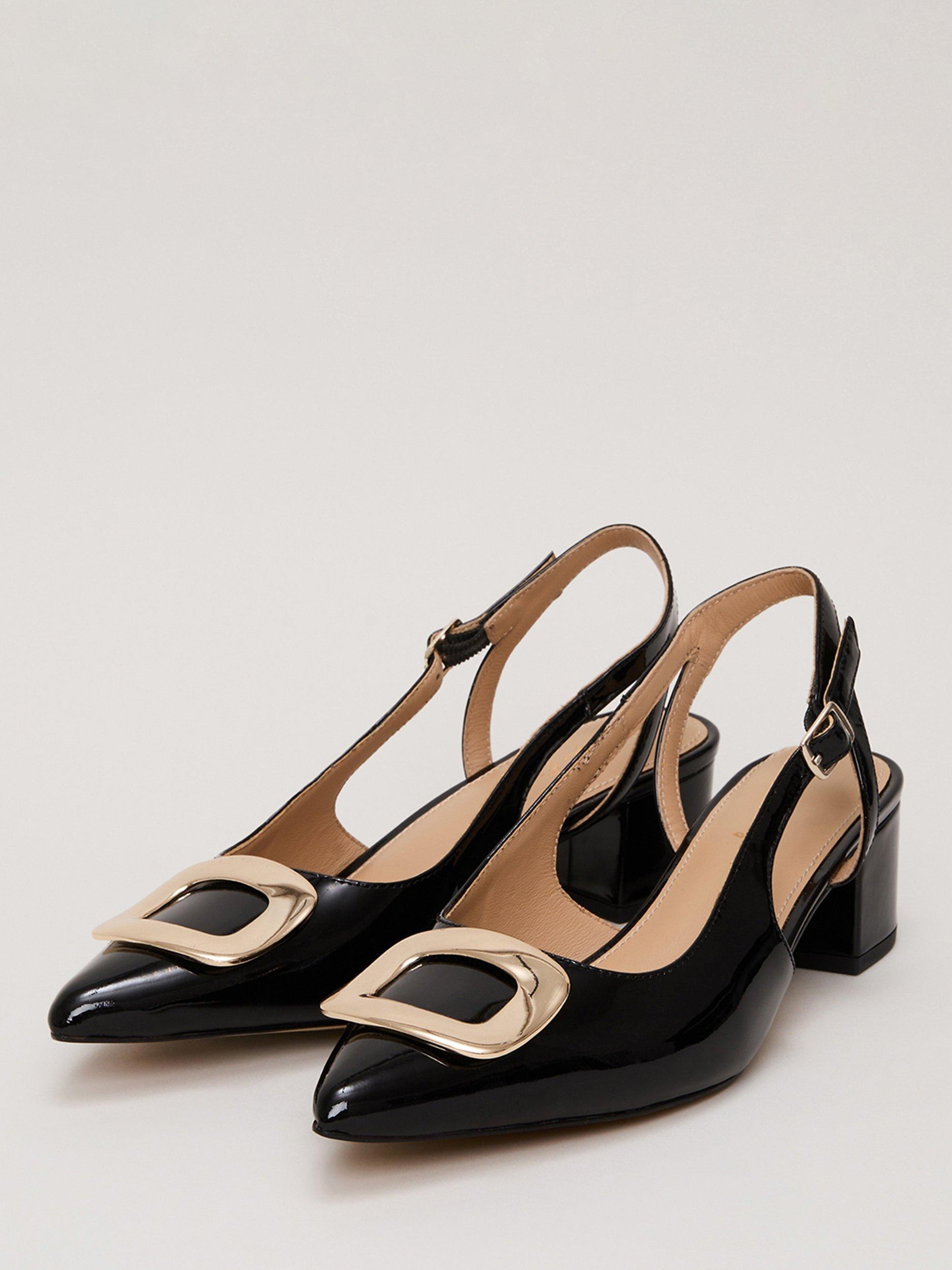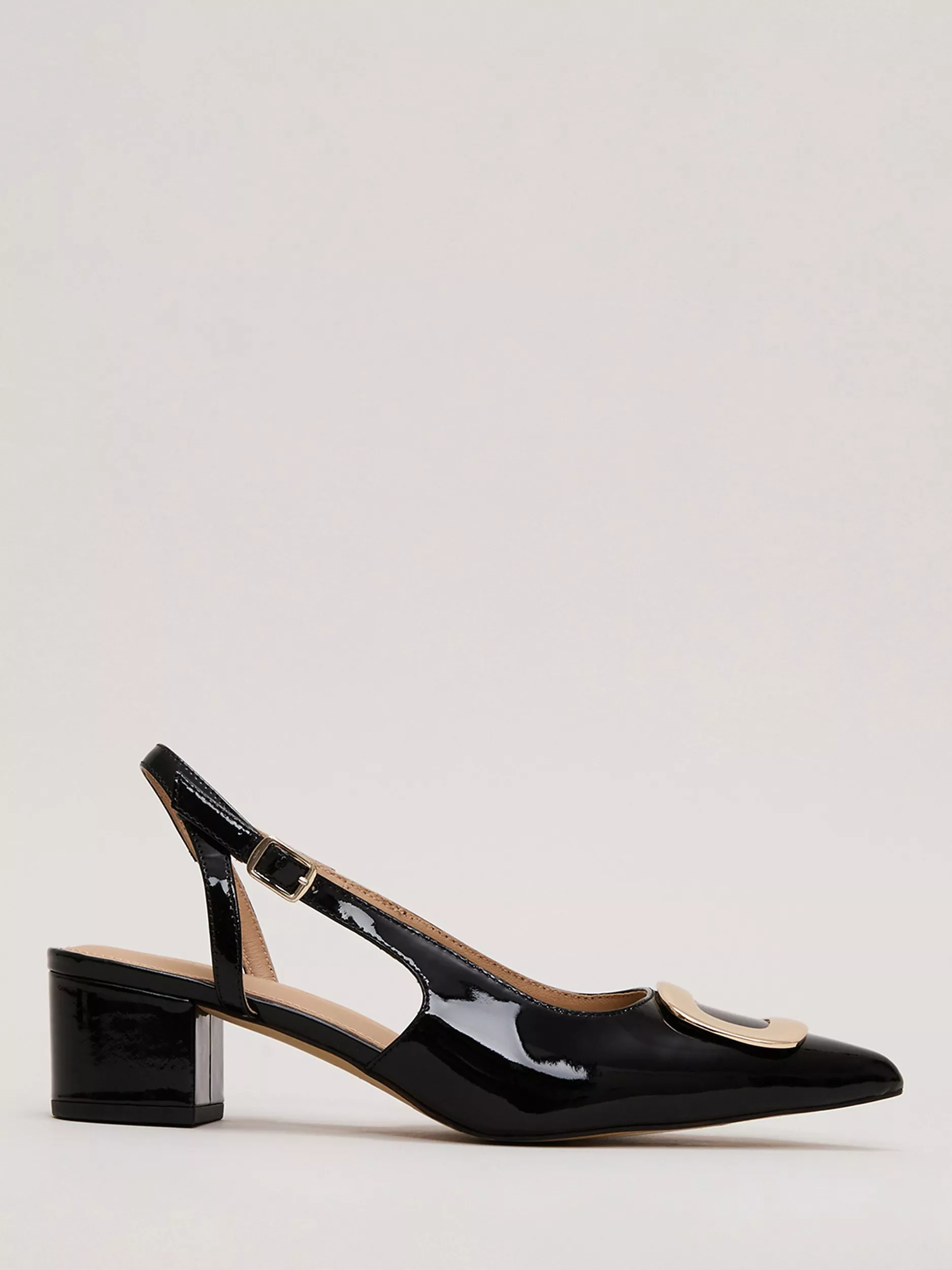 Set on a block heel, they are finished with a pointed toe that's sure to flatter.