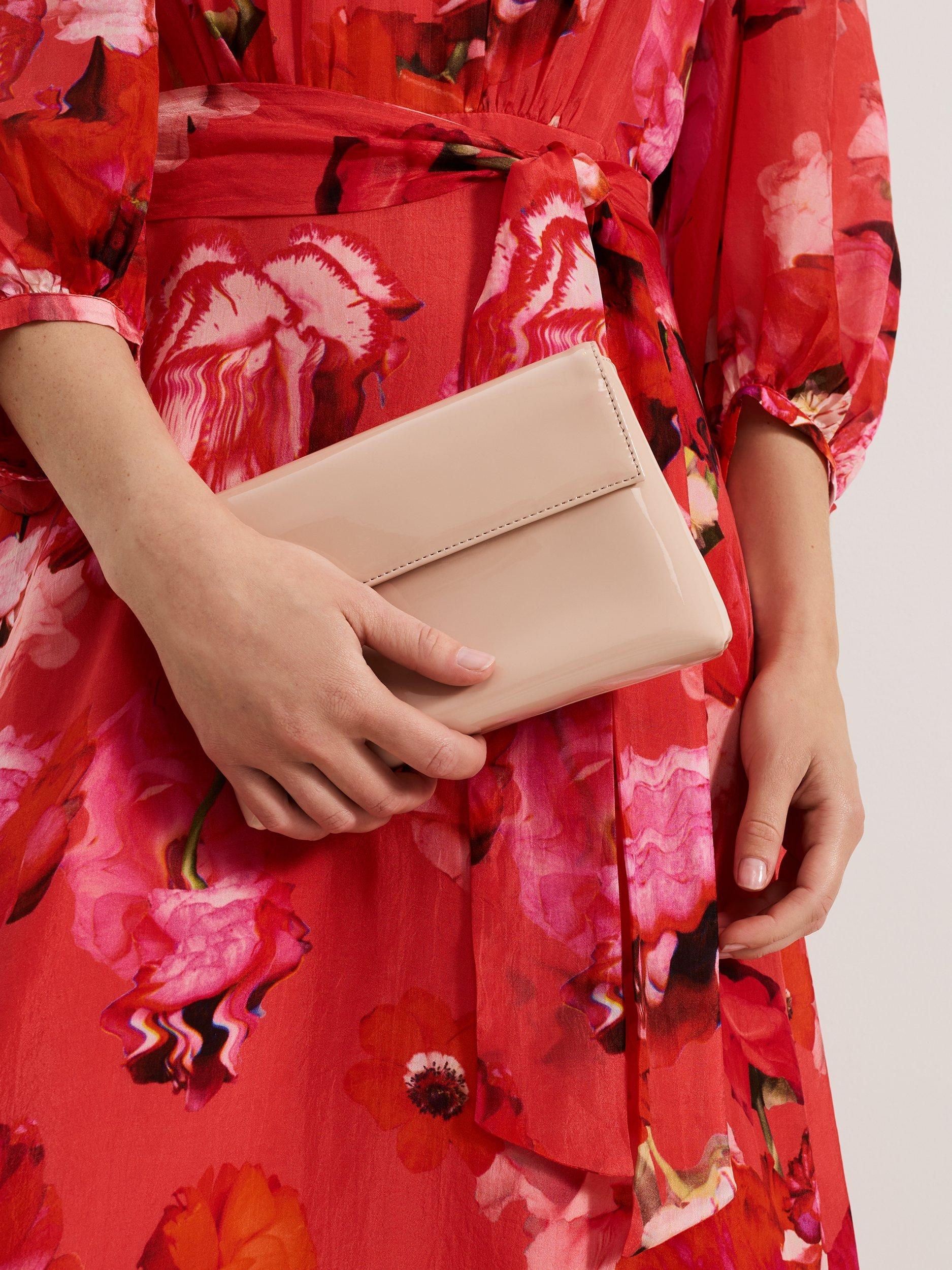 Carry your essentials in style with this patent clutch. Fastening with a hidden magnetic clasp, this bag pairs perfectly with kitten heels for a sophisticated event look.