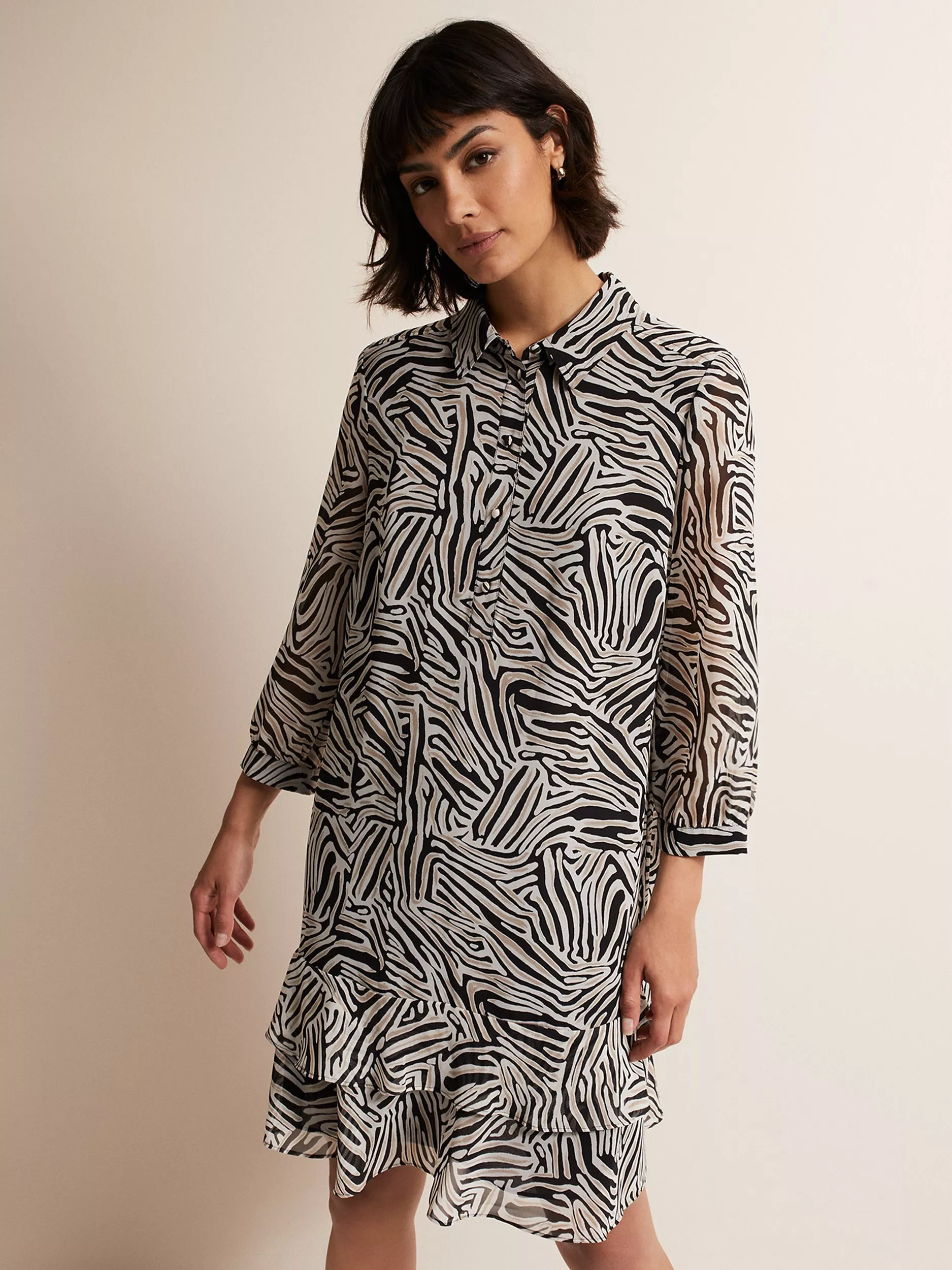 In a straight cut that's tiered for a fluid silhouette, this knee length dress from Phase Eight is made using a synthetic fabric. Topped with a collar and three quarter length sleeves, it is topped with a statement abstract print.