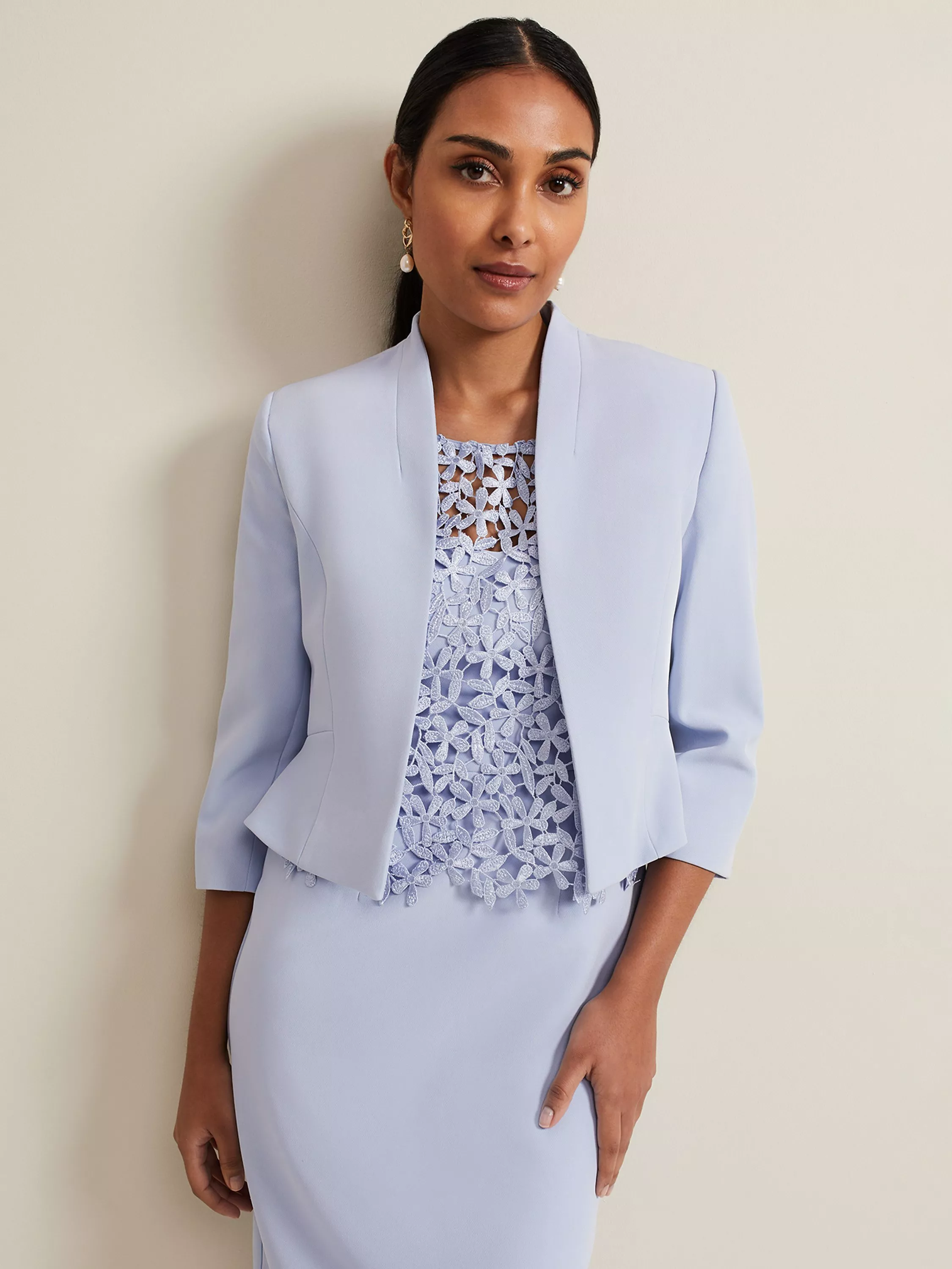 Phase Eight's petite Daisy jacket is the finishing touch to your occasion outfit. With a classic peplum hem that adds to the feminine silhouette, this jacket is perfect to layer over your occasion outfit or with the matching Daisy dress.