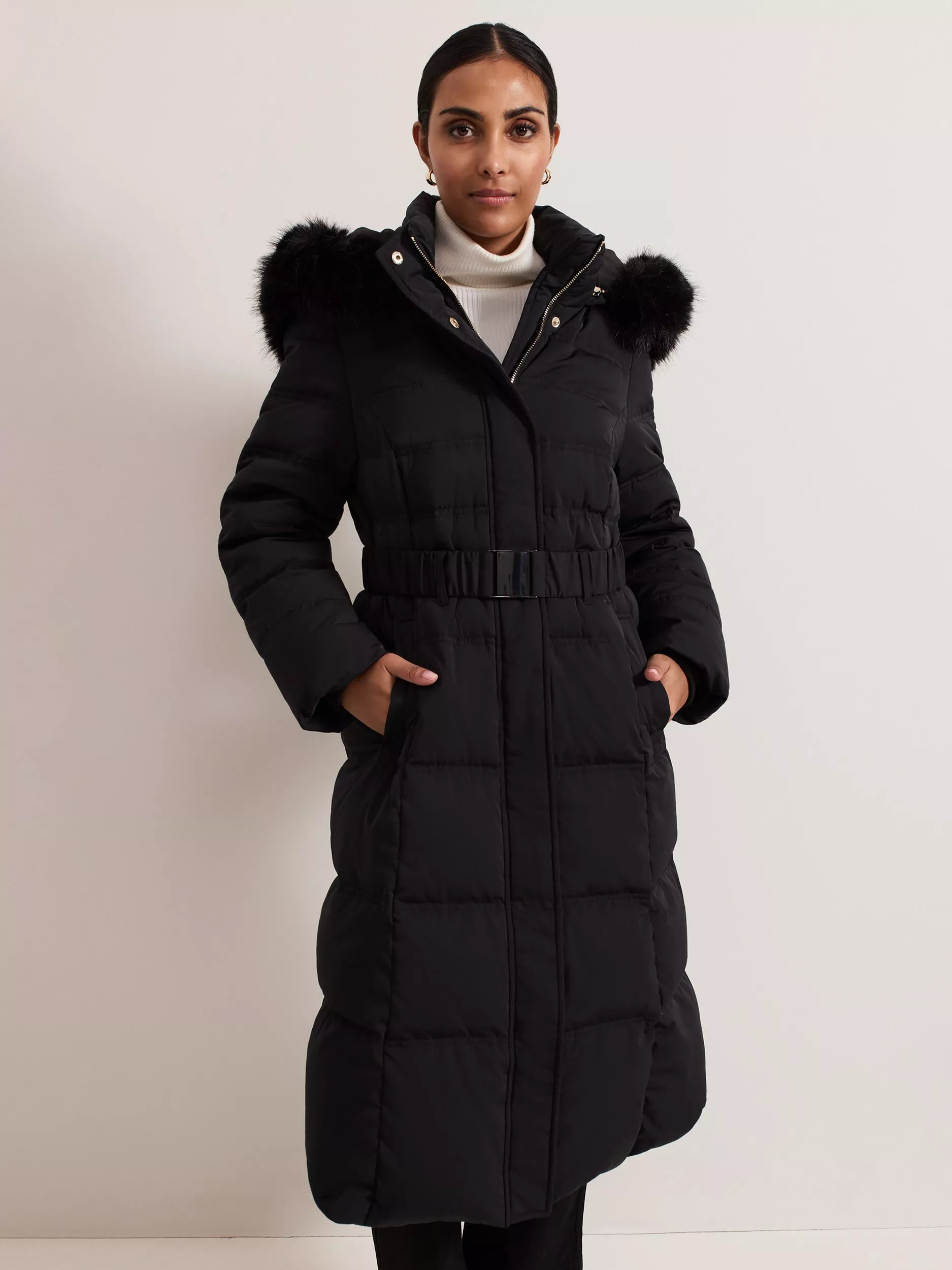 Packed full for a cosy wear on chilly days, this petite puffer coat by Phase Eight has a longline cut for a sleek profile.