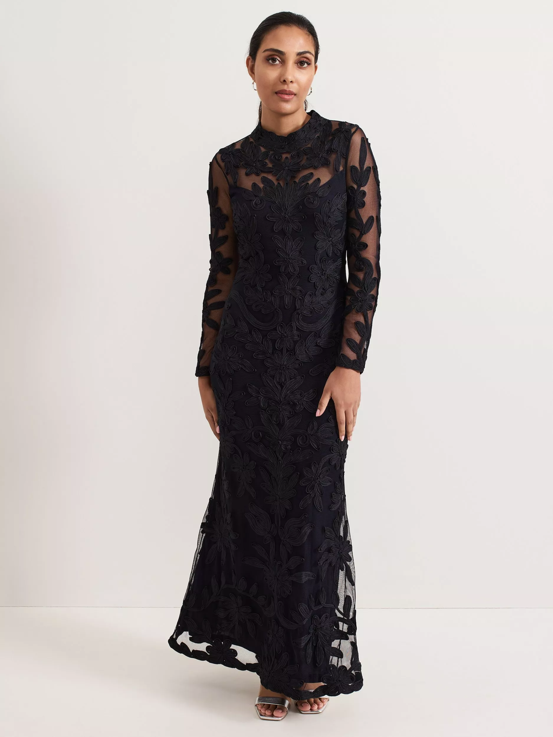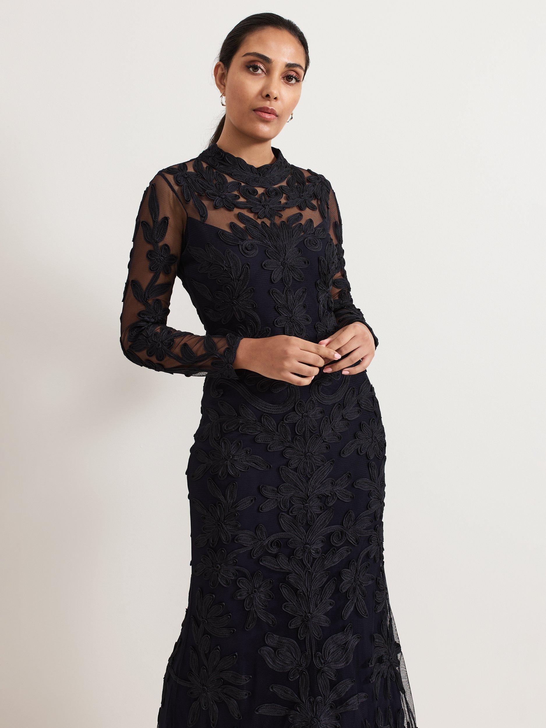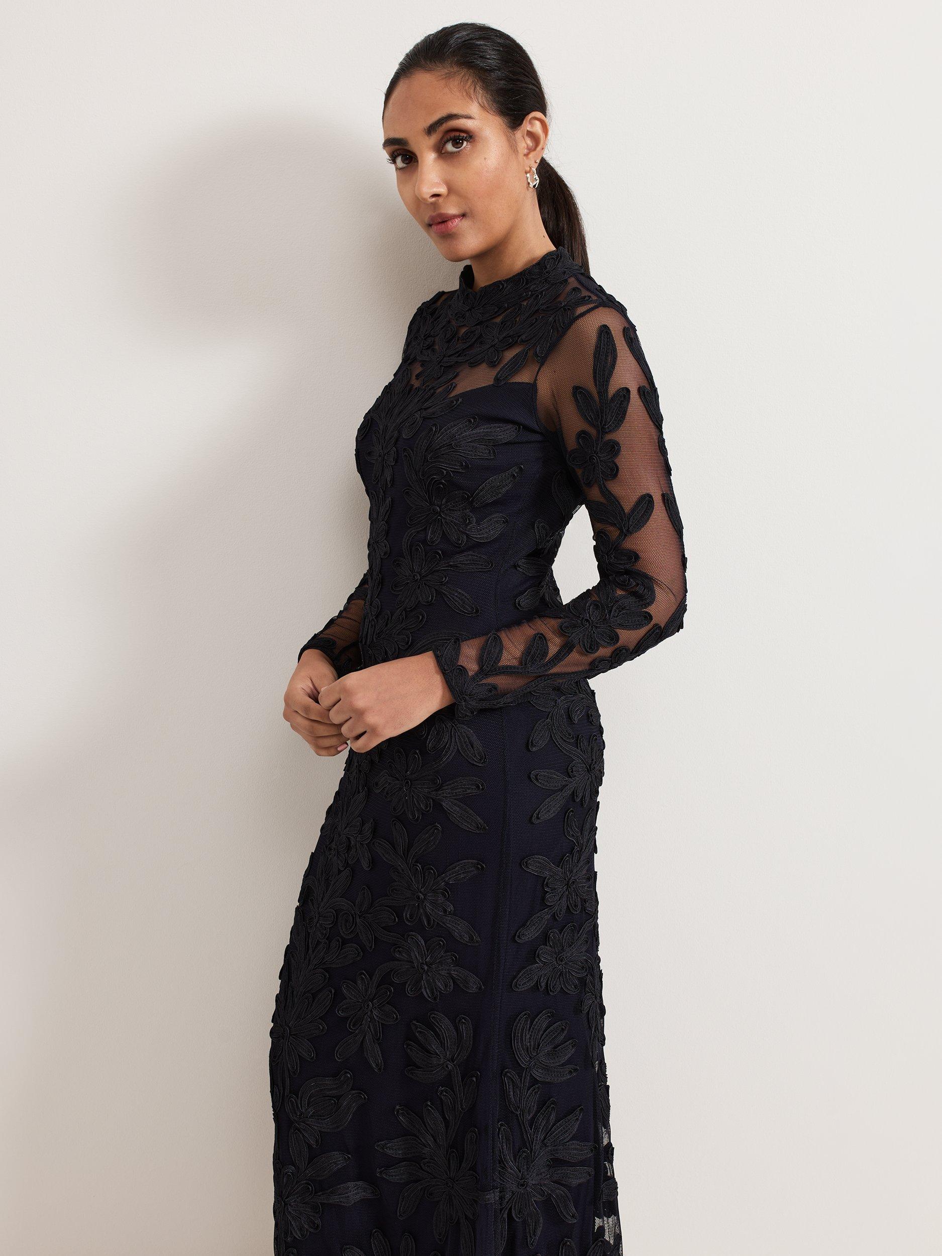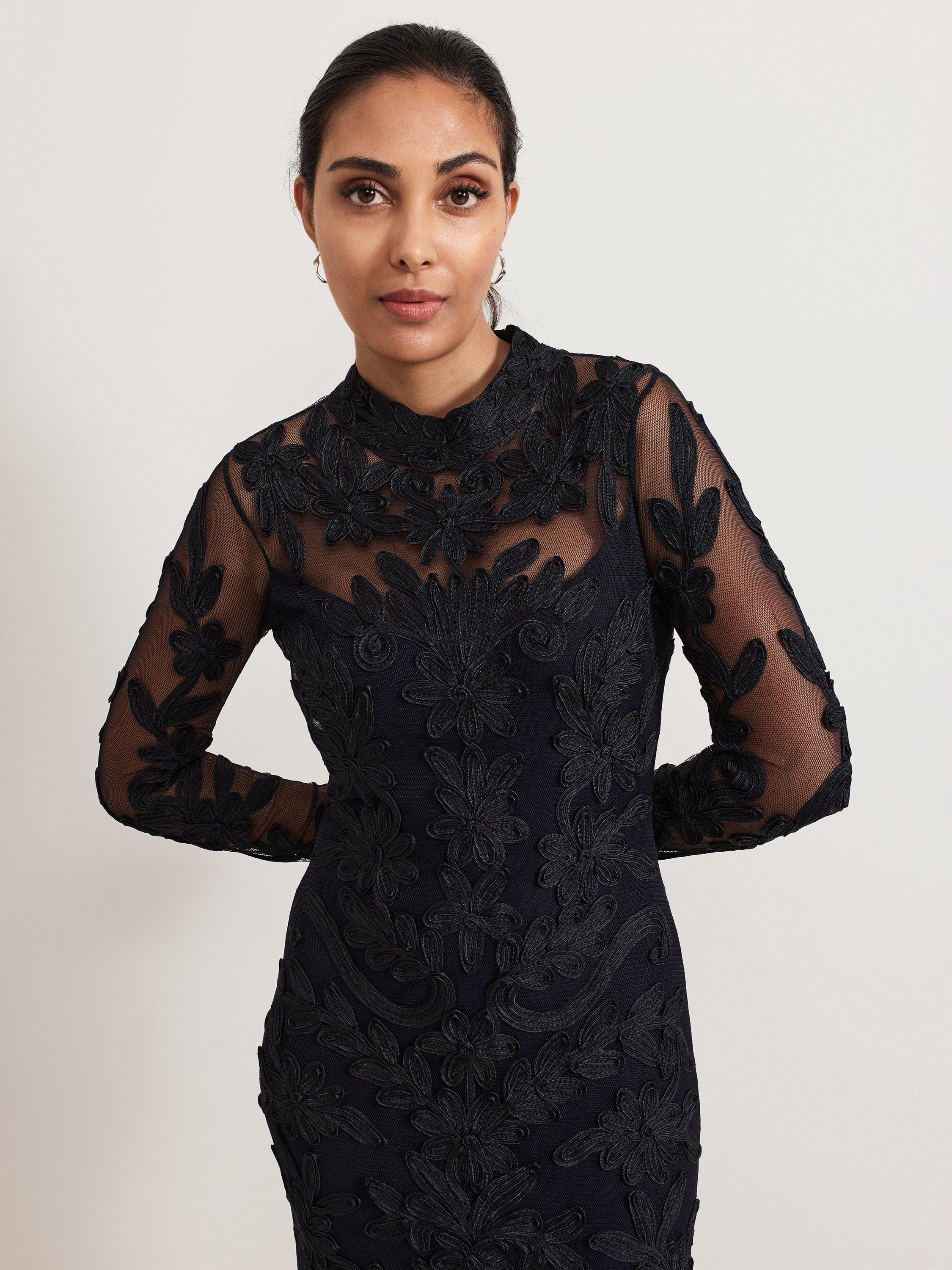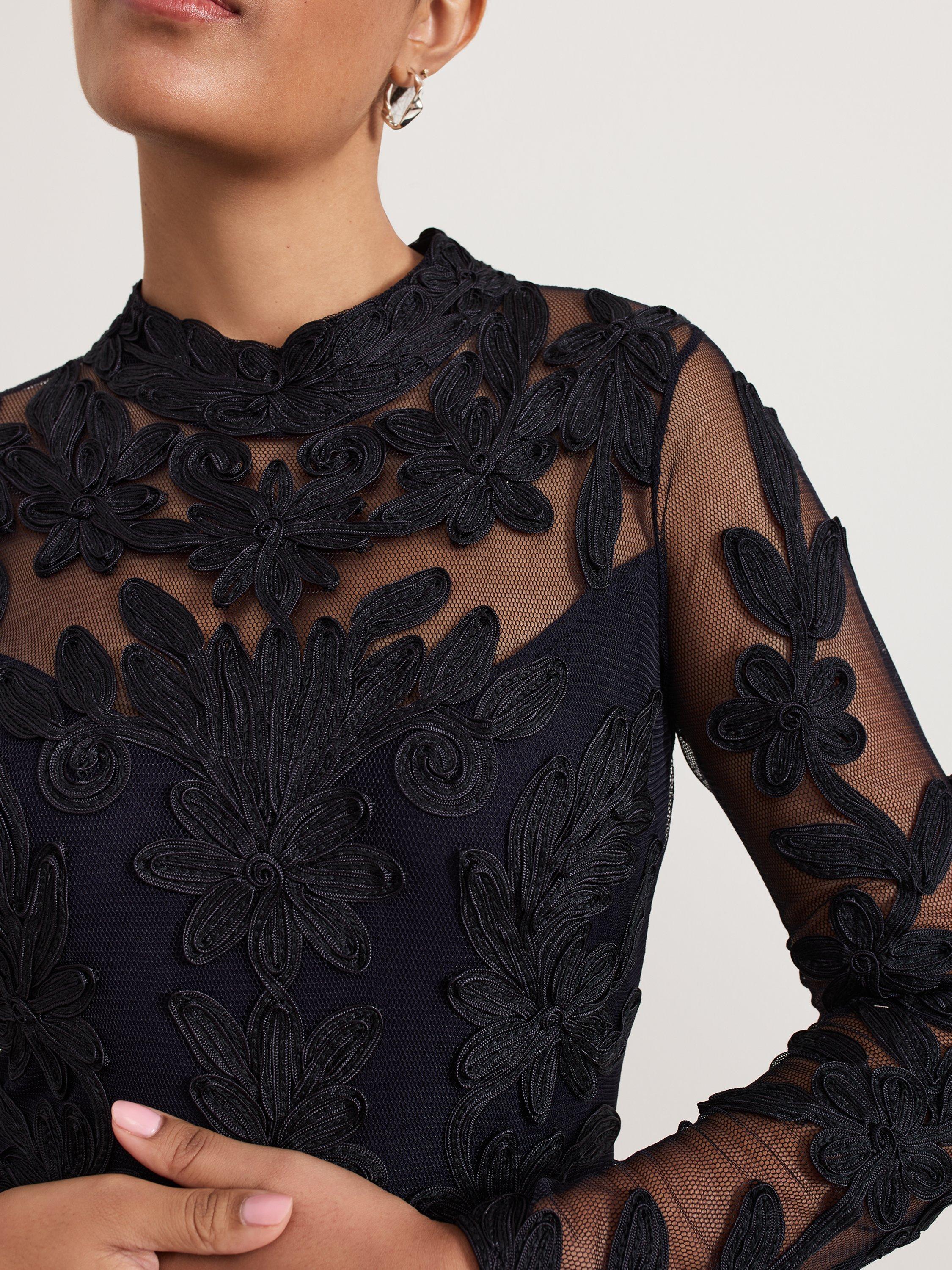 The perfect blend of sophistication and elegance. Crafted from signature tapework lace, this Geneve dress boasts a feminine high neckline and sheer yoke for added allure. The subtly fitted waist skims your figure, falling to a maxi length that makes a statement. Style with sparkly accessories for an event look you'll turn to time and time again.