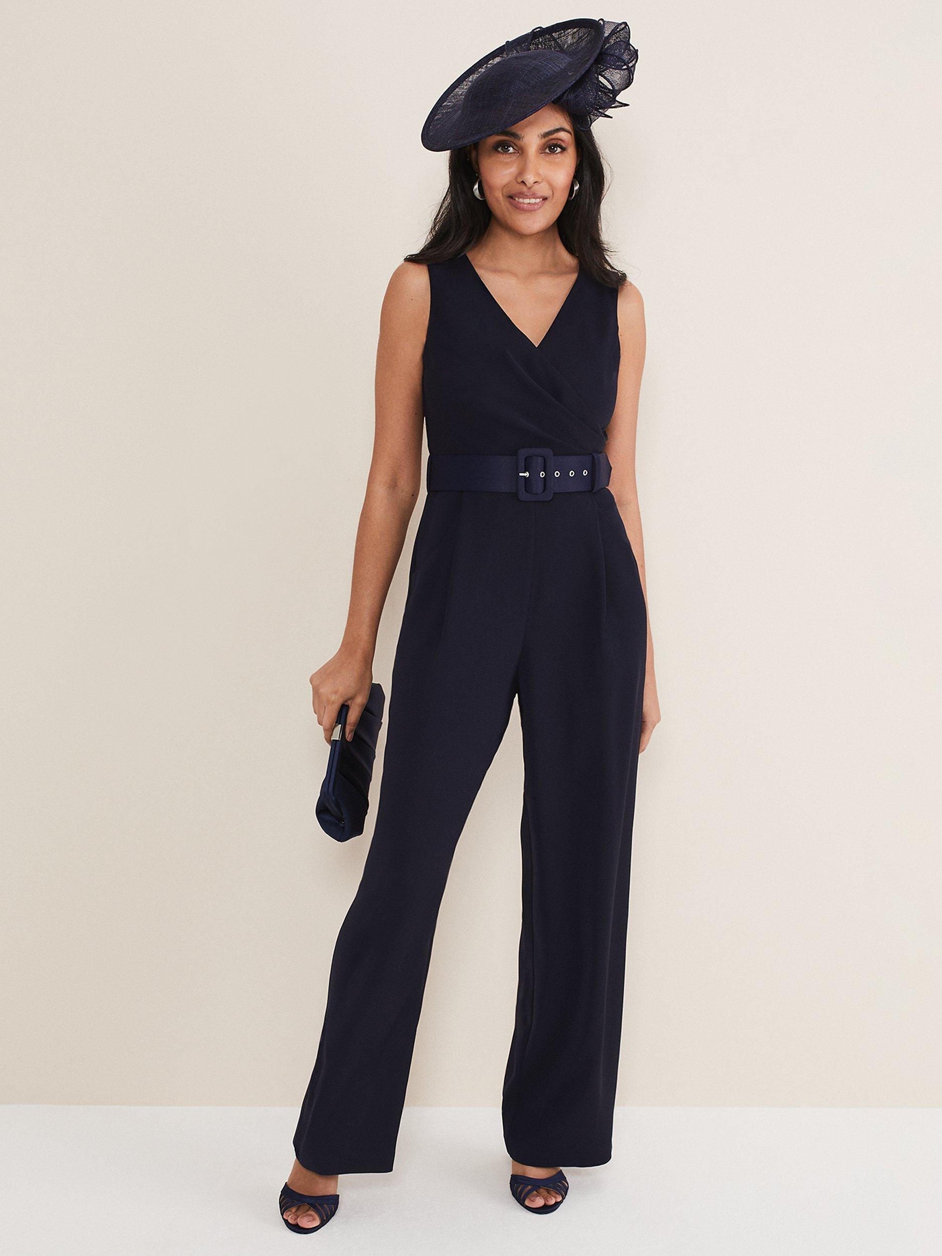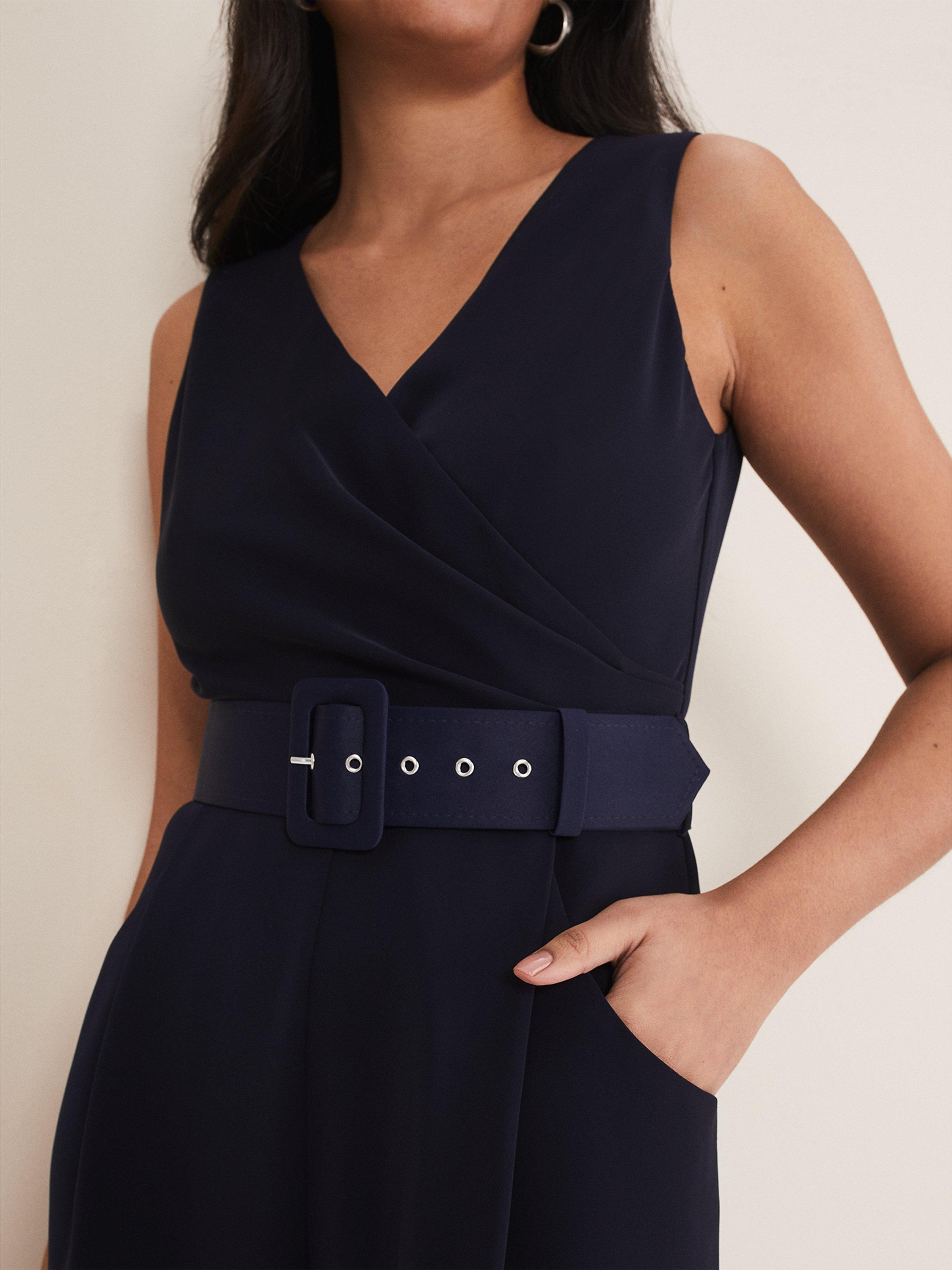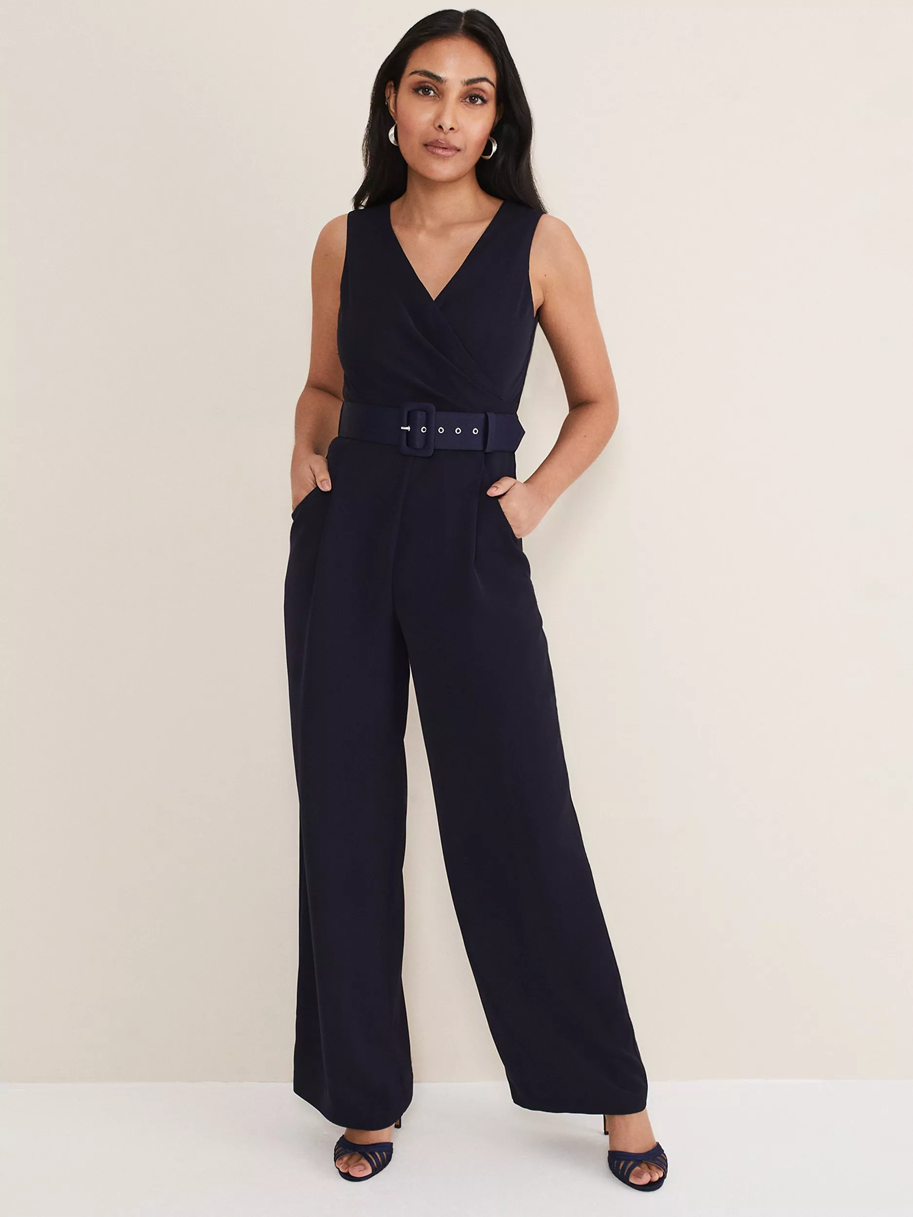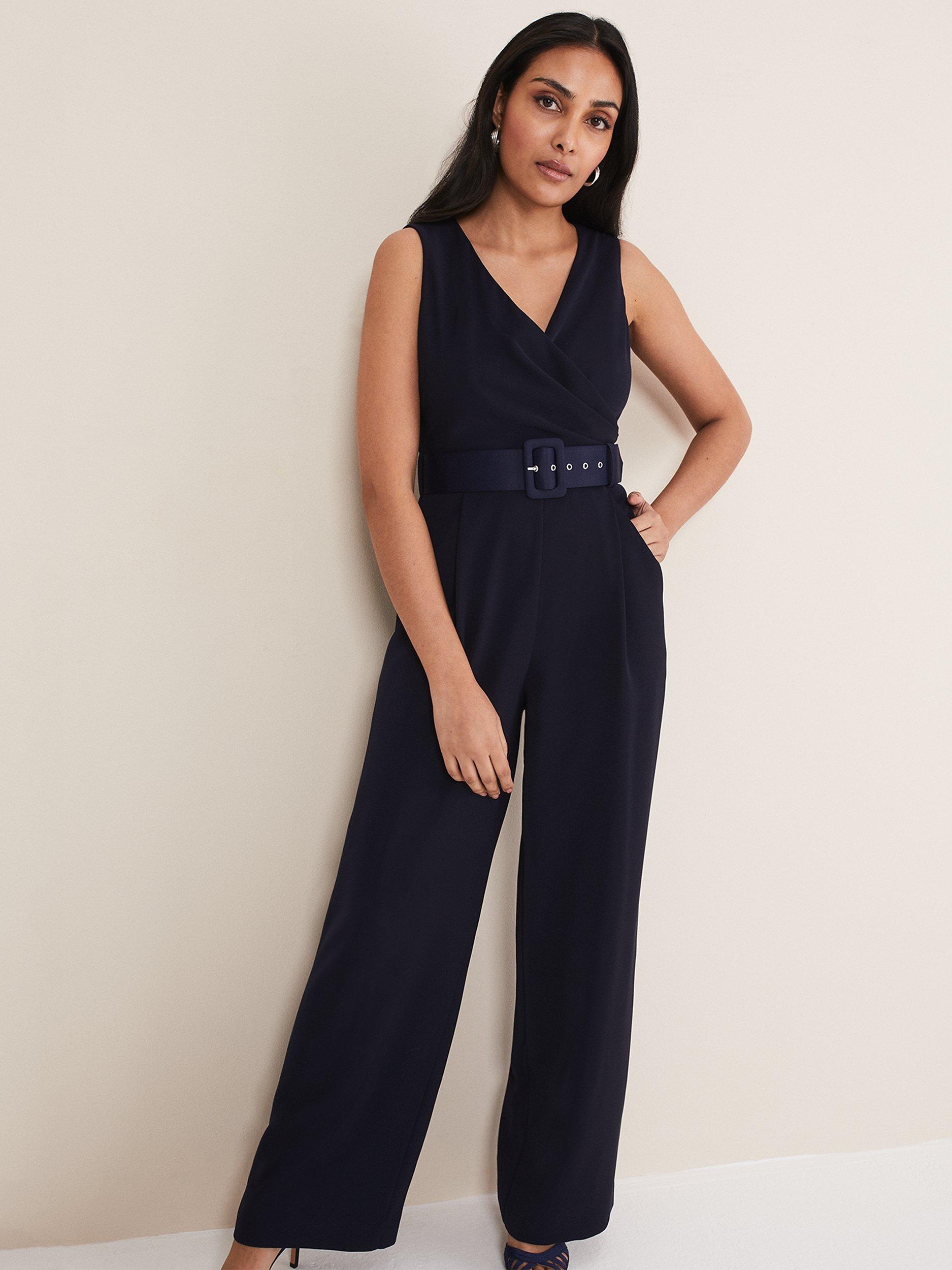 Framing with its v-neck, this sleeveless jumpsuit by Phase Eight is presented in a contemporary loose silhouette and is made with durable fabric for longevity of wear.
