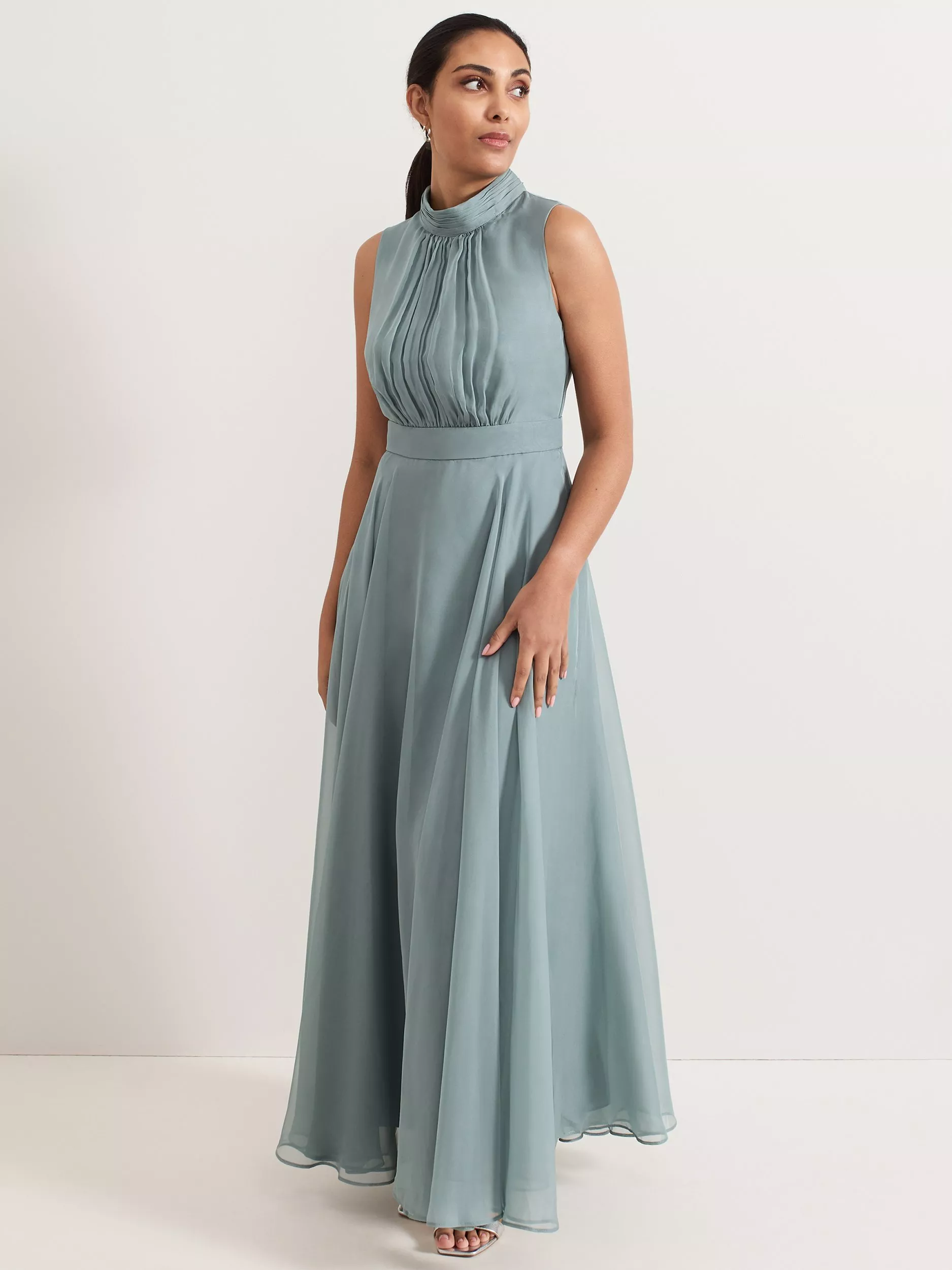 The signature Lucinda silhouette, in a new muted shade, is a perfect style for a bridesmaid that you can wear for all future special occasions. Subtle pleating on the bodice flows through to a chiffon maxi skirt that creates beautiful movement. Finished with an elegant floral applique at the high neckline, this feminine occasion style will remain timeless.