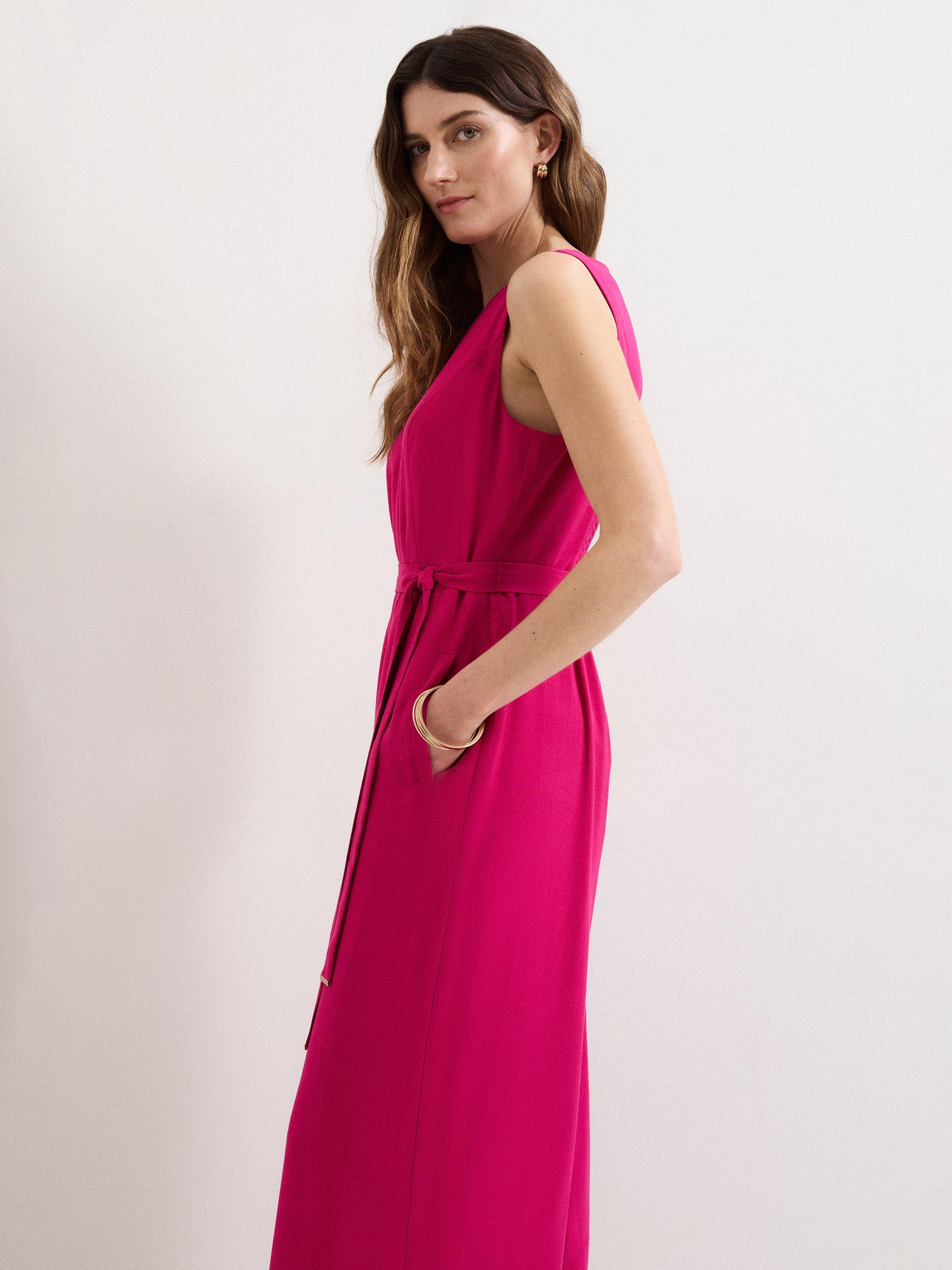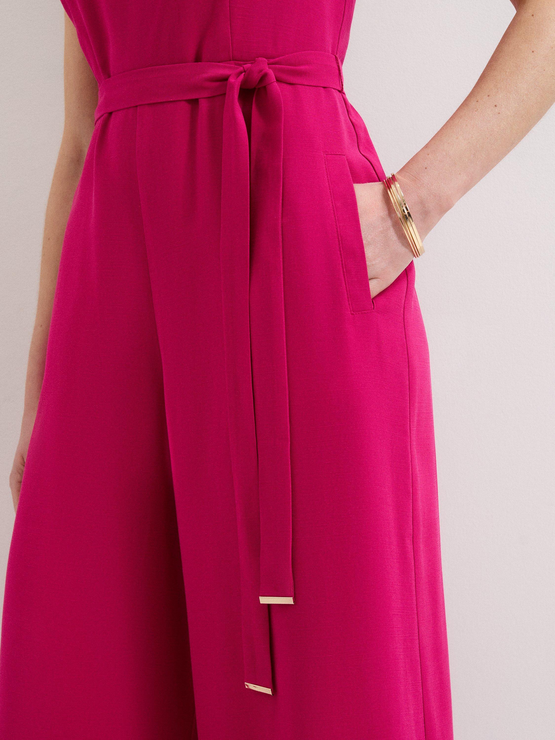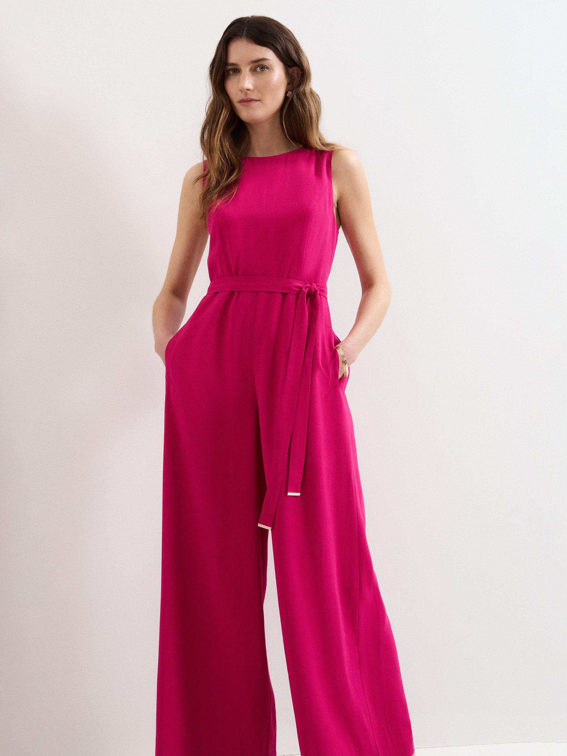 Kept simple with a round neckline, this sleeveless jumpsuit from Phase Eight is shaped to a billowy wide-leg silhouette and is whipped up from a smooth blended fabric. Minimalist in design, float into summer in this airy staple.
