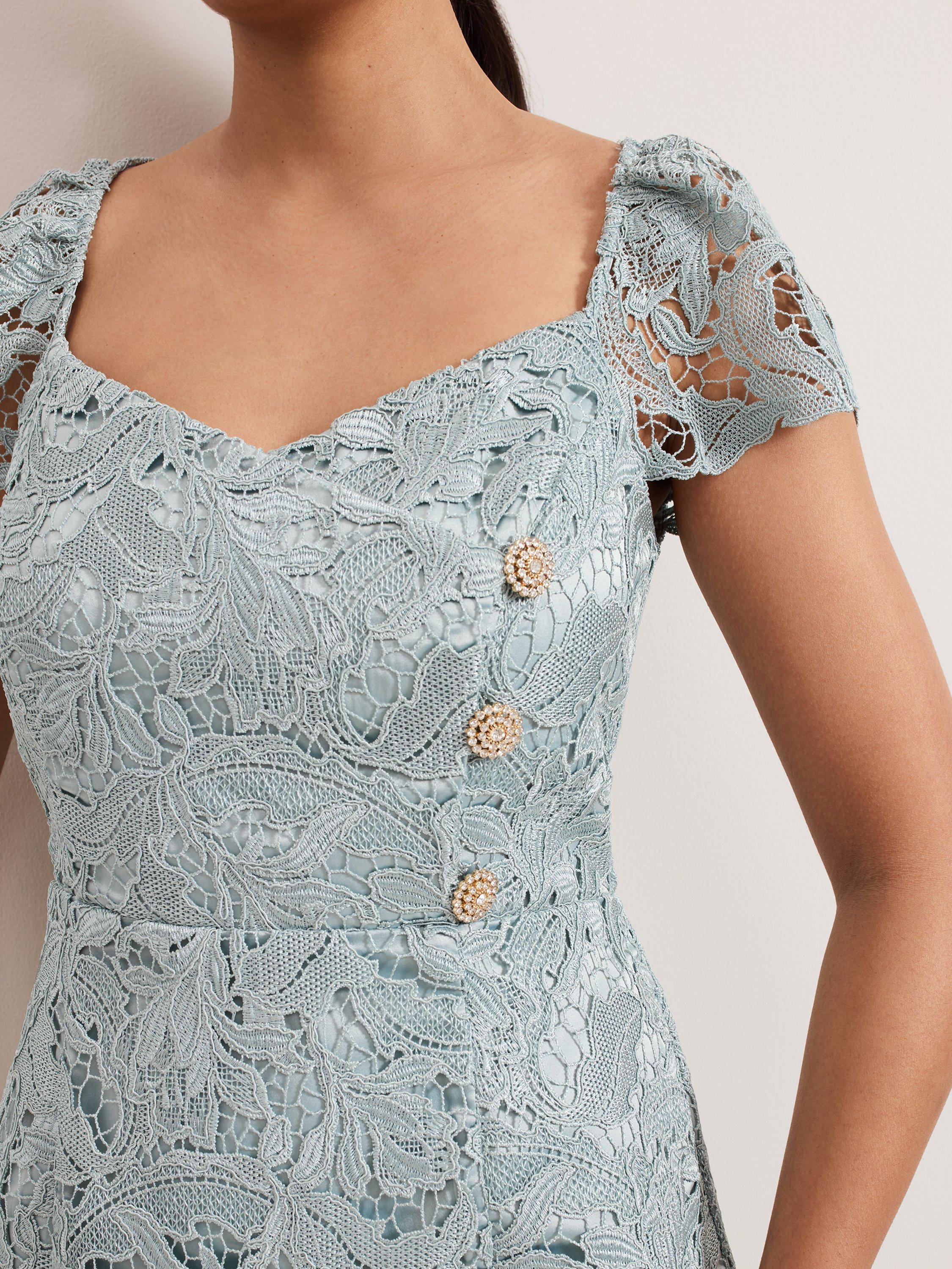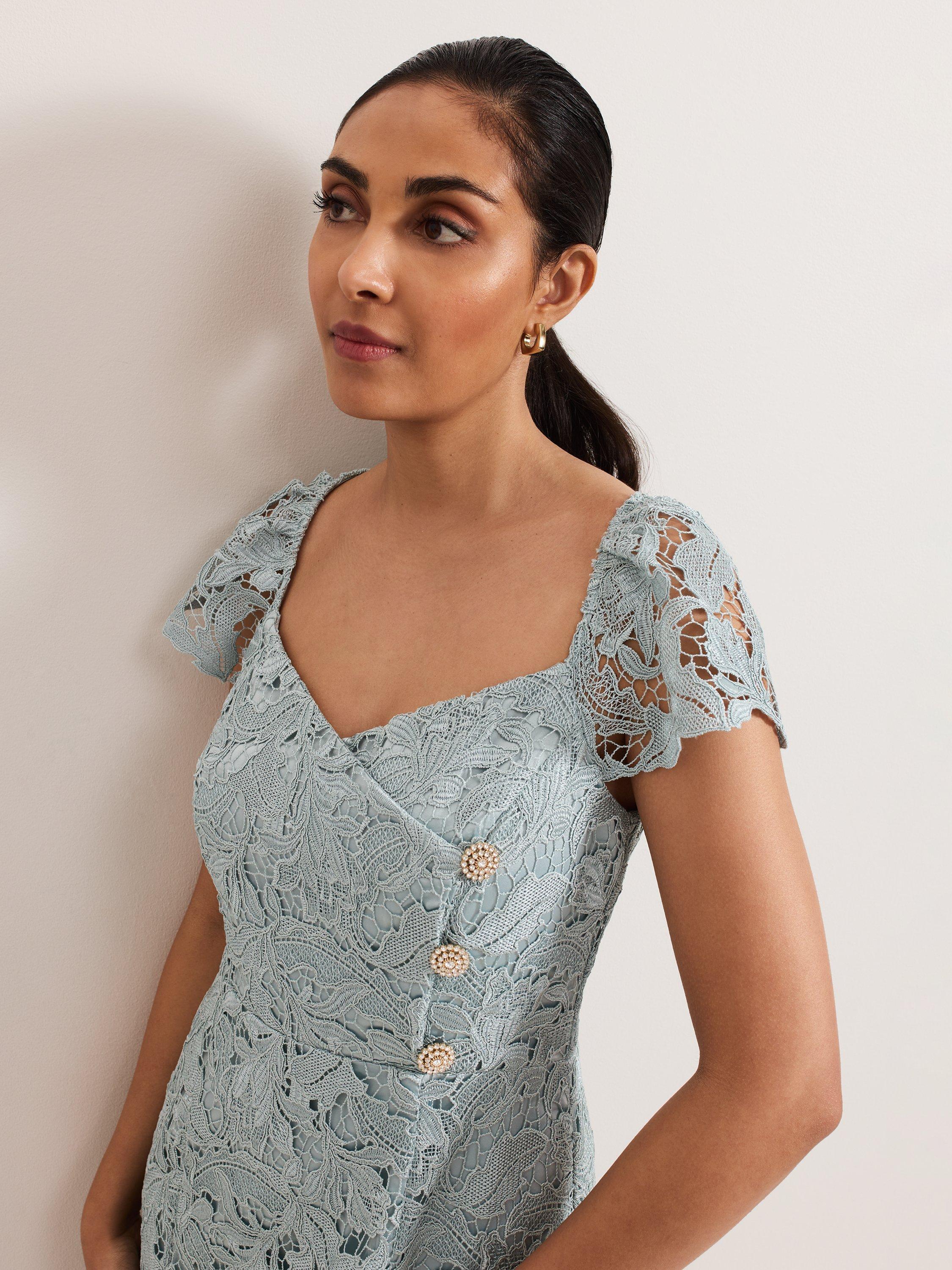 With a fitted wrap bodice and a box pleated A-line skirt, this stunning petite maxi dress from Phase Eight is the ideal occasion piece. With a sweetheart neckline and short sleeves, it is overlaid in lace.