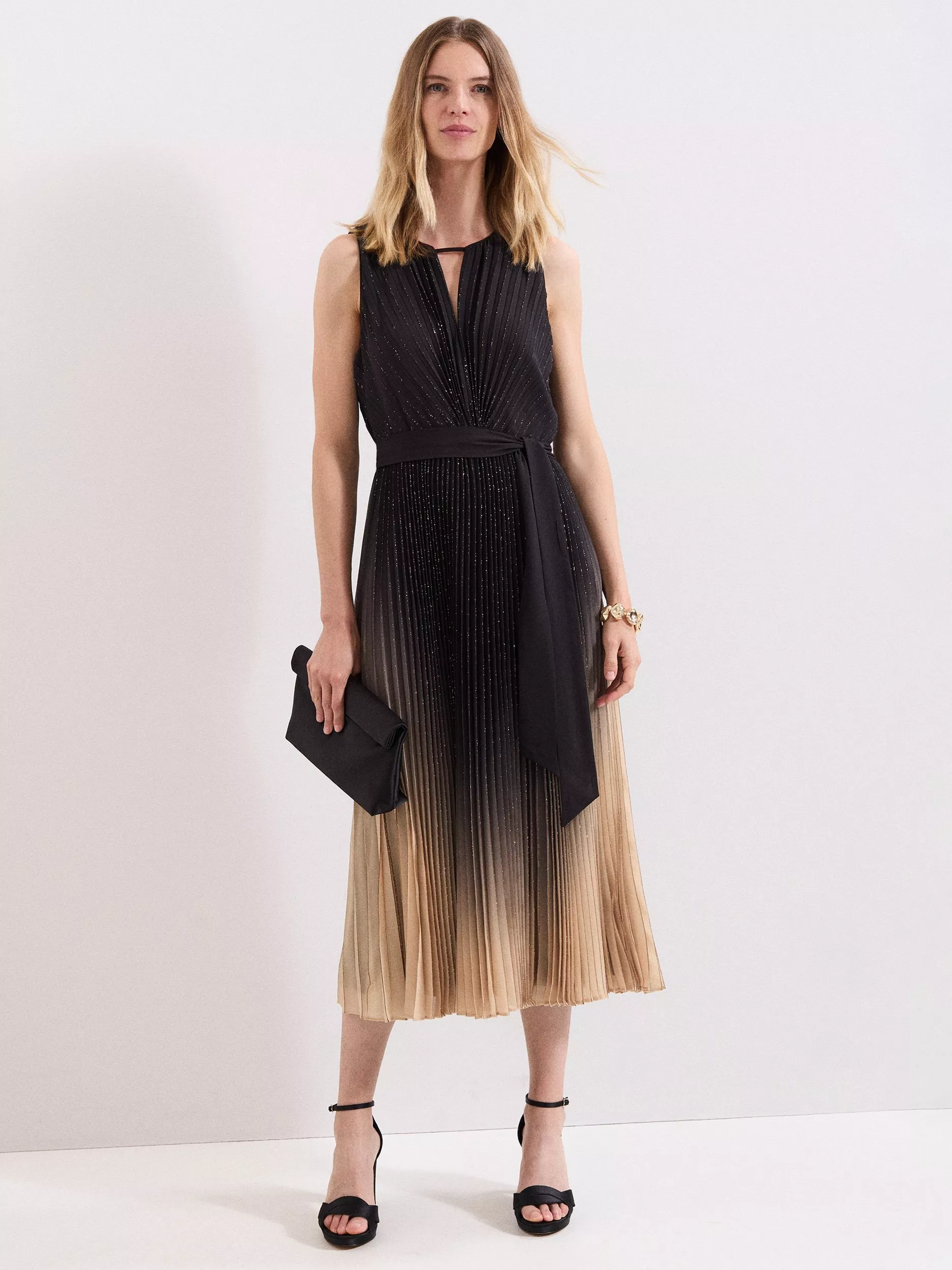 Pleats, please. This sleeveless petite midi dress from Phase Eight features a simple round neck, A-line shape and a metallic ombre finish.