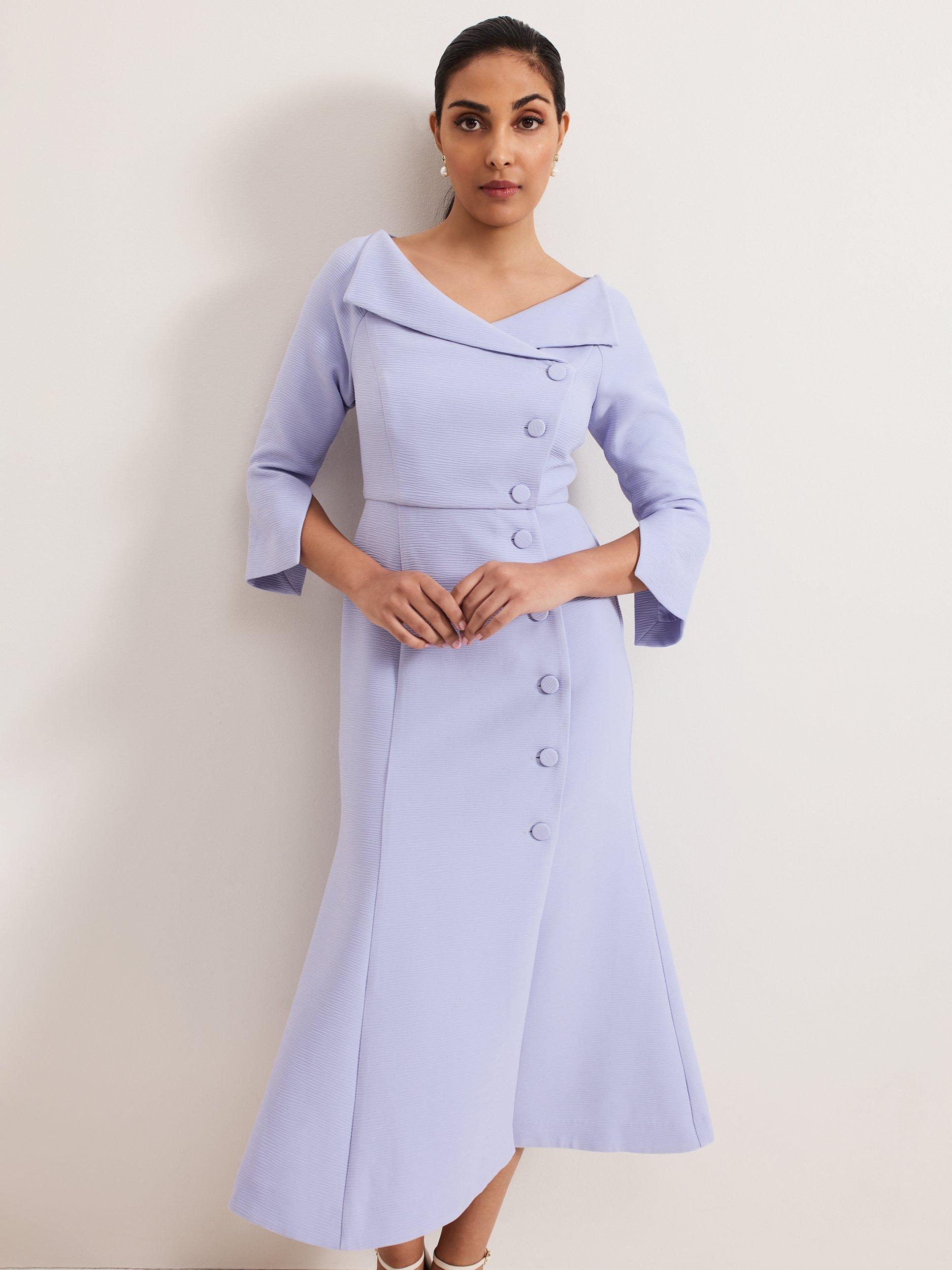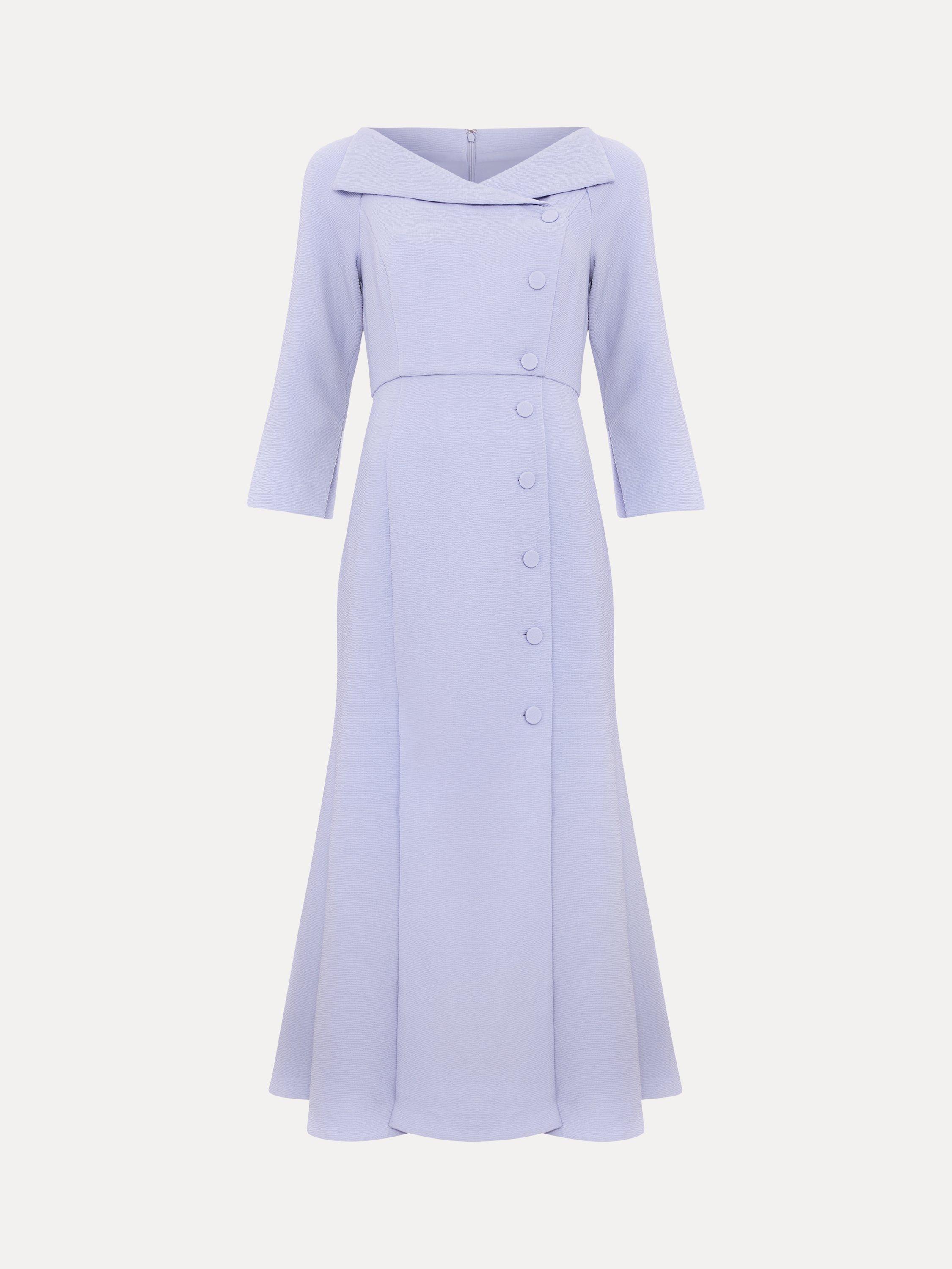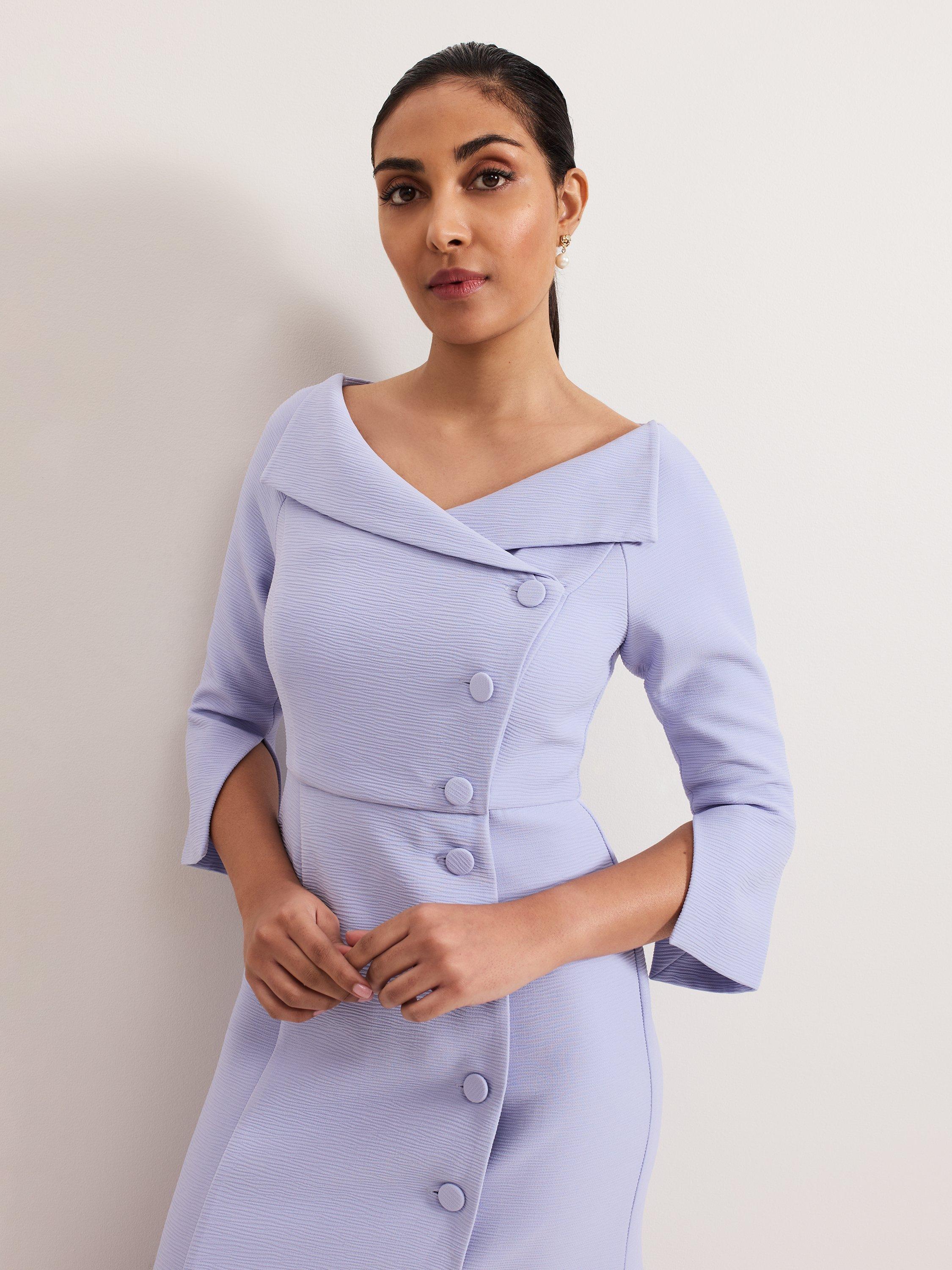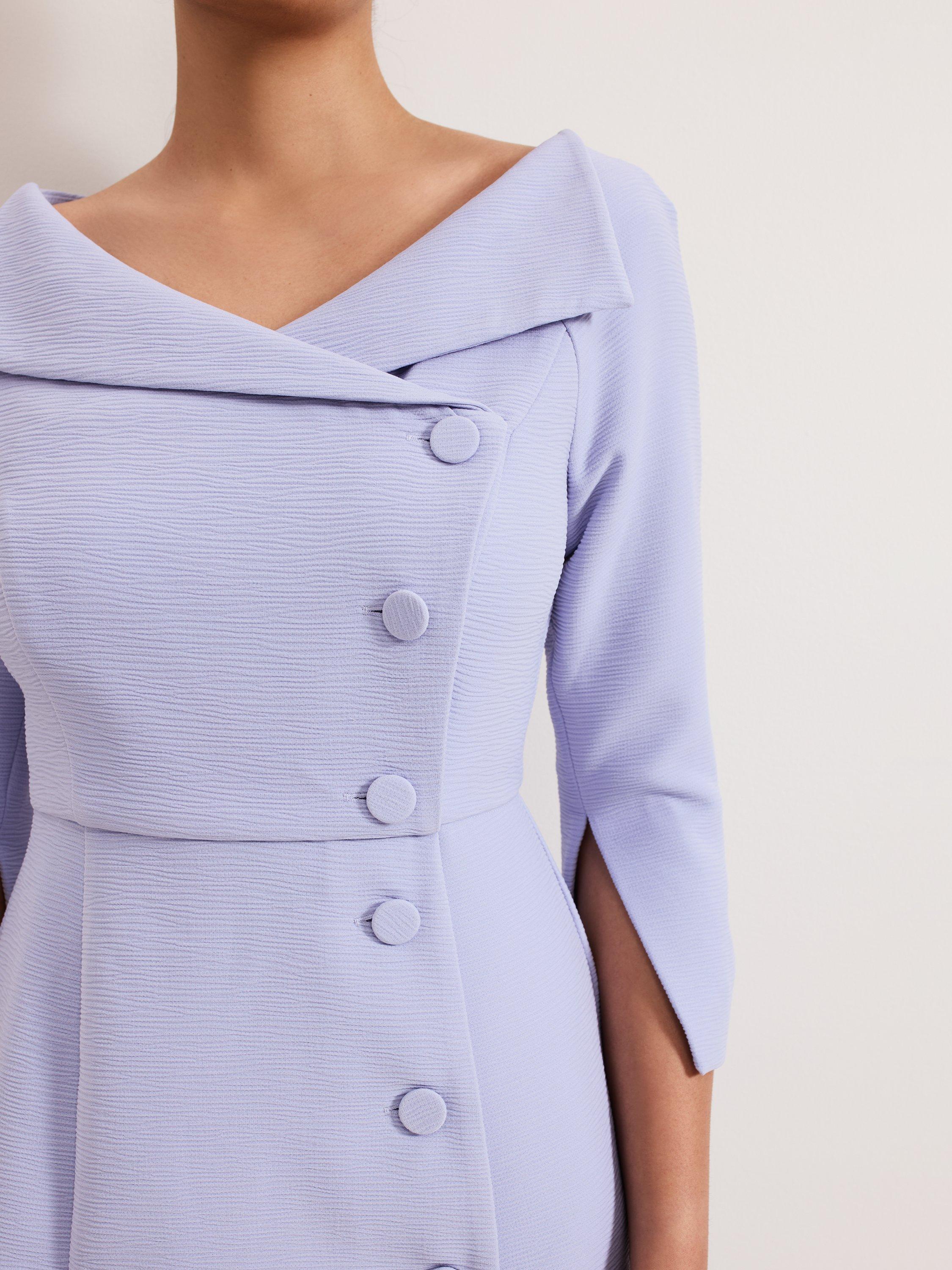 Sophistication meets elegance with the Sienna dress. In a tuxedo inspired silhouette, this dress features an extended V-neckline that highlights the decolletage. Subtle texture and matching buttons add elevated detailing for a perfect mother-of-the-bride style that you'll wear on special occasions for years to come.
