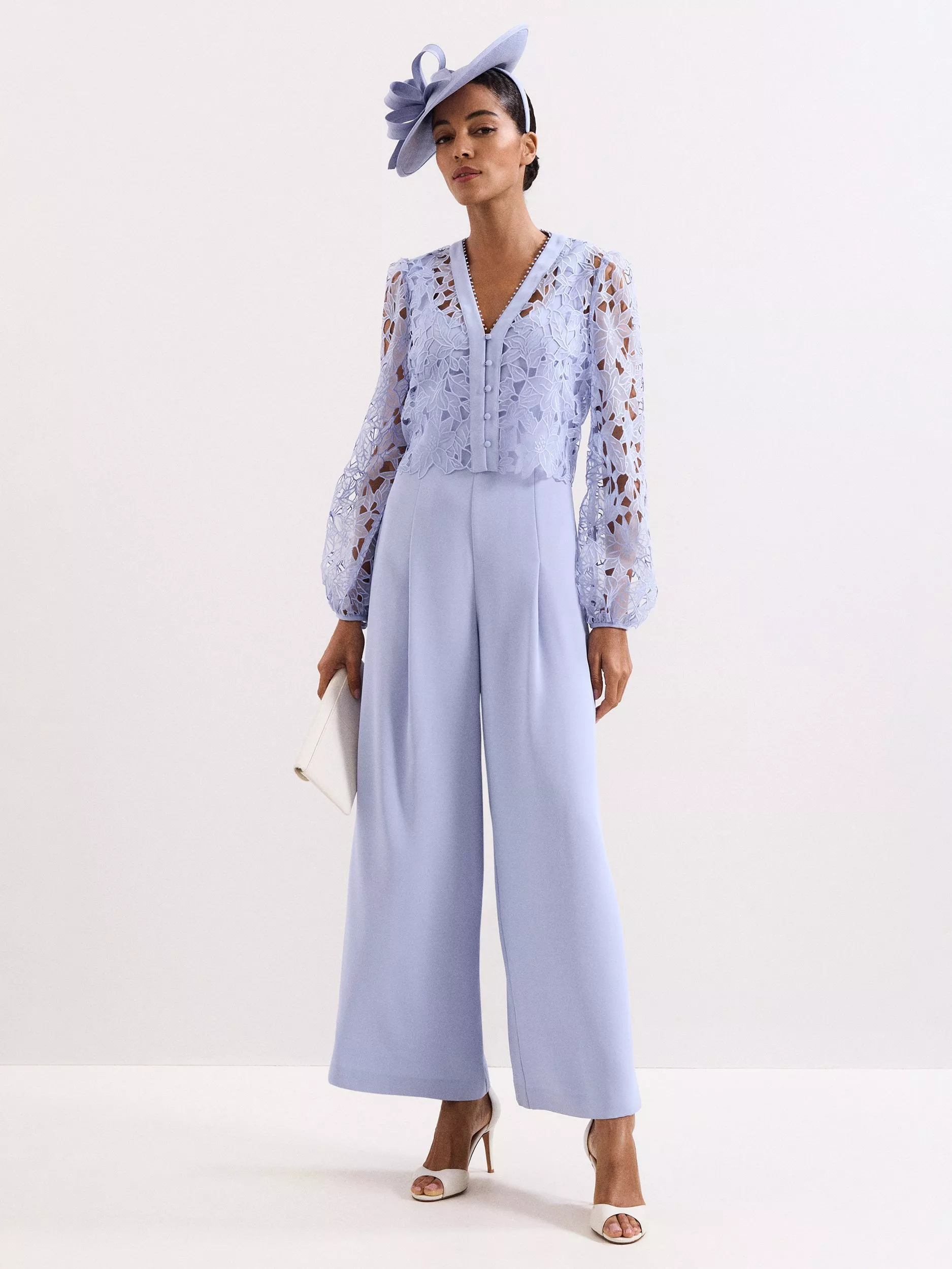 Subtle floral lace brings personality to this Phase Eight petite jumpsuit. The wide leg and V-neck create a distinct silhouette, while long voluminous sleeves offer comfort. It's perfect for weddings or summer events, keeping you stylish and at ease.