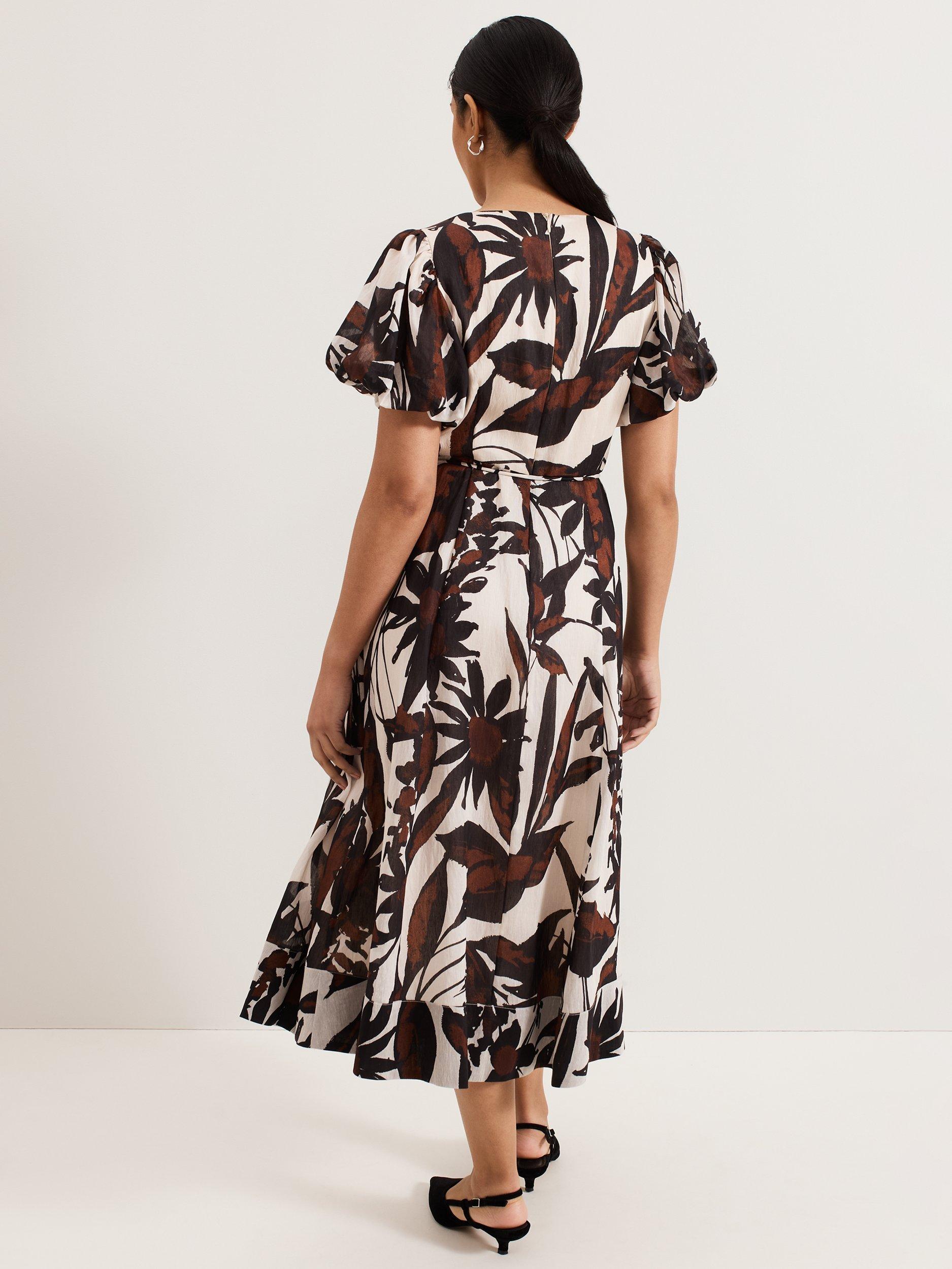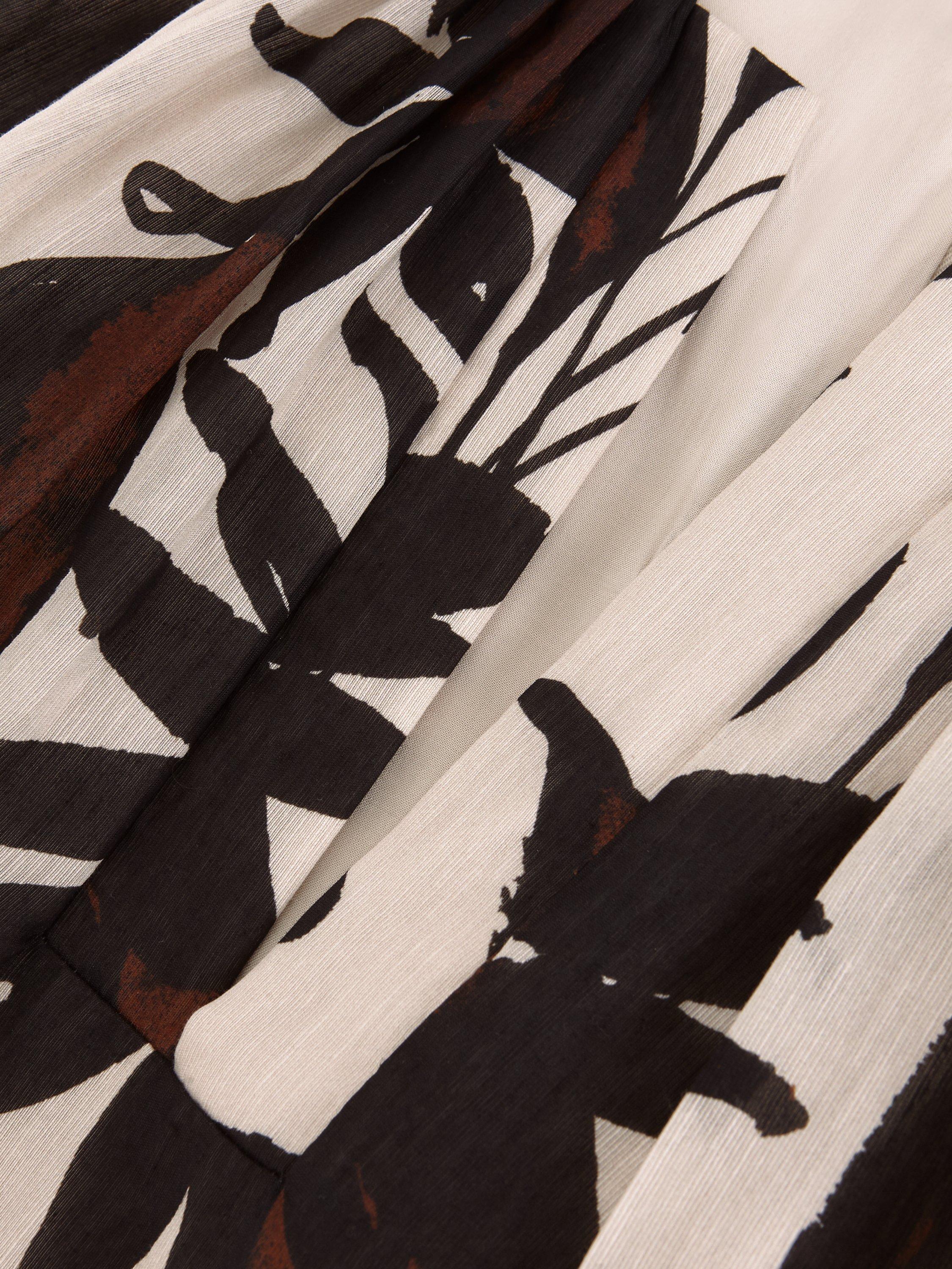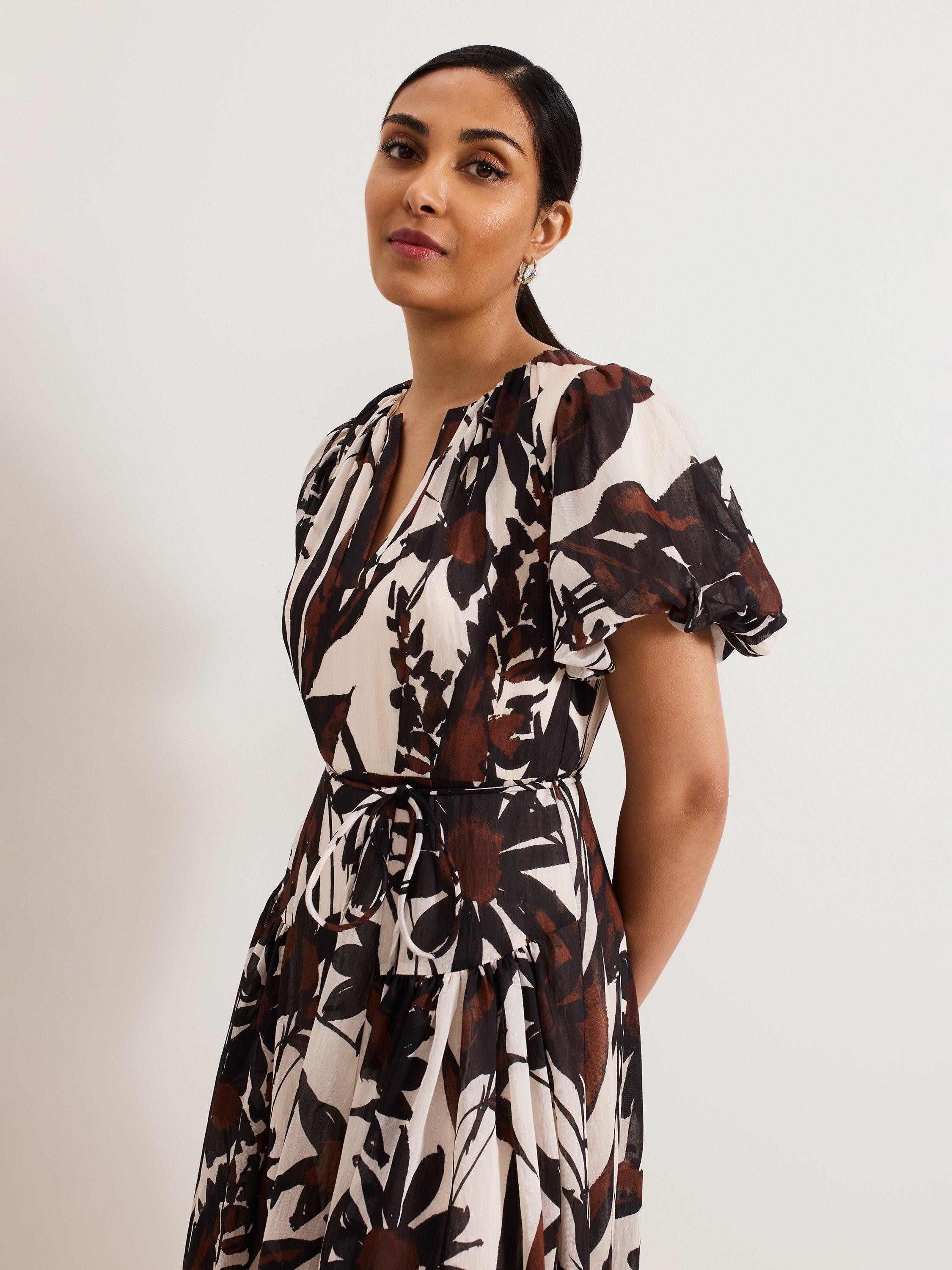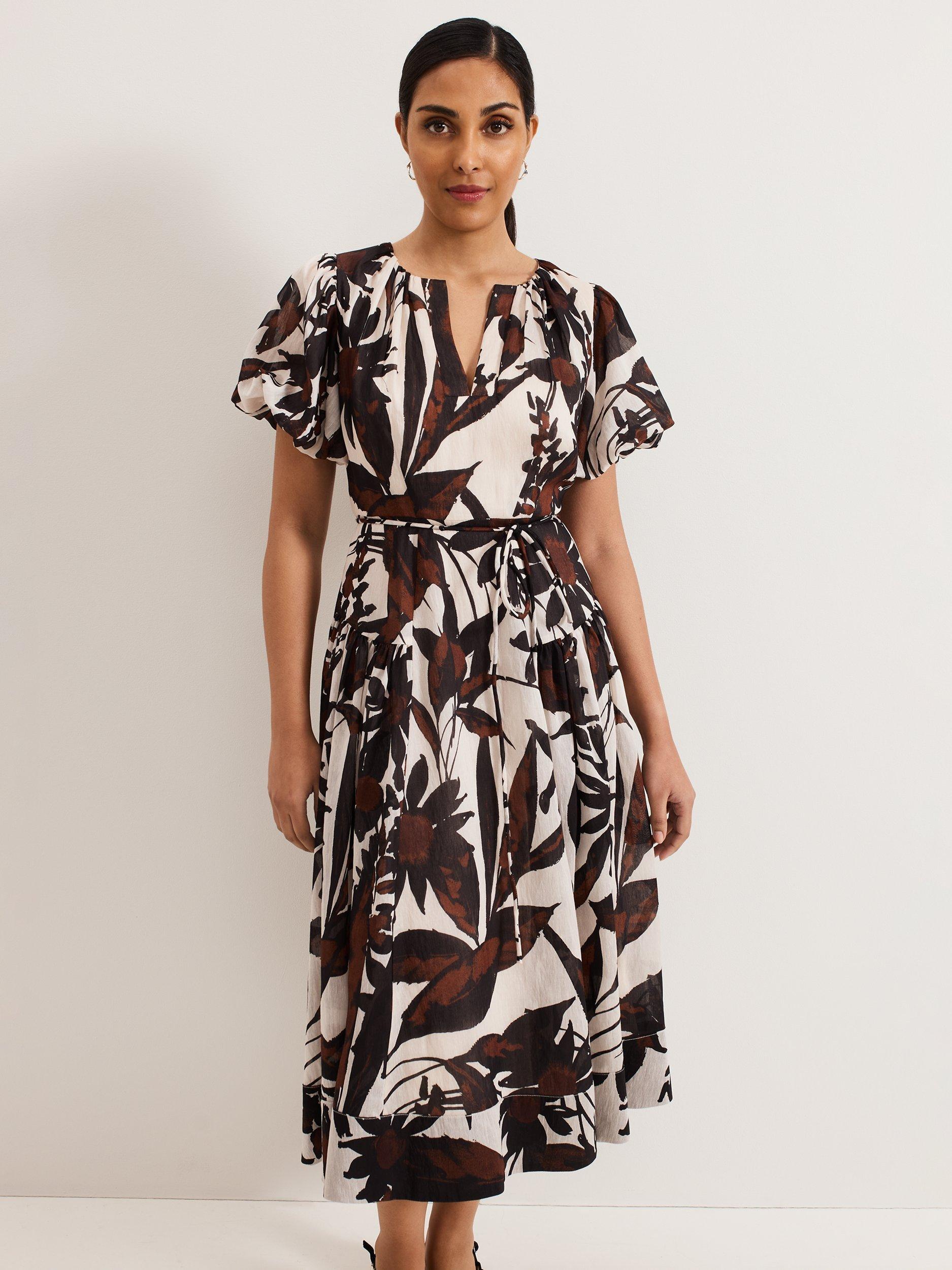 Meet the Zarah dress, a fresh take on monochromatic style. Designed with a contemporary leaf design, this dress features a dropped waist that elongates the midi silhouette, flowing through to a subtly pleated skirt that moves with you. Feminine details, including the V-neckline and elegant puff sleeves, provide subtle structure and shape to create a modern style you'll wear for seasons to come.TENCEL™ Lyocell fibres used in this product are extracted from sustainable wood pulp and are produced through an environmentally responsible, closed loop fibre process.