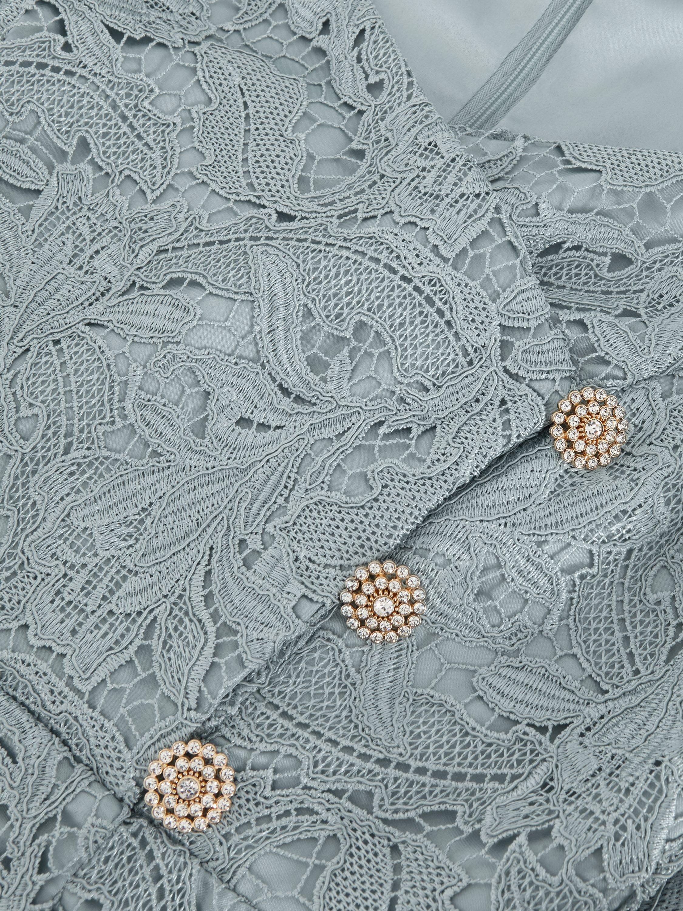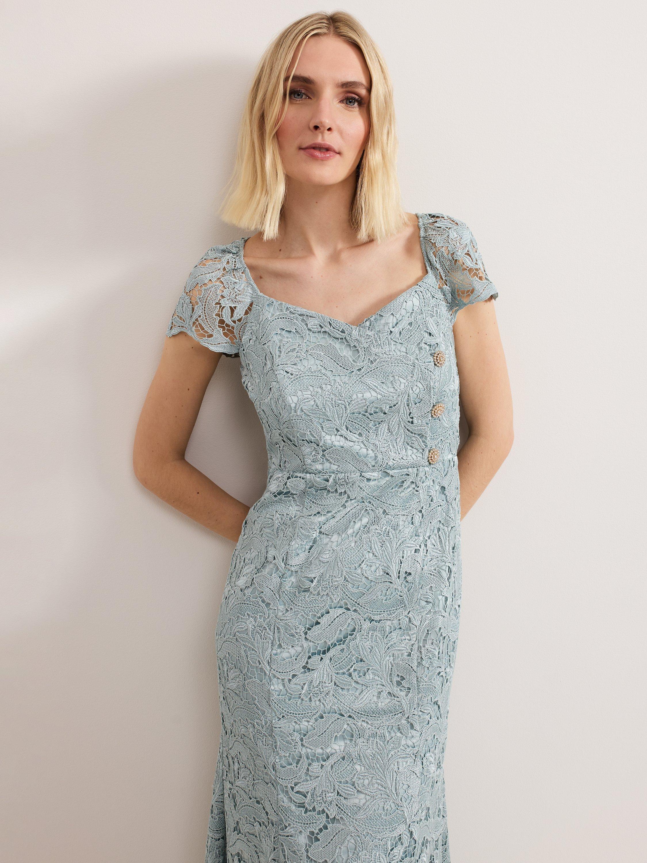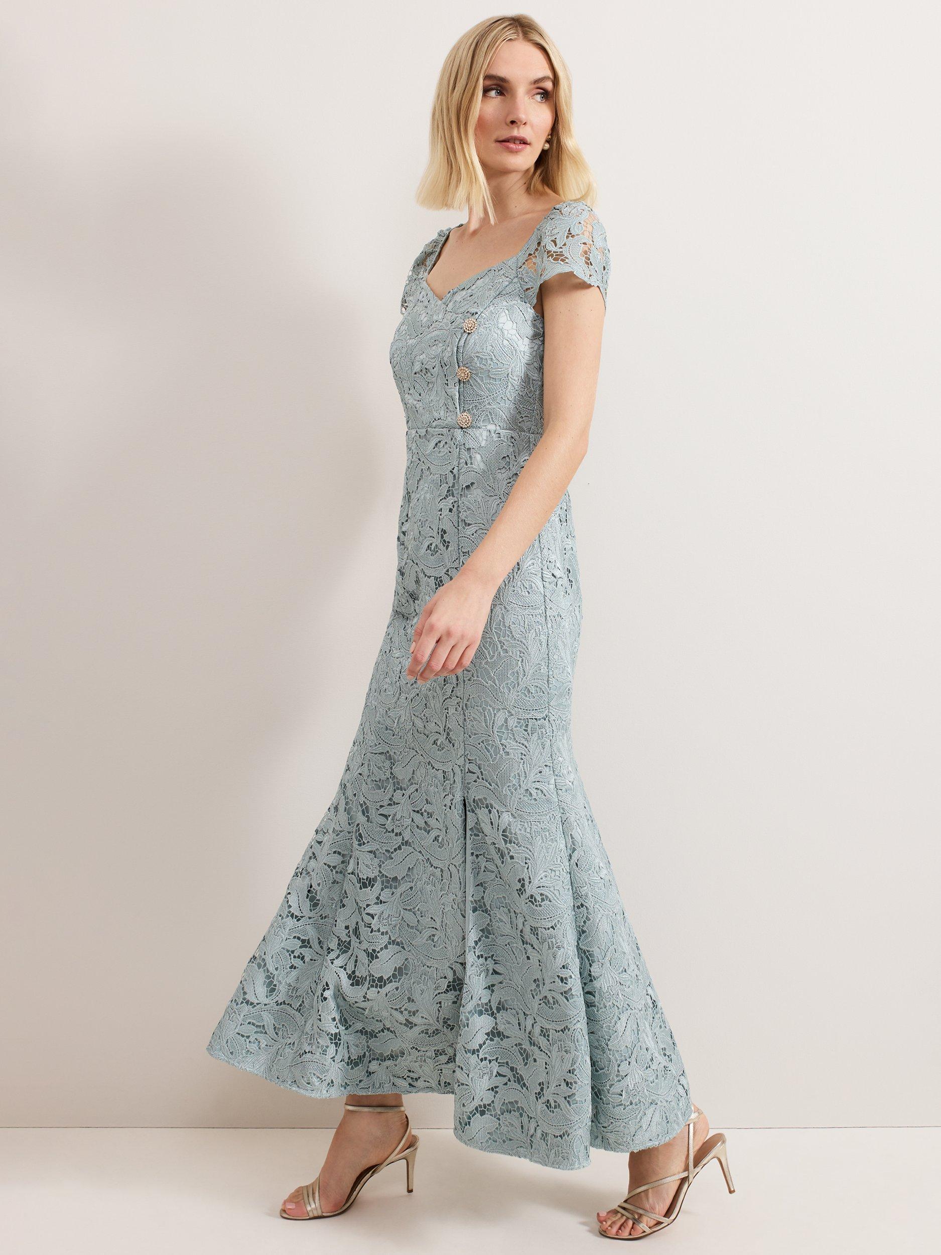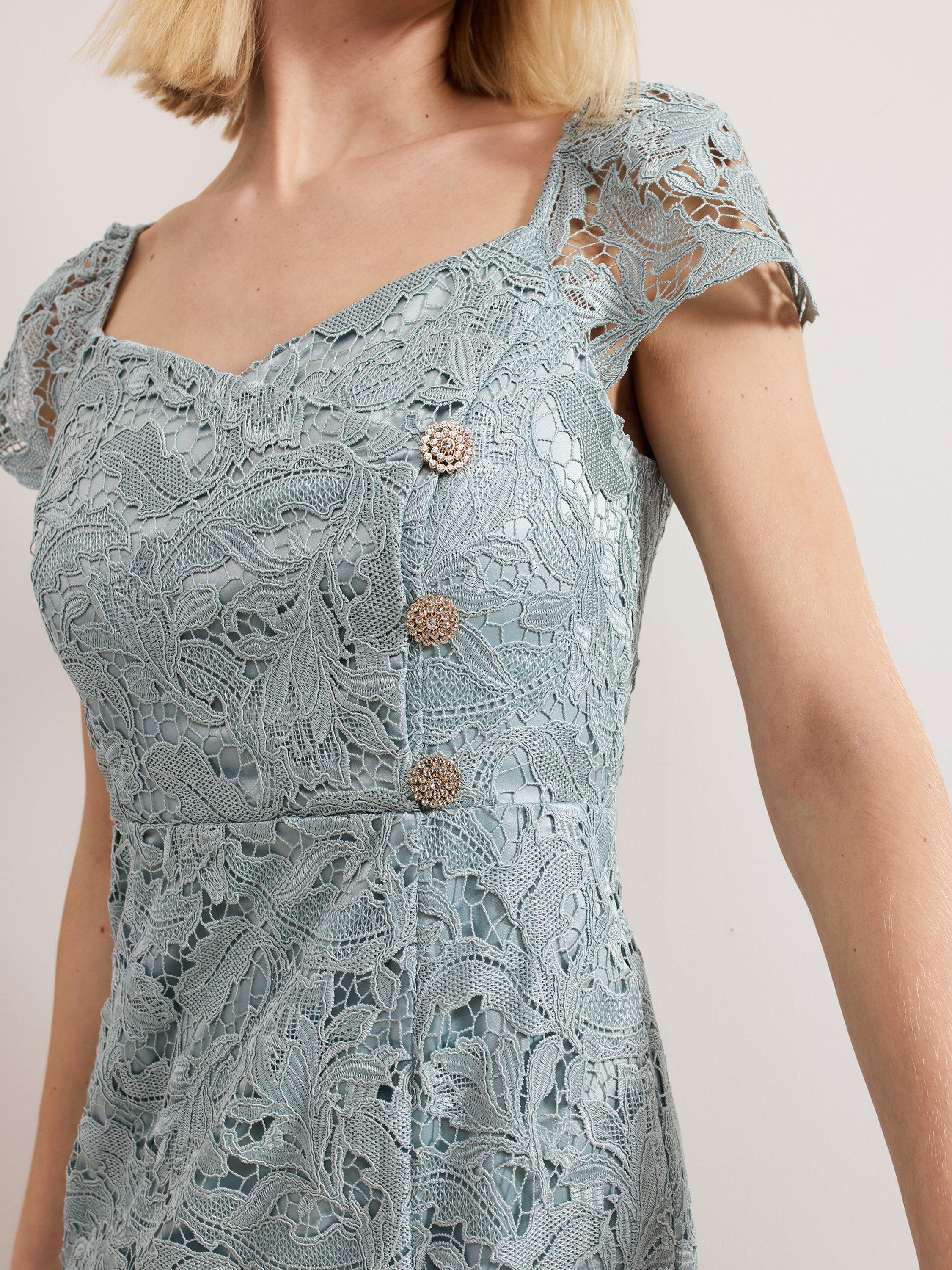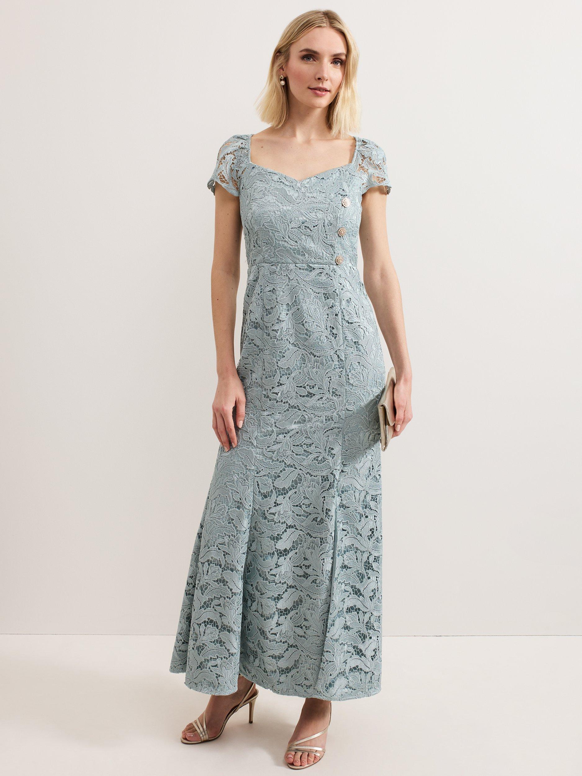 Entirely flattering with its flared shape, this maxi dress from Phase Eight features a lace overlay with a box pleated hem. Fashioned with a flattering, sweetheart neckline and short sleeves, it's a charming choice for special occasions.