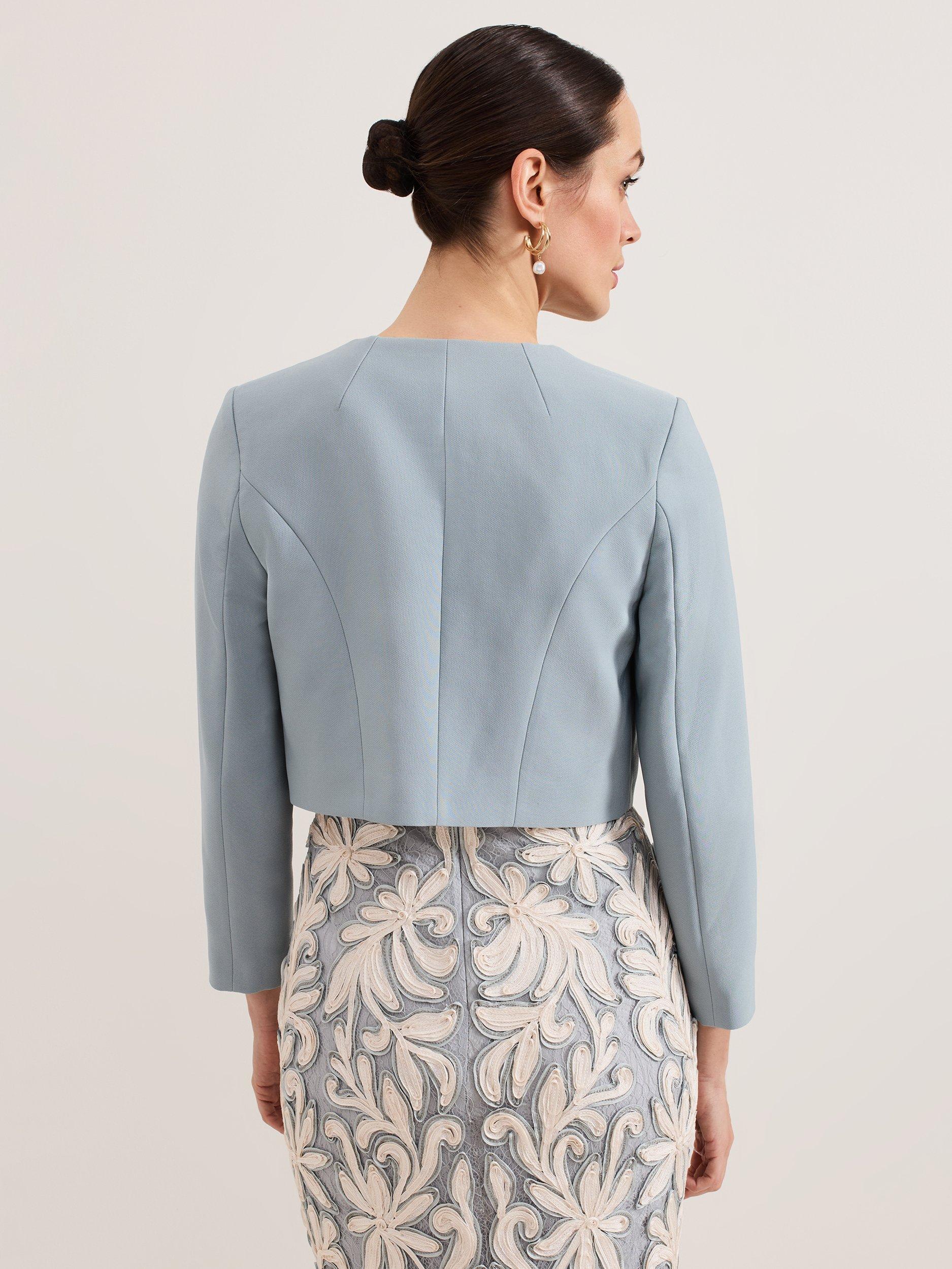 The Phoebe jacket is a refined wardrobe staple. Tailored in a cropped silhouette with exposed seam detailing at the back for a flattering fit it's the perfect feminine style to layer over all your favourite event looks.