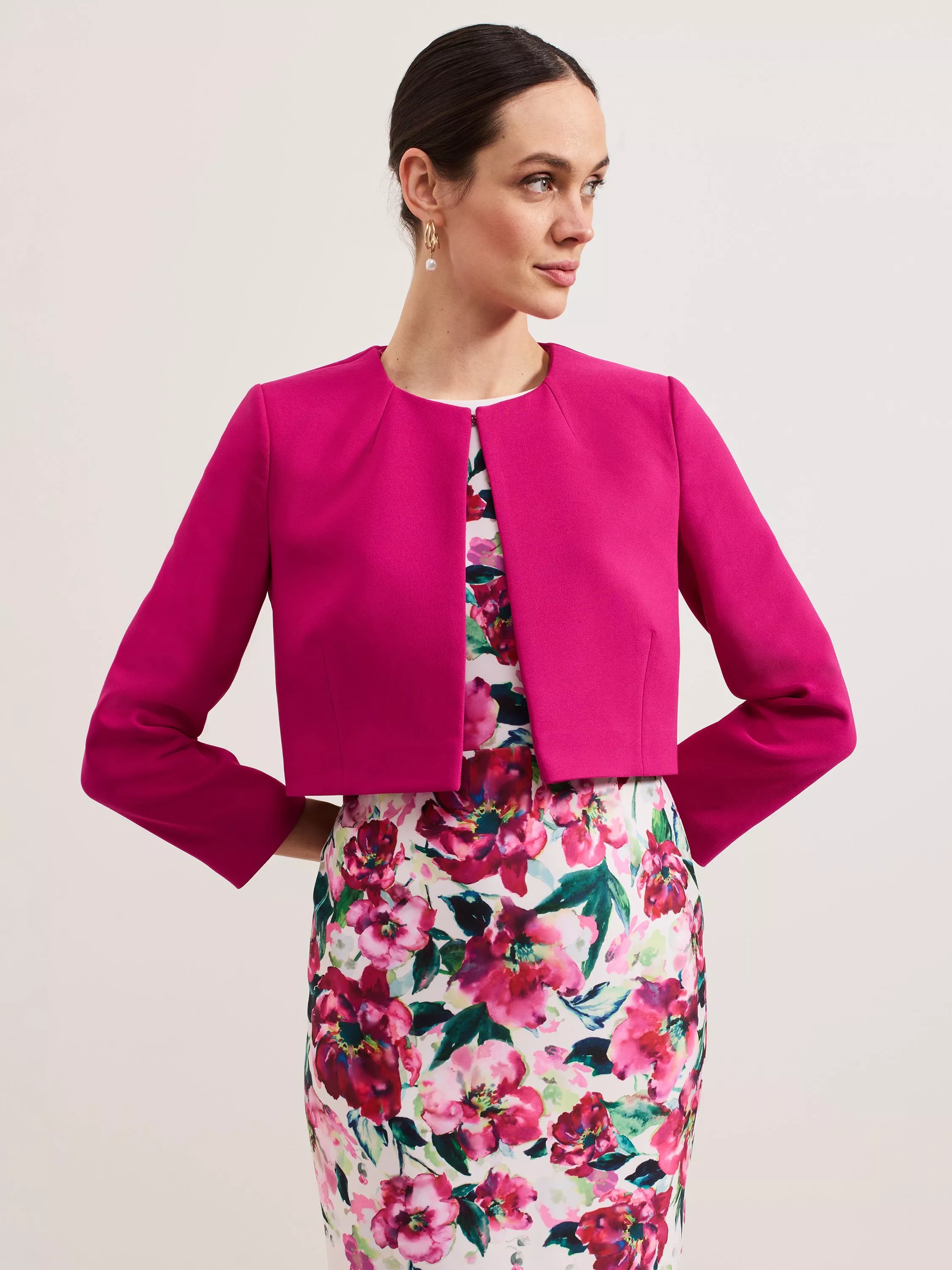 The Phoebe jacket is a refined wardrobe staple. Tailored in a cropped silhouette with exposed seam detailing at the back for a flattering fit it's the perfect feminine style to layer over all your favourite event looks.