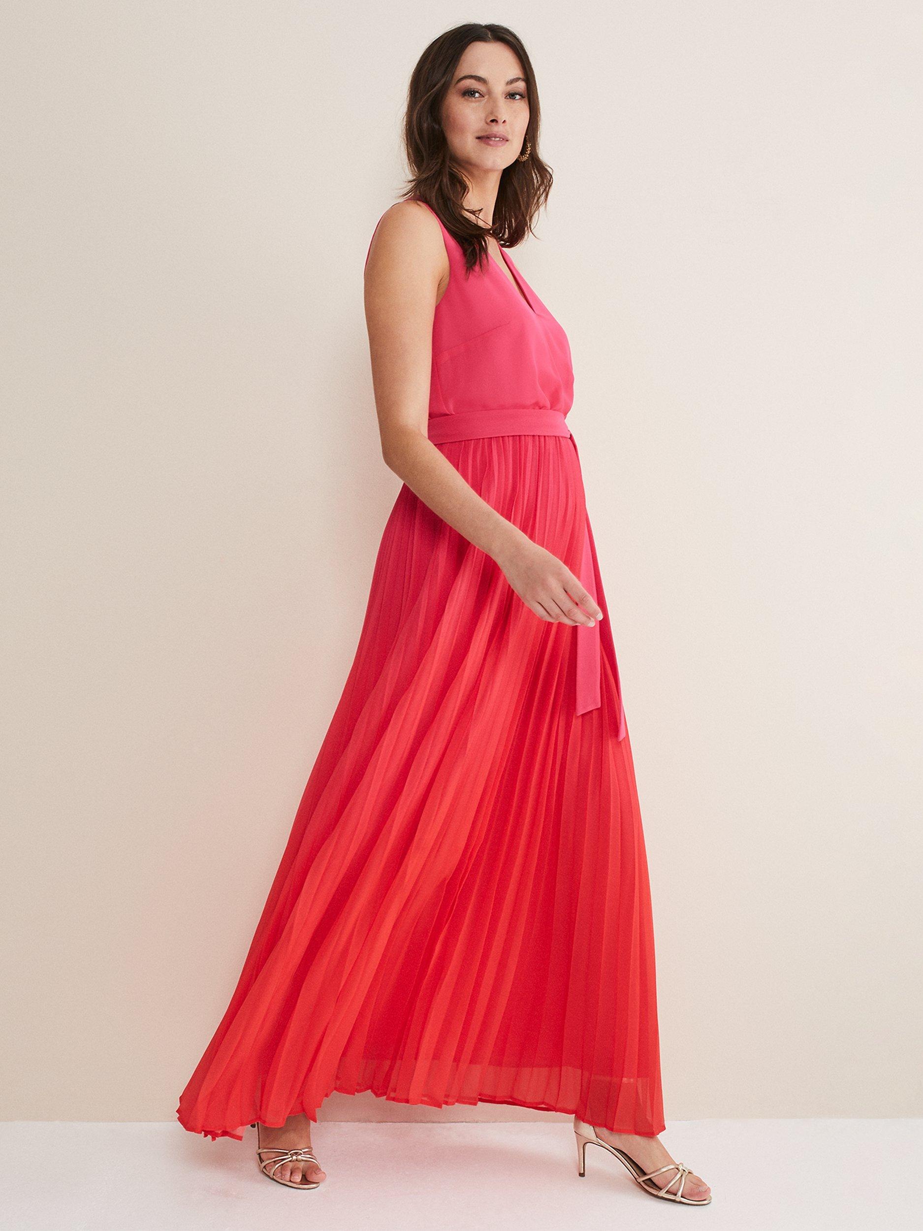 Phase EightPiper Pleated Maxi Dress, Red/Pink