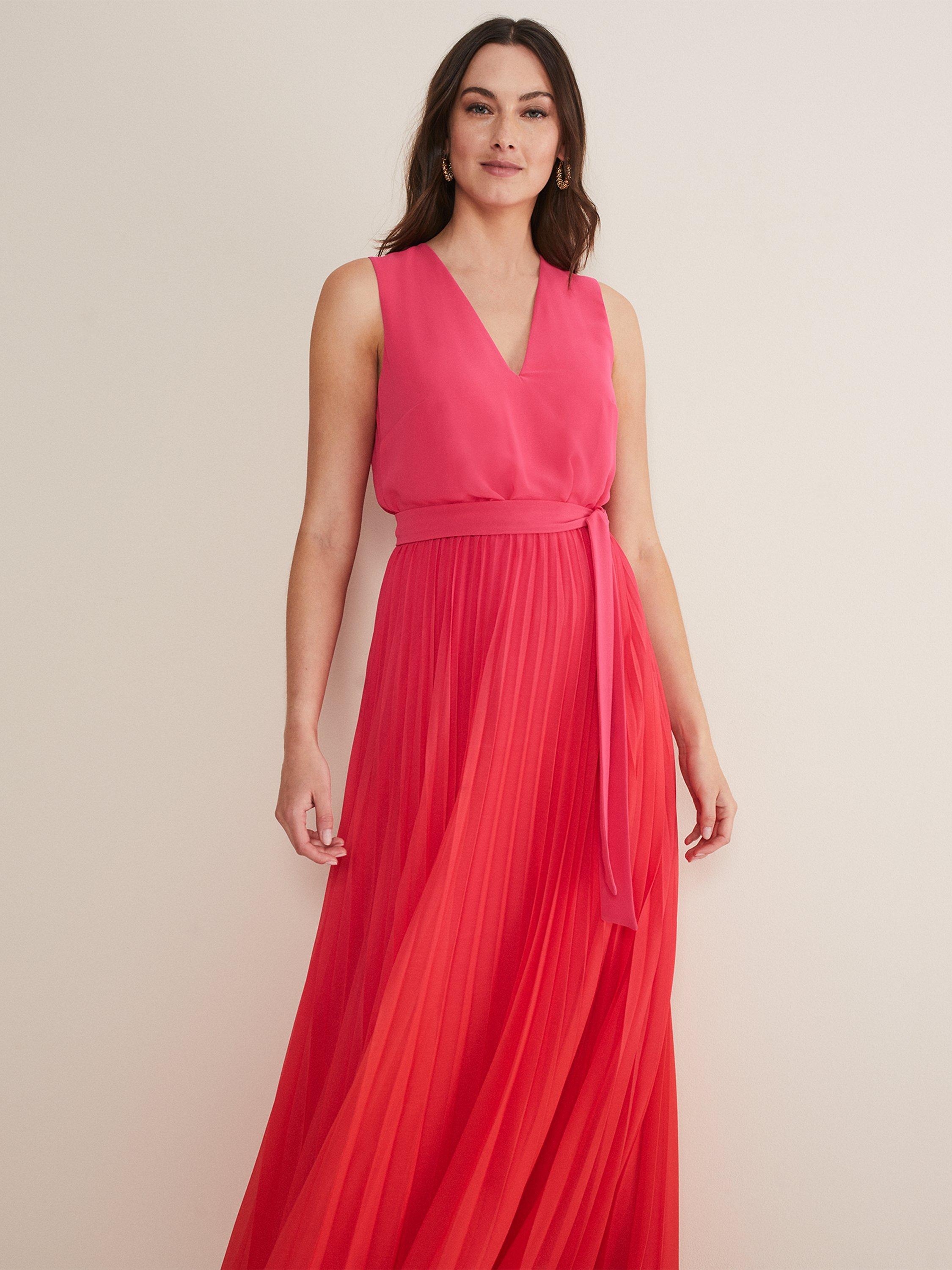 Creating an element of movement and fluidity with sharp pleats, this maxi dress from Phase Eight is made with longevity thanks to its fabrication. With a fuss-free but smart v-neckline, this style is blocked out in colour.