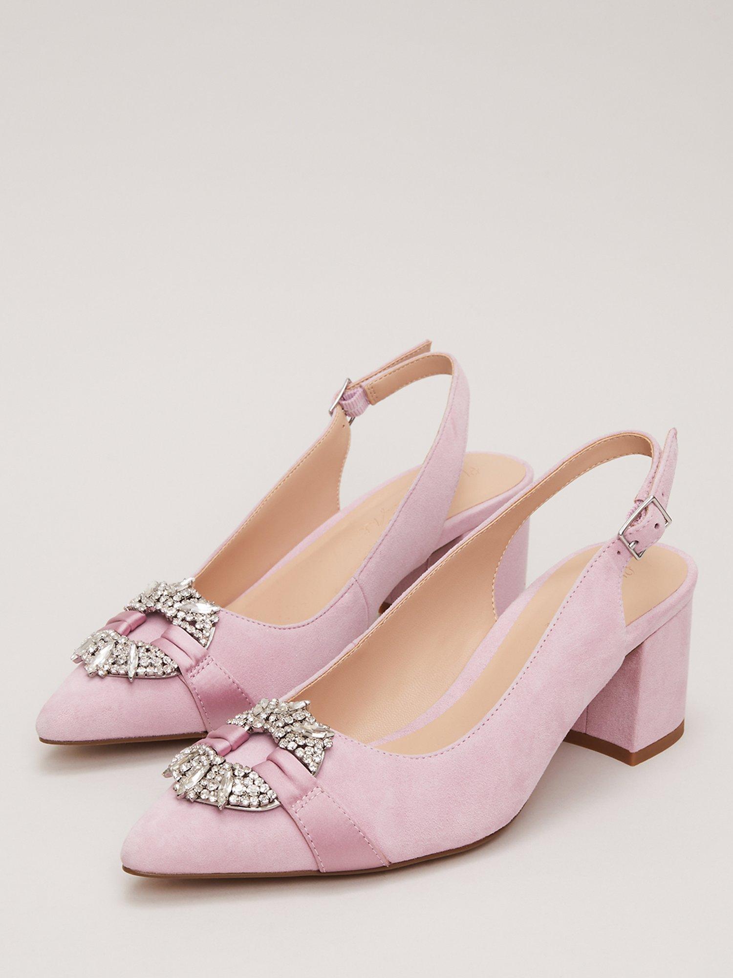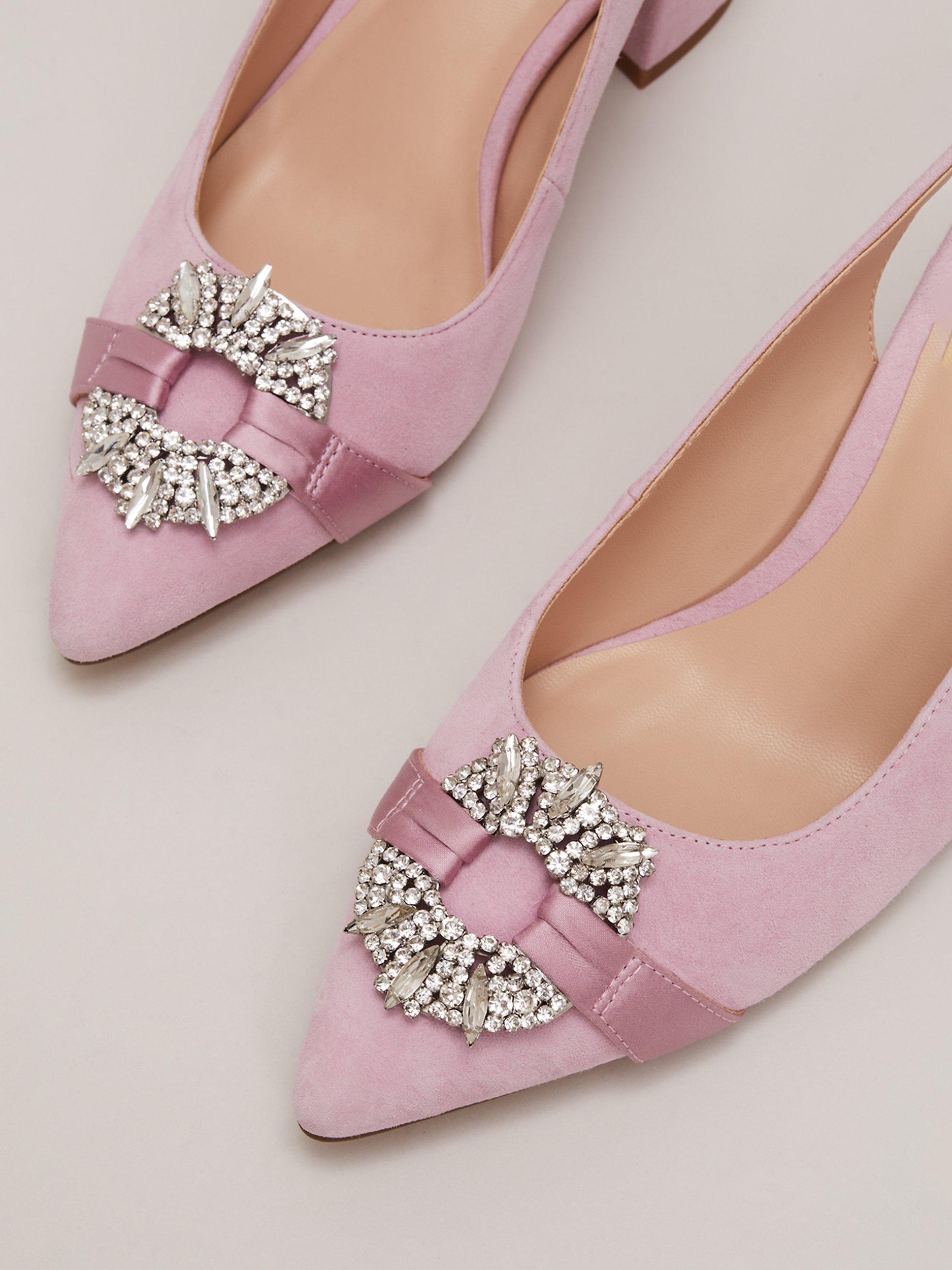 The perfect pairing for your occasion dress. These heels are decorated with a crystal embellishment at the pointed toe.
