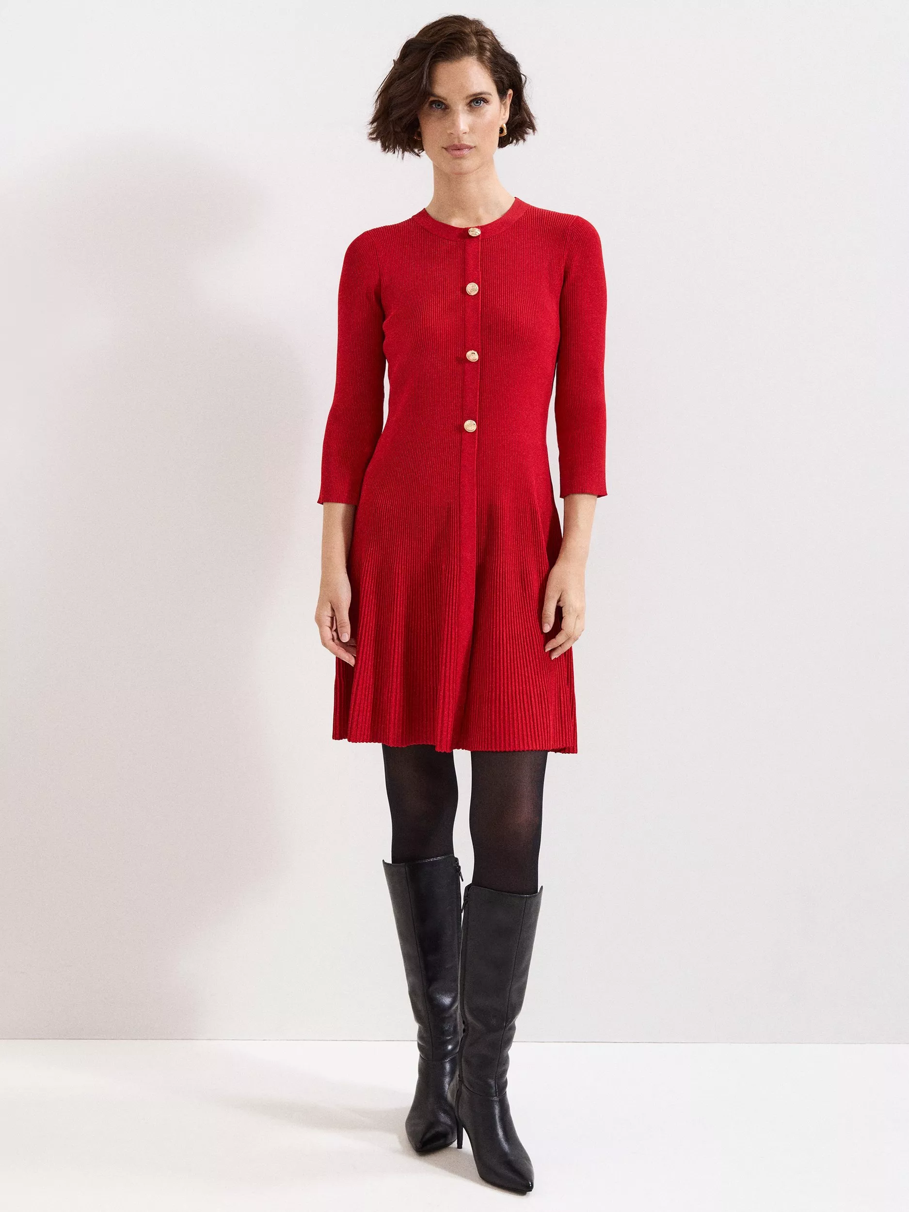 The knit dress you need this season. Made in a thick ribbed fabric featuring buttons and ¾ length sleeves, this mini swing dress is designed to be the perfect pull-on style, taking you from weekday to weekend. Wear with tights, boots and your go-to coat for the ultimate winter style.