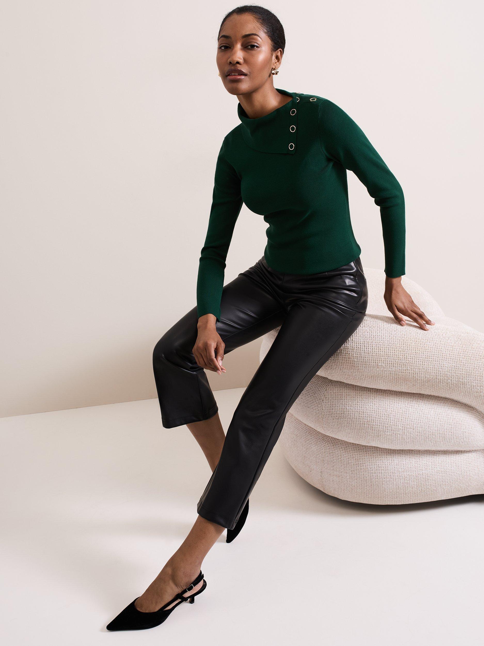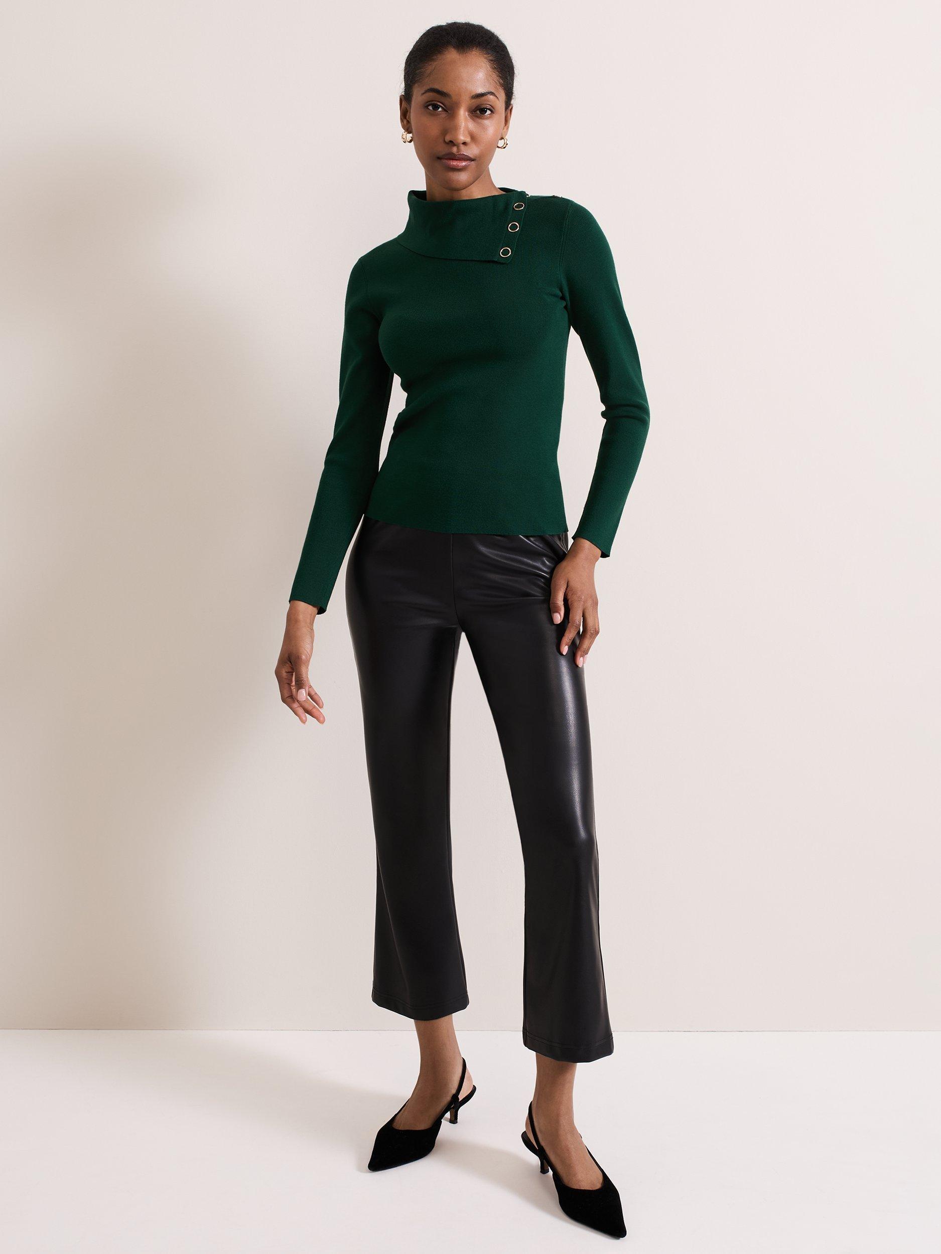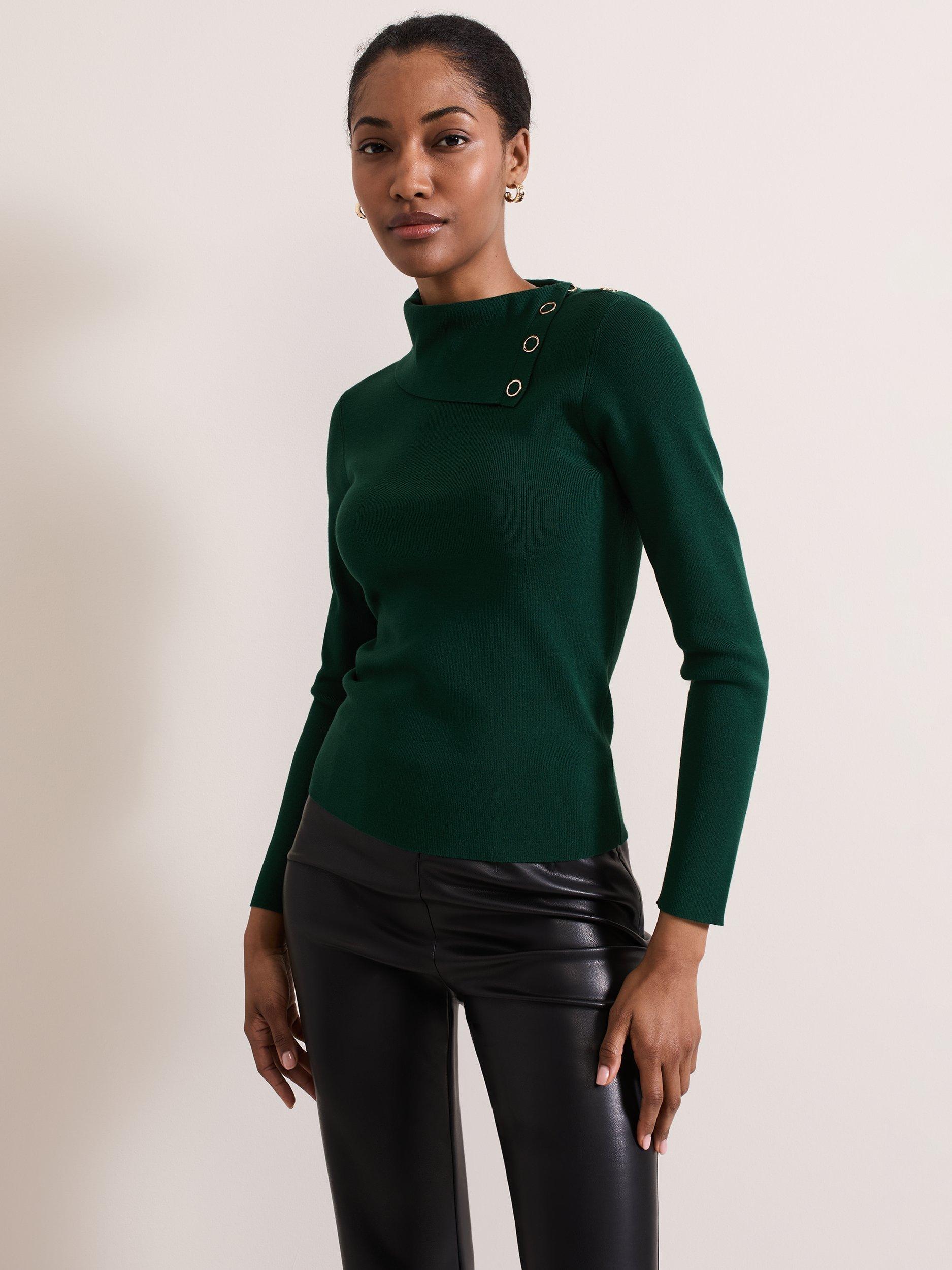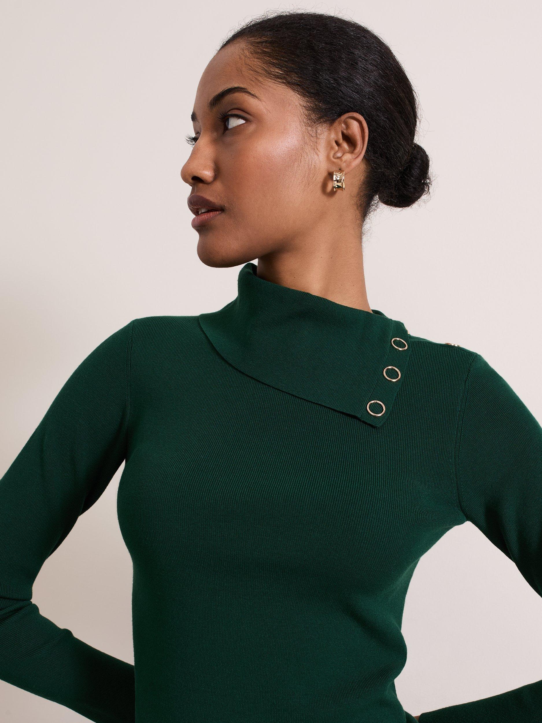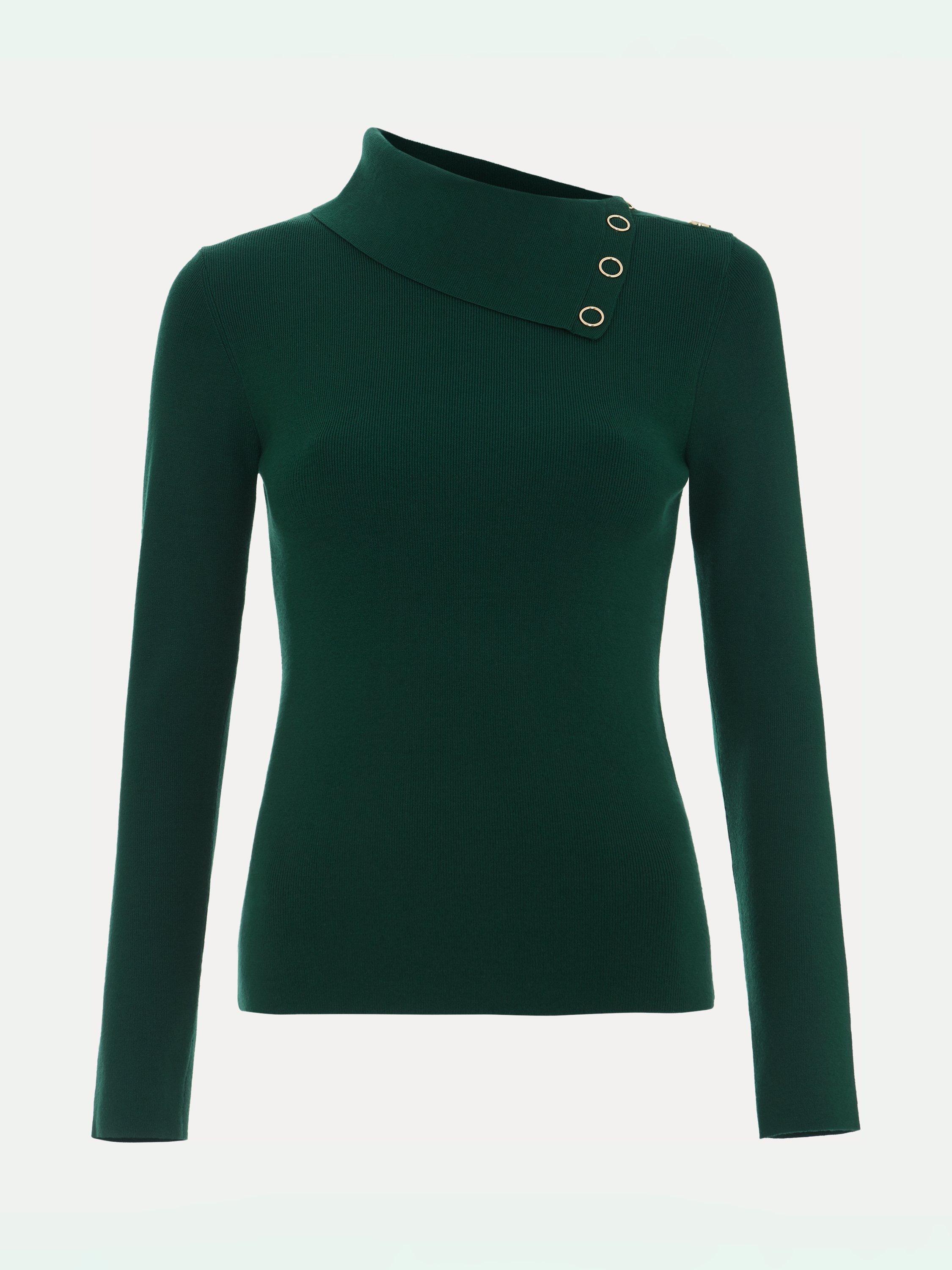 Designed in a gorgeous shade, the Regina top is the contemporary feminine style your wardrobe needs. Featuring long sleeves, a fine ribbed texture, and a foldover collar with gold popper detailing the top is the perfect work-to-weekend style to pair with your favourite trousers.