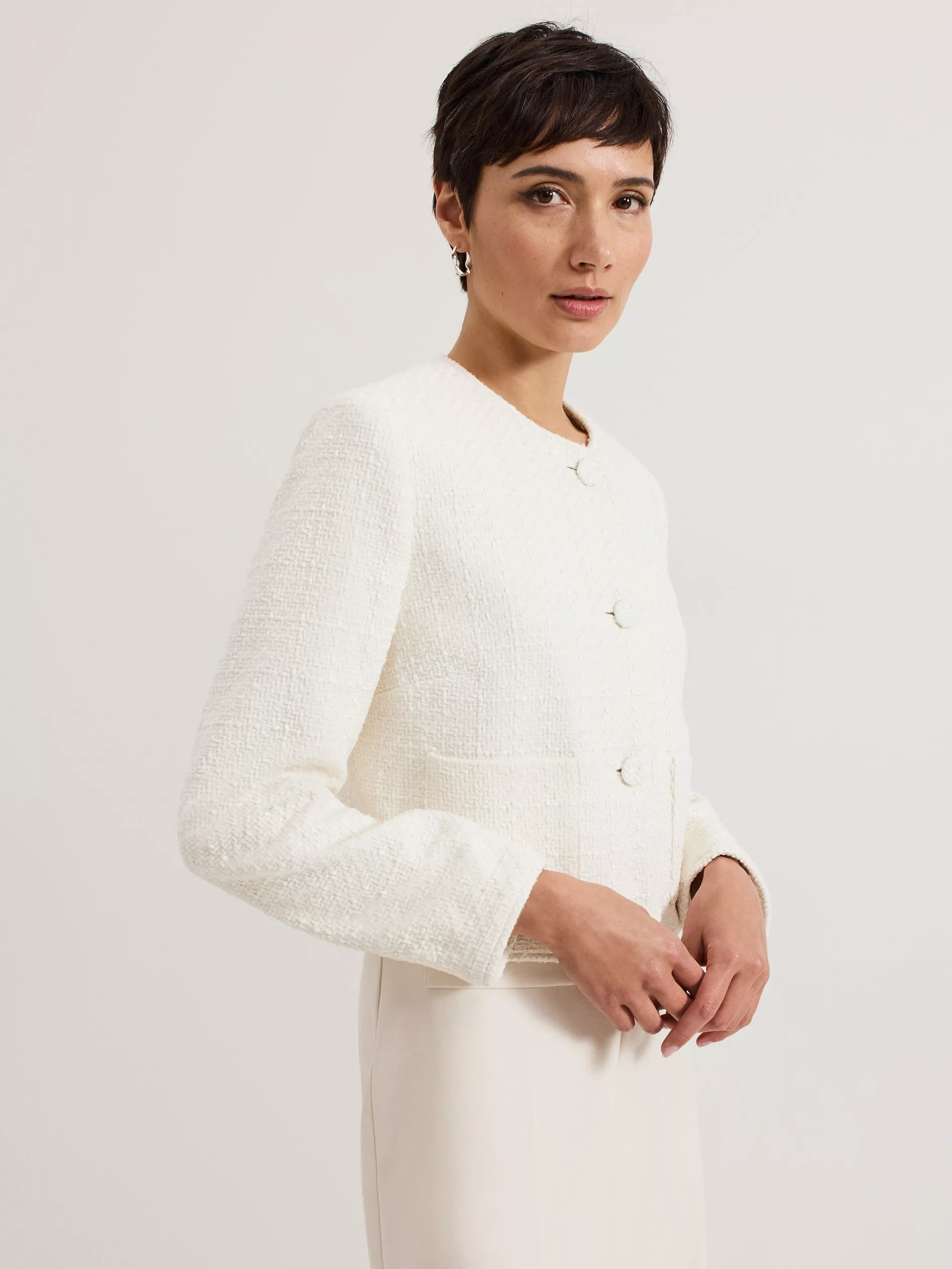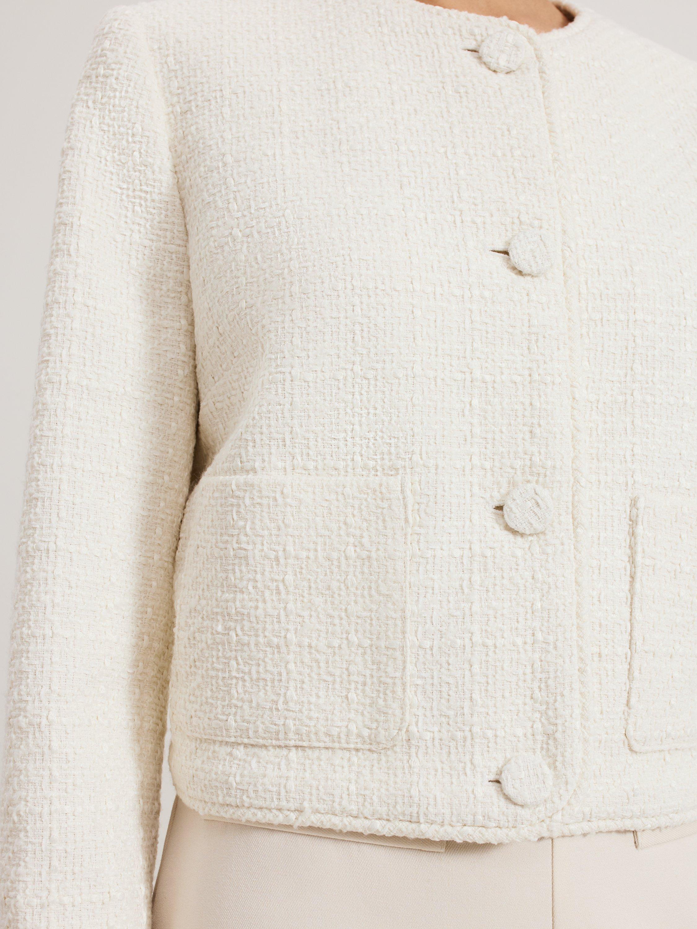 The Ripley jacket is the perfect final layer for all your favourite looks. The cropped jacket features a subtle texture for added interest. Finished with patch pockets and matching covered buttons, it's sure to become a staple in your wardrobe.