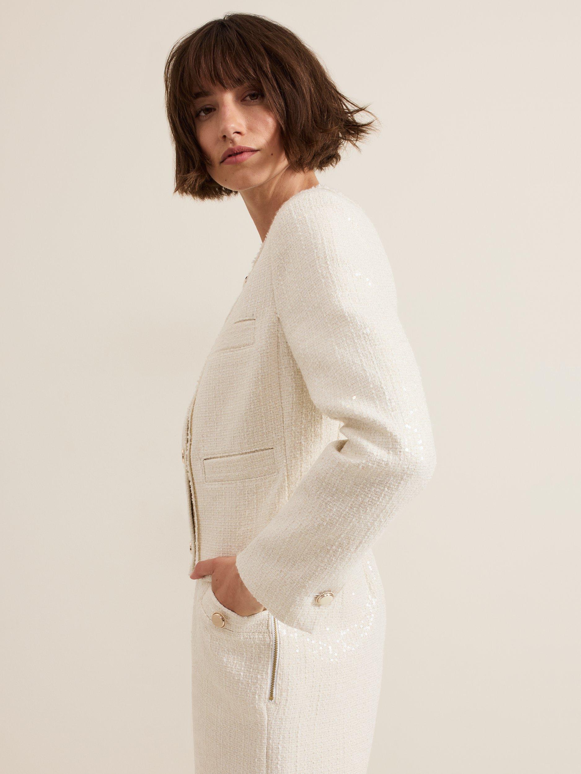 Designed with subtle sequin detailing, this tailored jacket features pockets and matching buttons with detailing to add the perfect finish to this classic style.