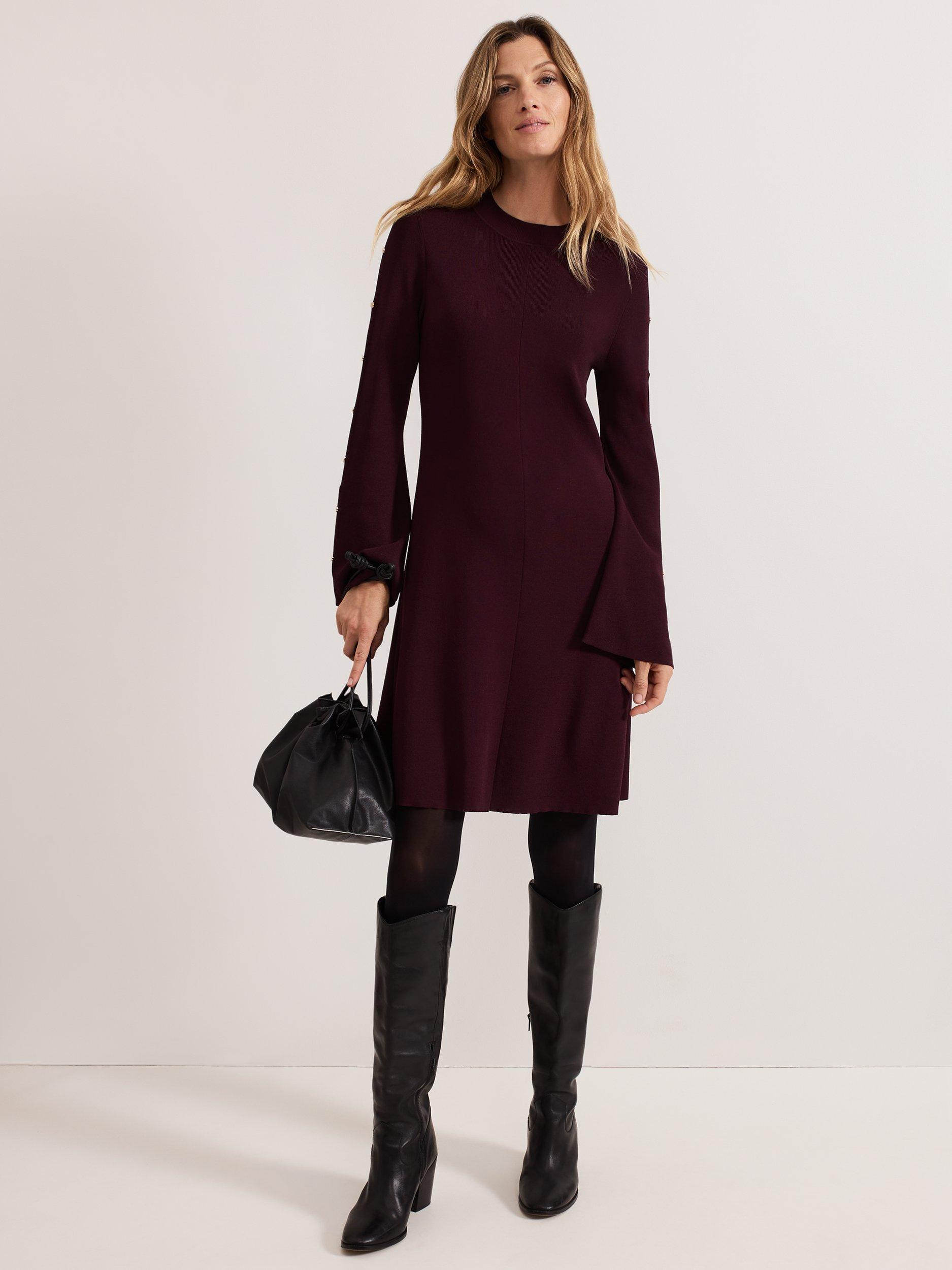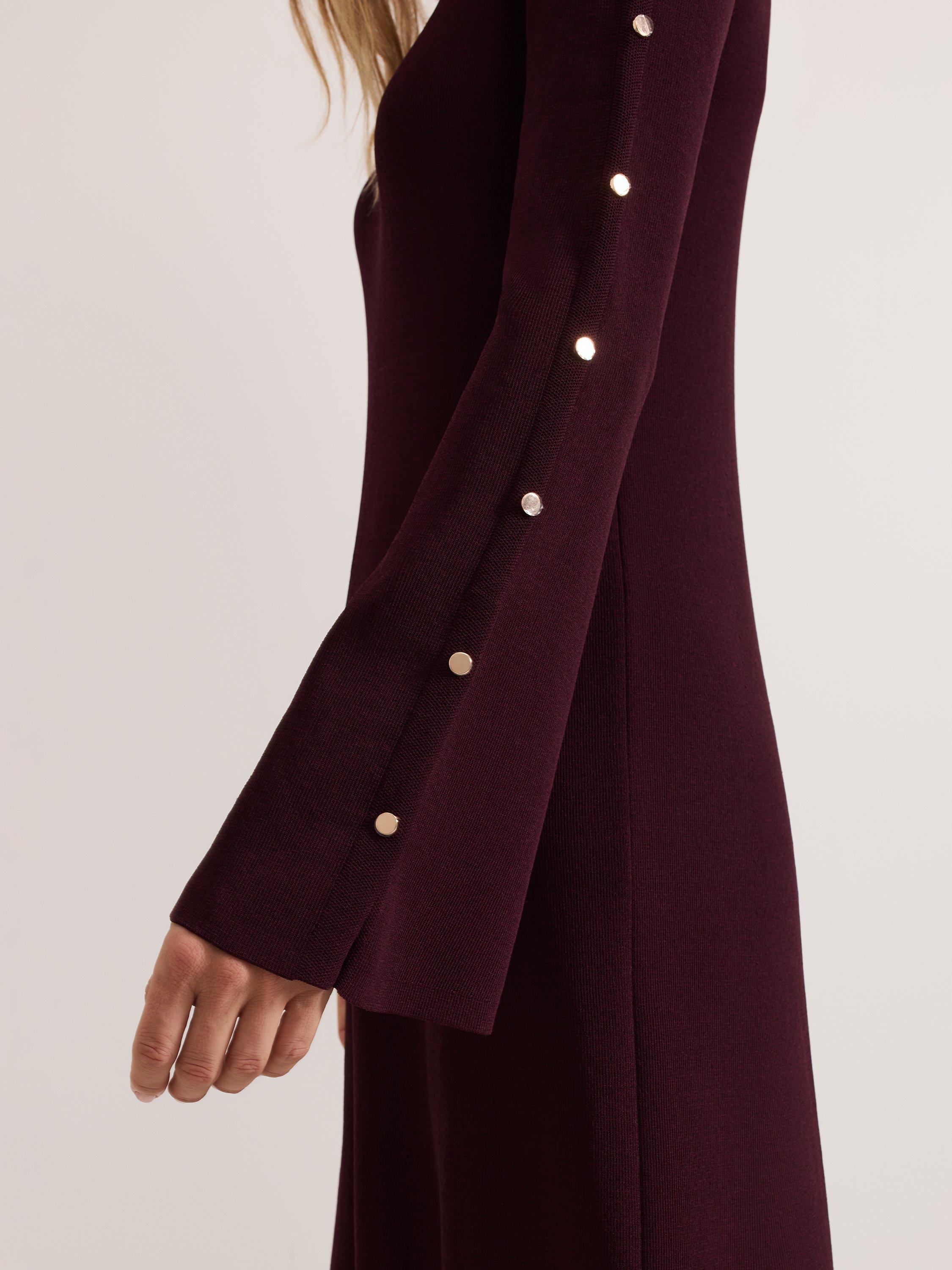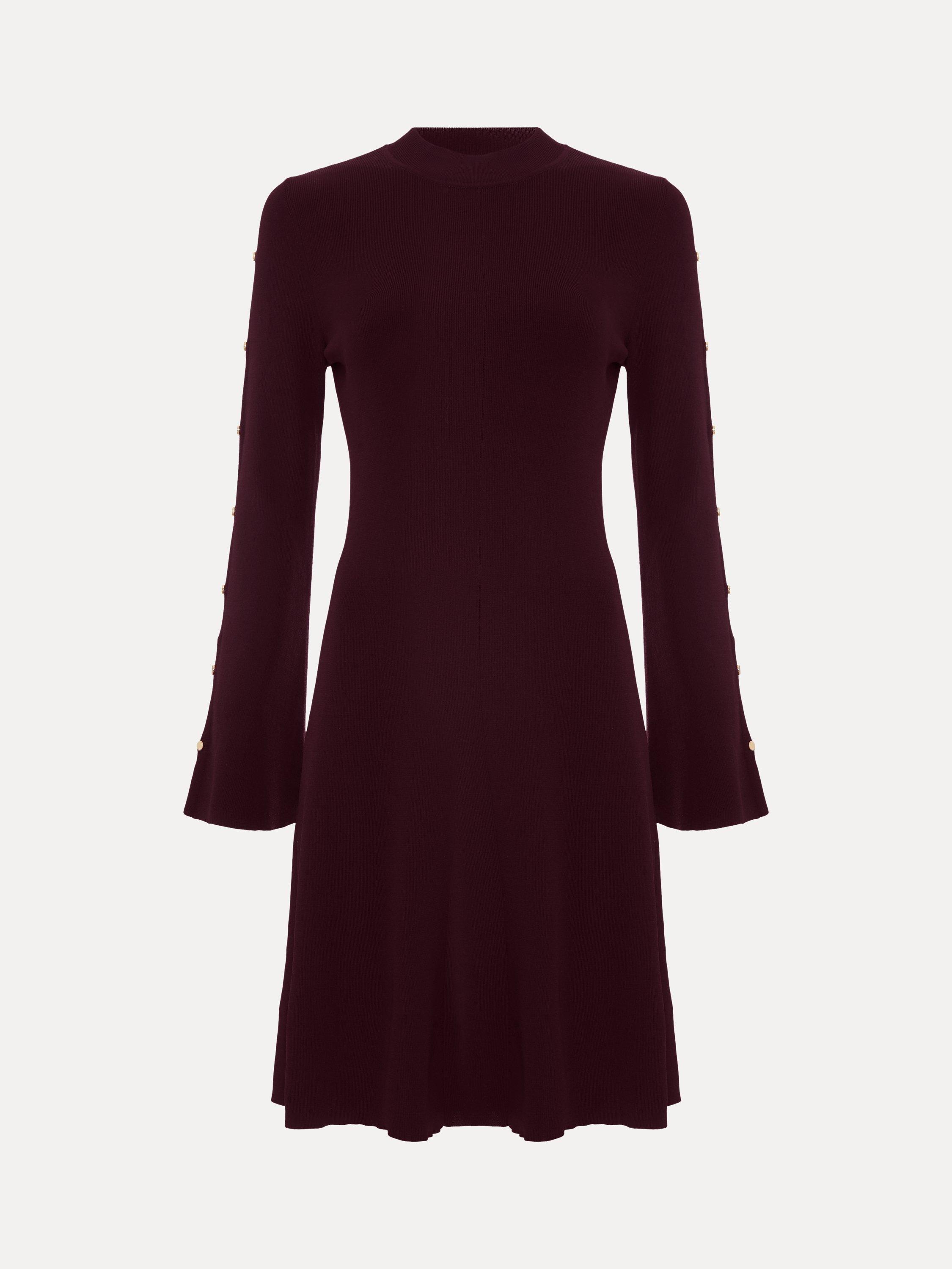 Designed in a deep hue, this knitted dress features long fluted sleeves embellished with stud detailing and is cut to a mini swing silhouette. Pair with your favourite black accessories for a style that's perfect for dressing up or down.