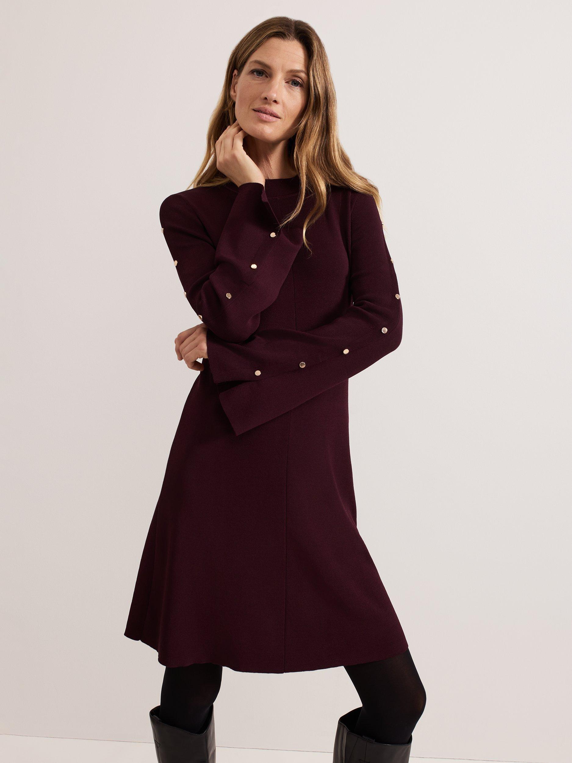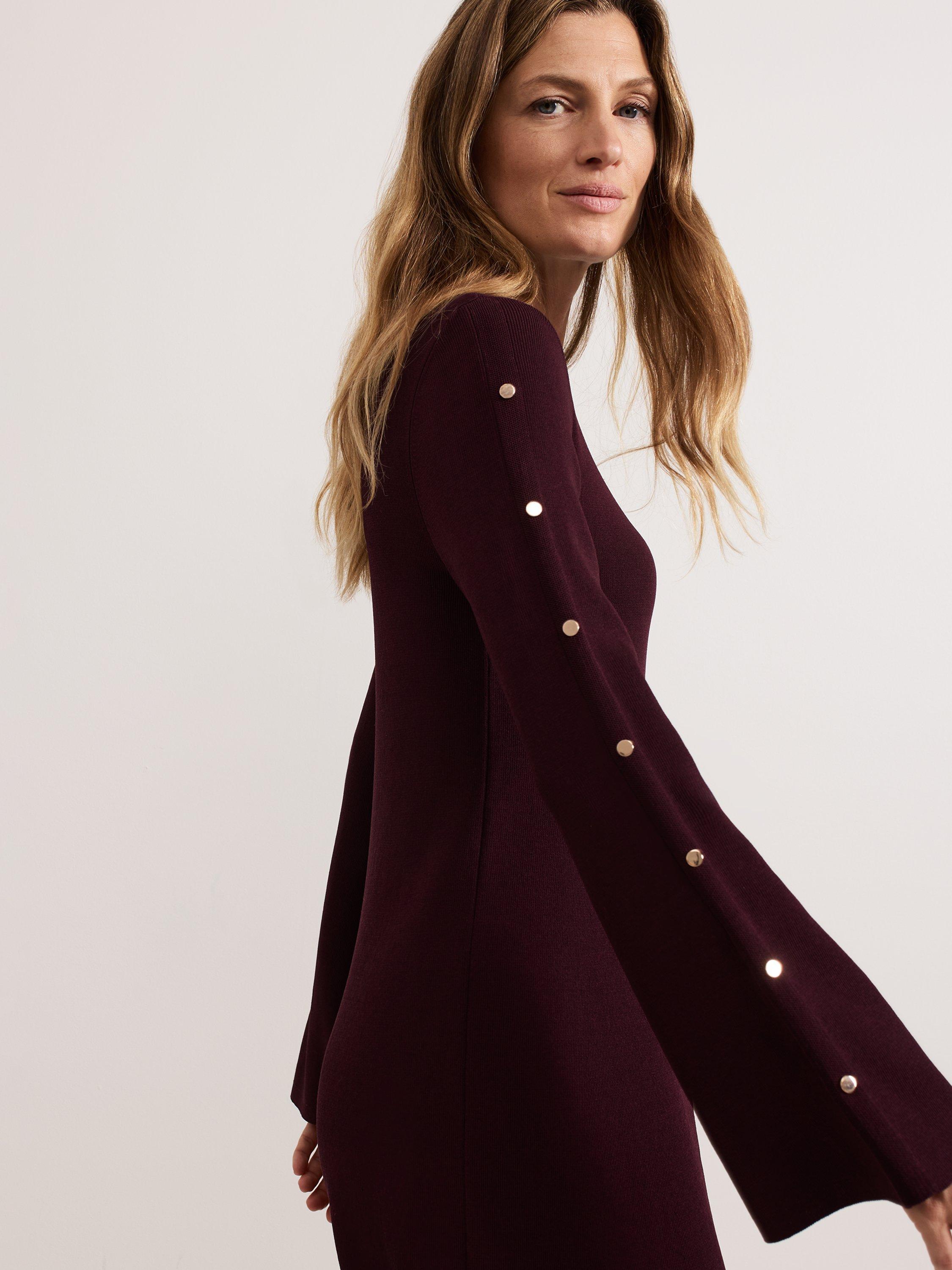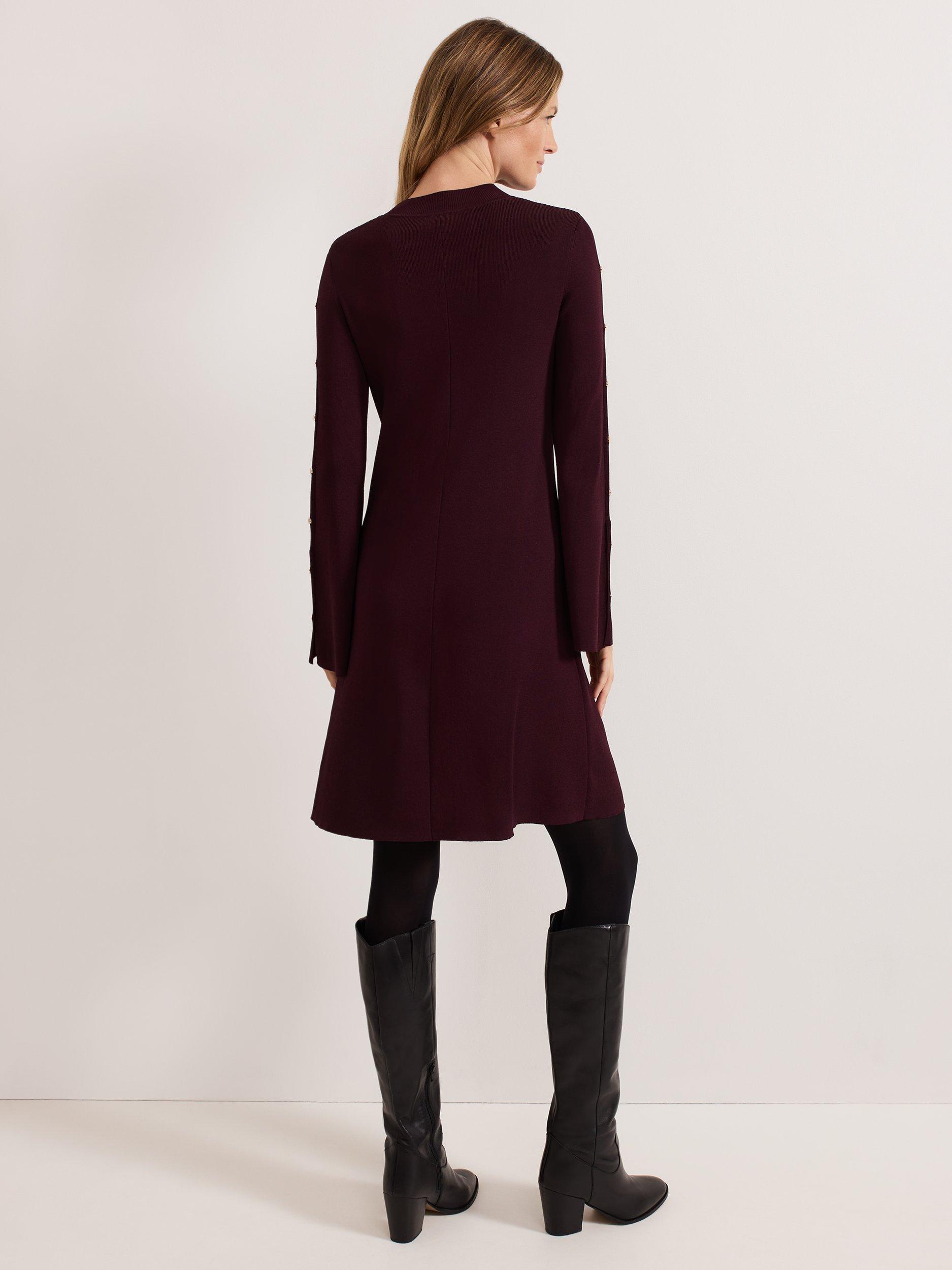 Designed in a deep hue, this knitted dress features long fluted sleeves embellished with stud detailing and is cut to a mini swing silhouette. Pair with your favourite black accessories for a style that's perfect for dressing up or down.