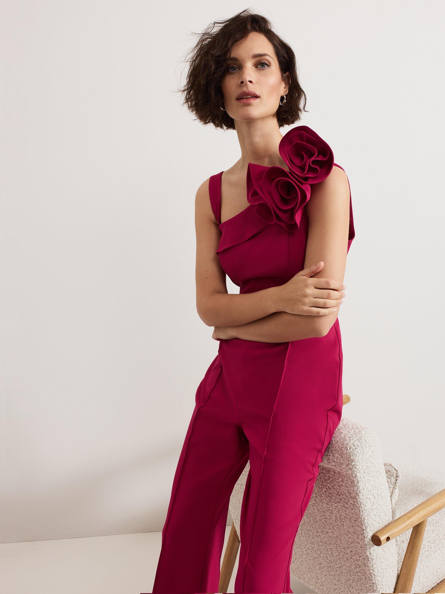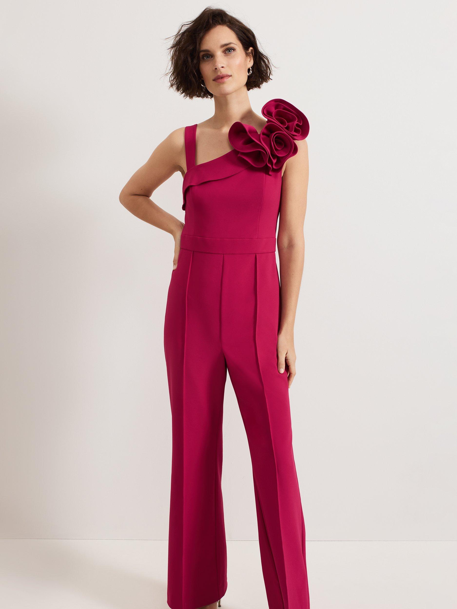 Defined with an asymmetric neckline, this sleeveless jumpsuit by Phase Eight is made from a fluid blended fabric.
