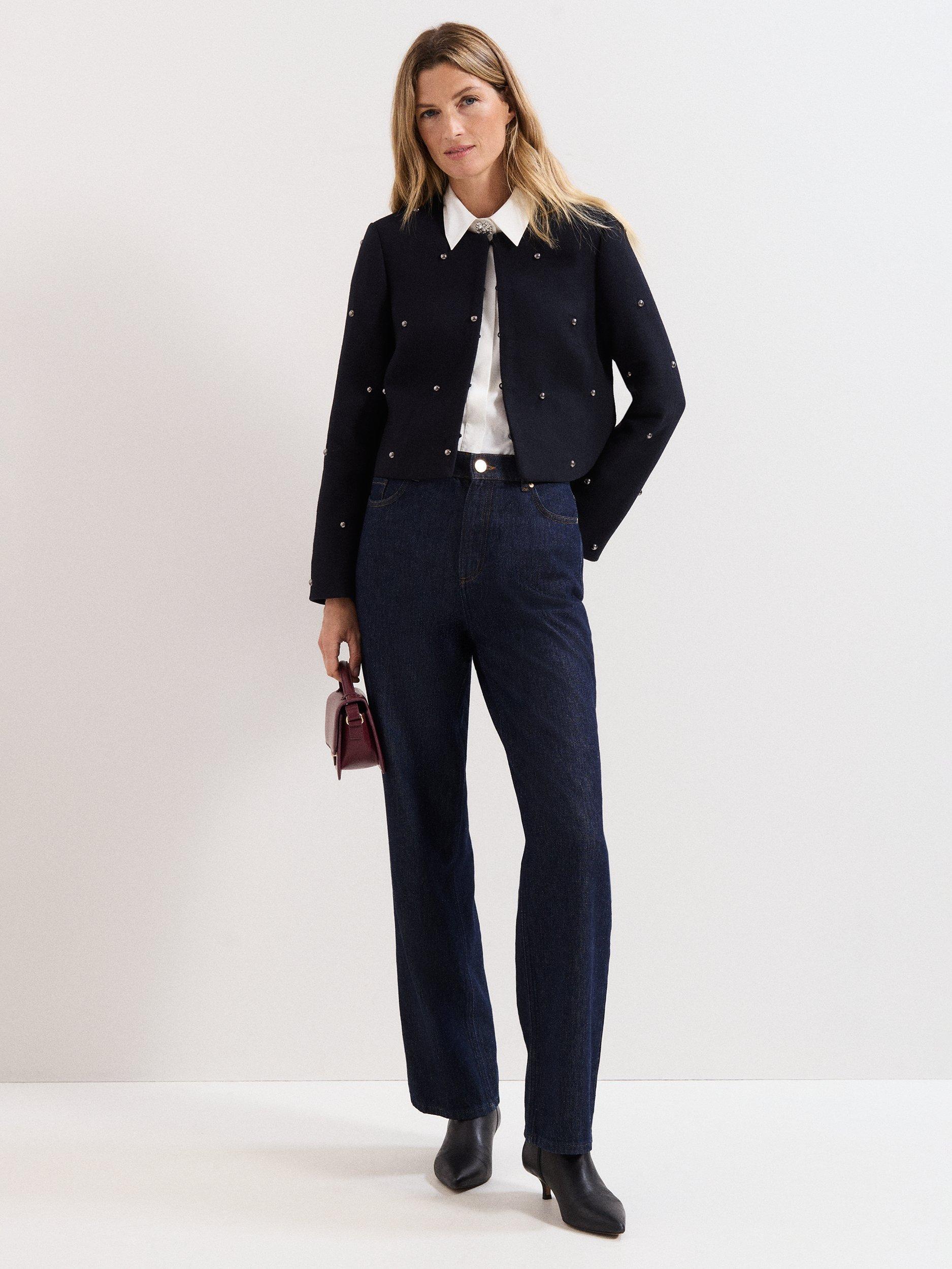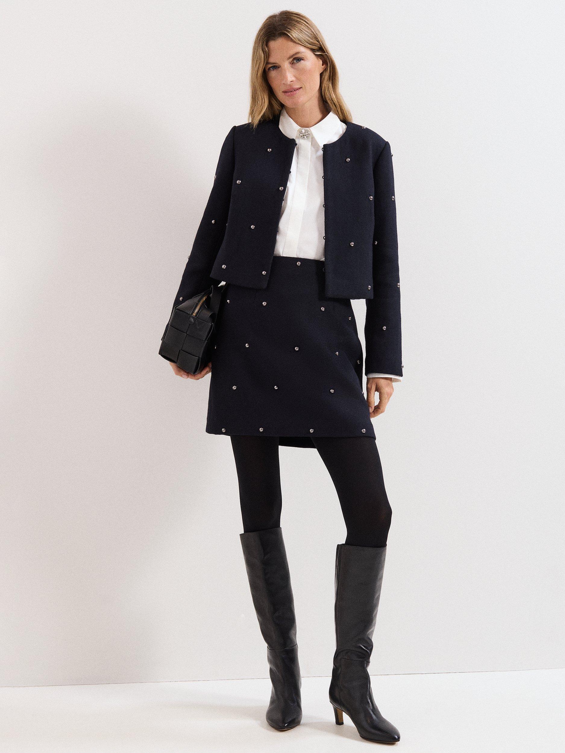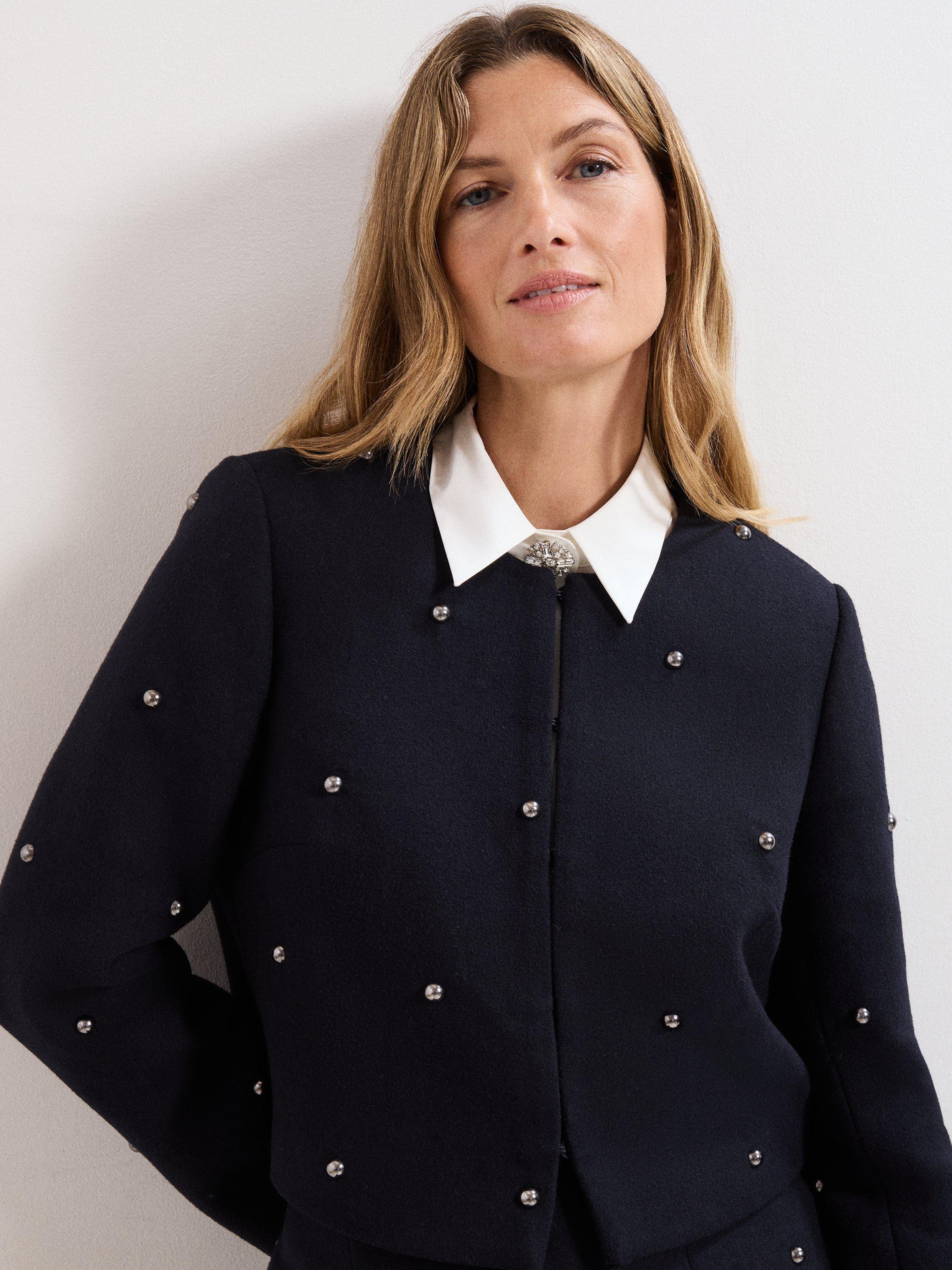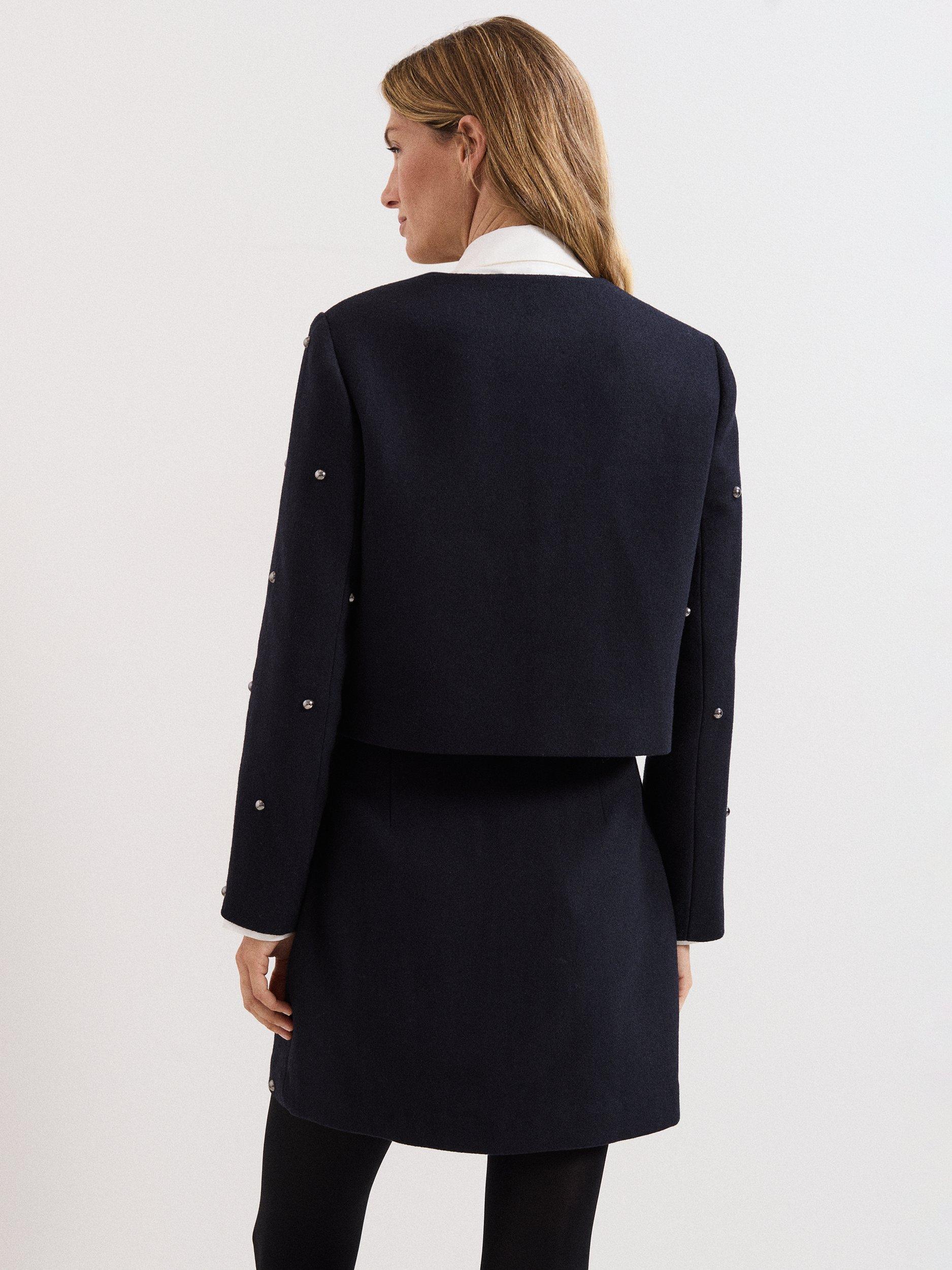 In a soft wool-blend, featuring on-trend studding and subtle shoulder pads it’s a structured yet feminine silhouette. Style with your favourite jeans for a cool, off-duty look or pair with a Rue mini skirt for the perfect smart/casual outfit.