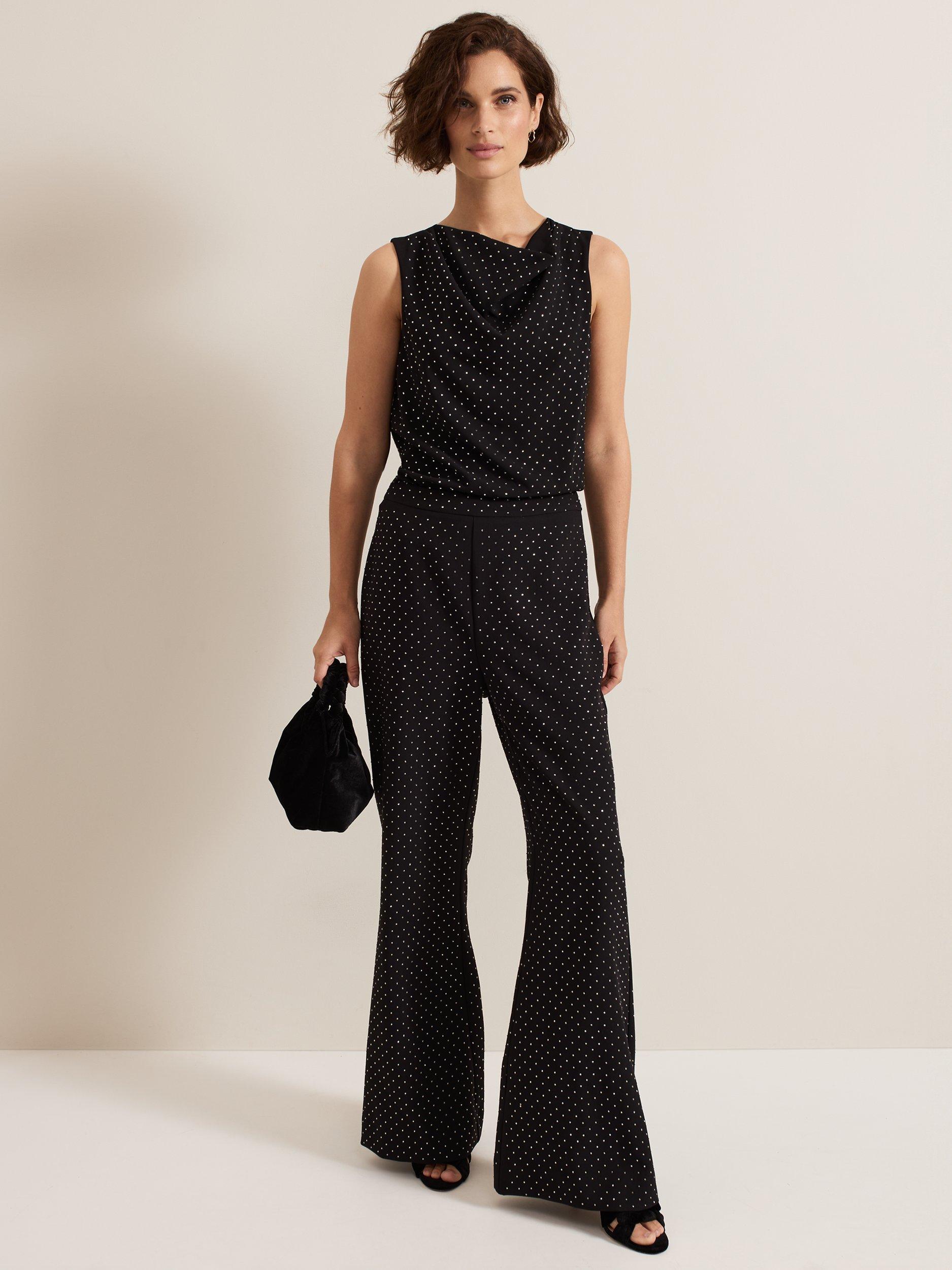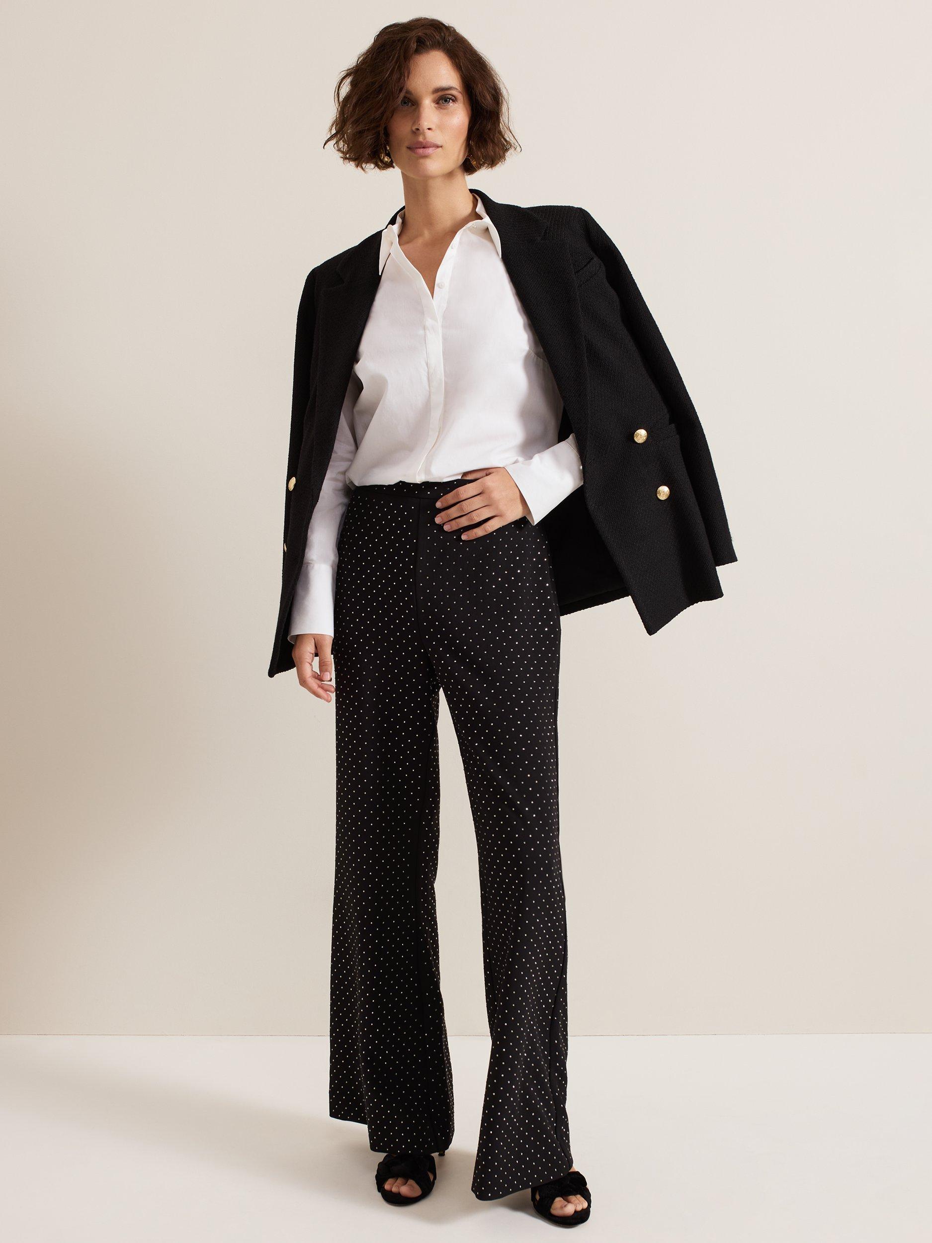 In classic black with silver stud detailing all over, the Samantha trousers are cut to a flared silhouette for a contemporary feminine style. Wear on their own or with our matching Samantha top for a coordinated look.