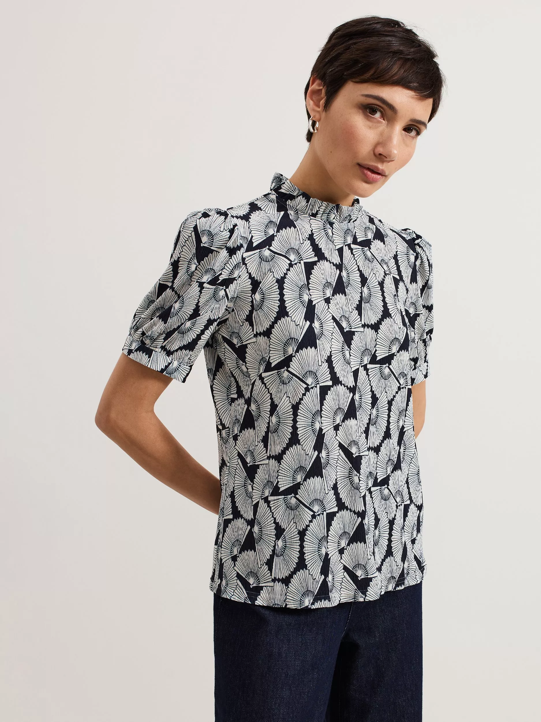 Meet the Samiha top. In a contemporary fan print that catches the eye, this top is crafted from a lightweight plisse material that creates subtle texture. Finished with feminine ruffle detailing at the neckline it's the perfect style to add to your wardrobe. For an effortless look, pair with jeans and your favourite heels.