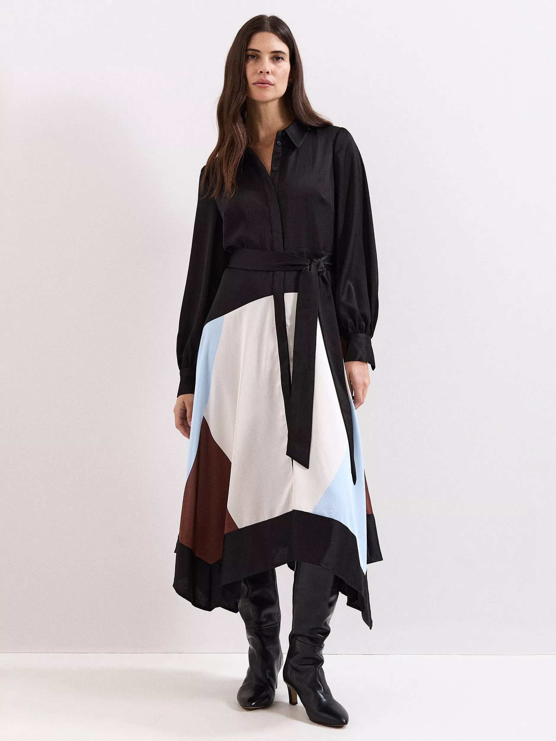 A midi shirt dress from Phase Eight, featuring striking geometric patterns and a comfortable regular fit. The collared neckline and button fastening keep your look sharp yet playful, perfect for making a statement at any daytime event.