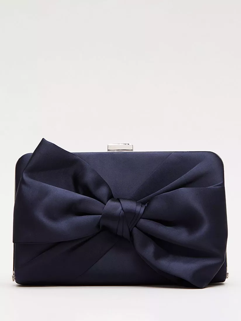 A box clutch from Phase Eight, made from satin with a knot front detail. With a long chain strap for flexible styling options, the compact design ensures your essentials are kept close.