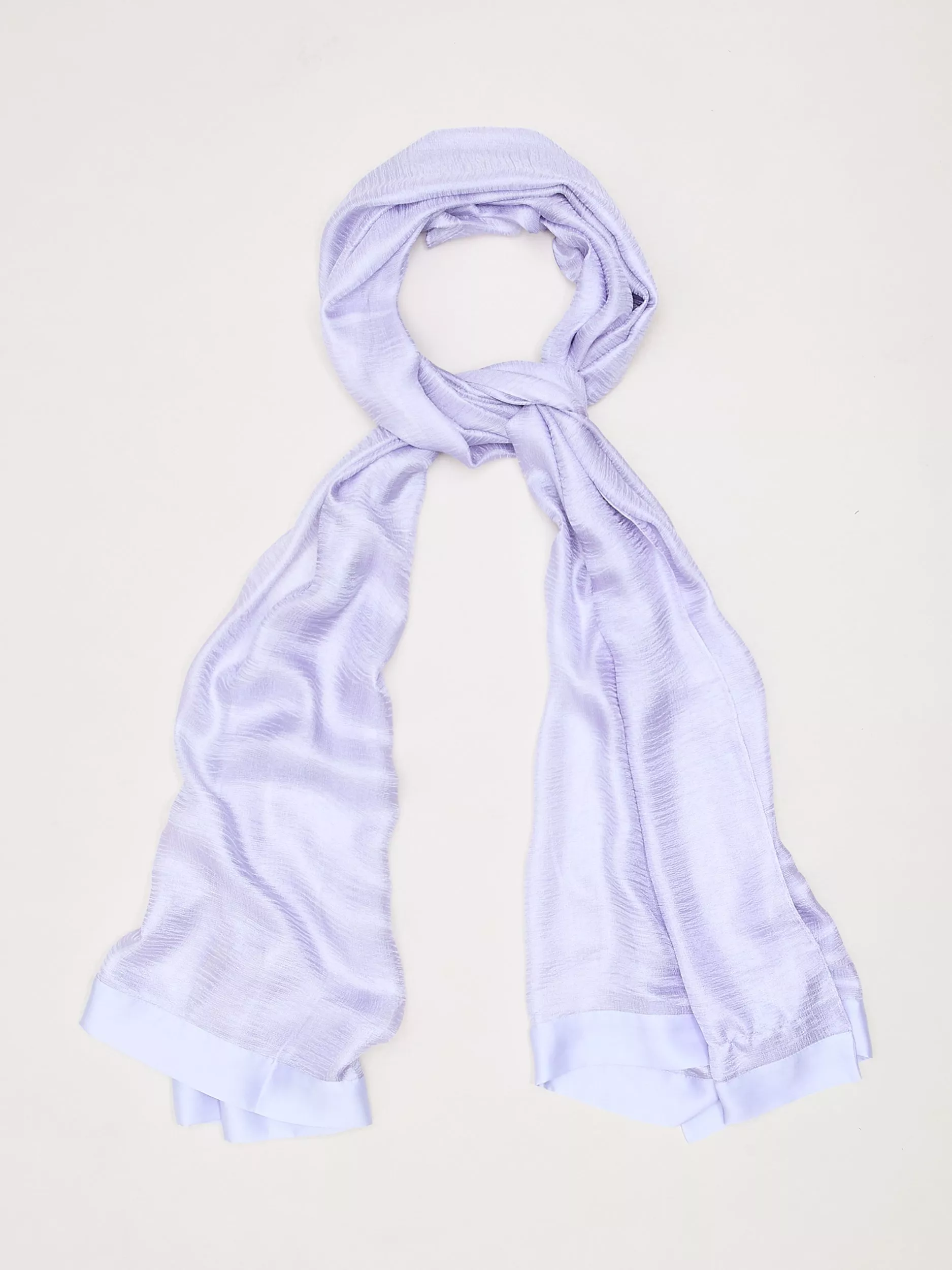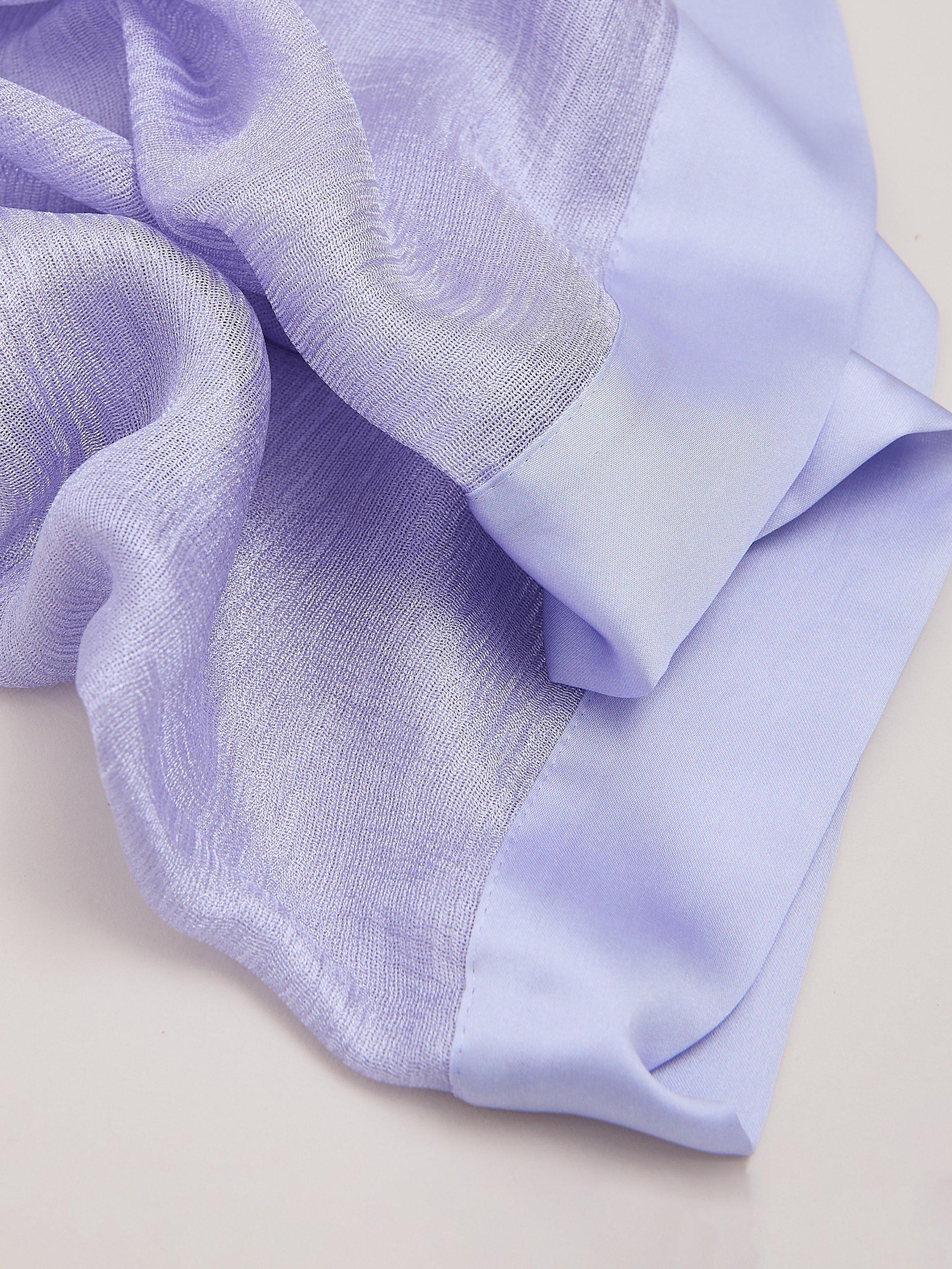 A lightweight, semi-sheer scarf, made with a soft drape to enhance any look. There is no superfluous detail here; it is kept simple for versatility, with only a satin trim edge to define it.