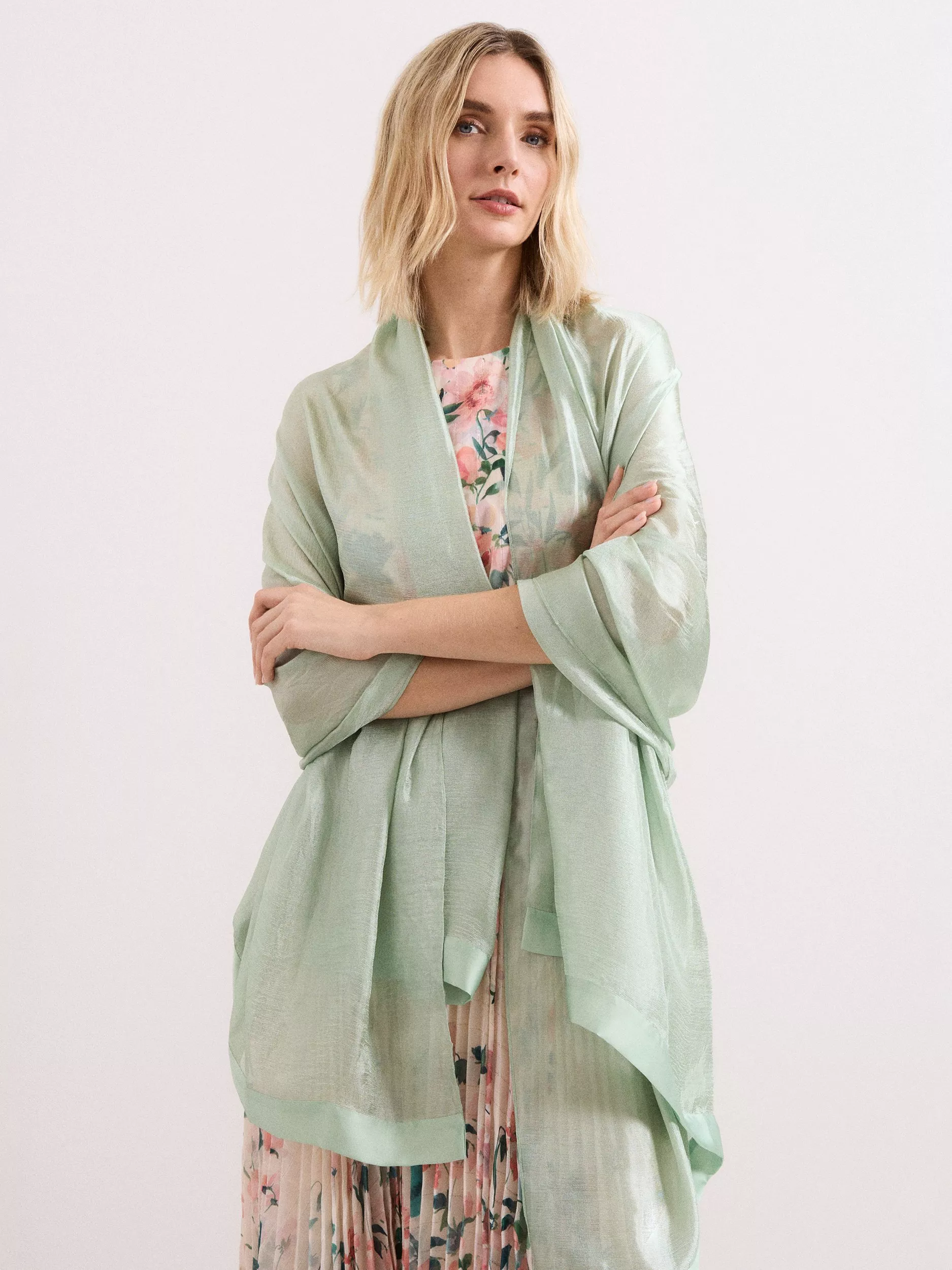 A satin trim scarf from Phase Eight, kept simple for timeless style.