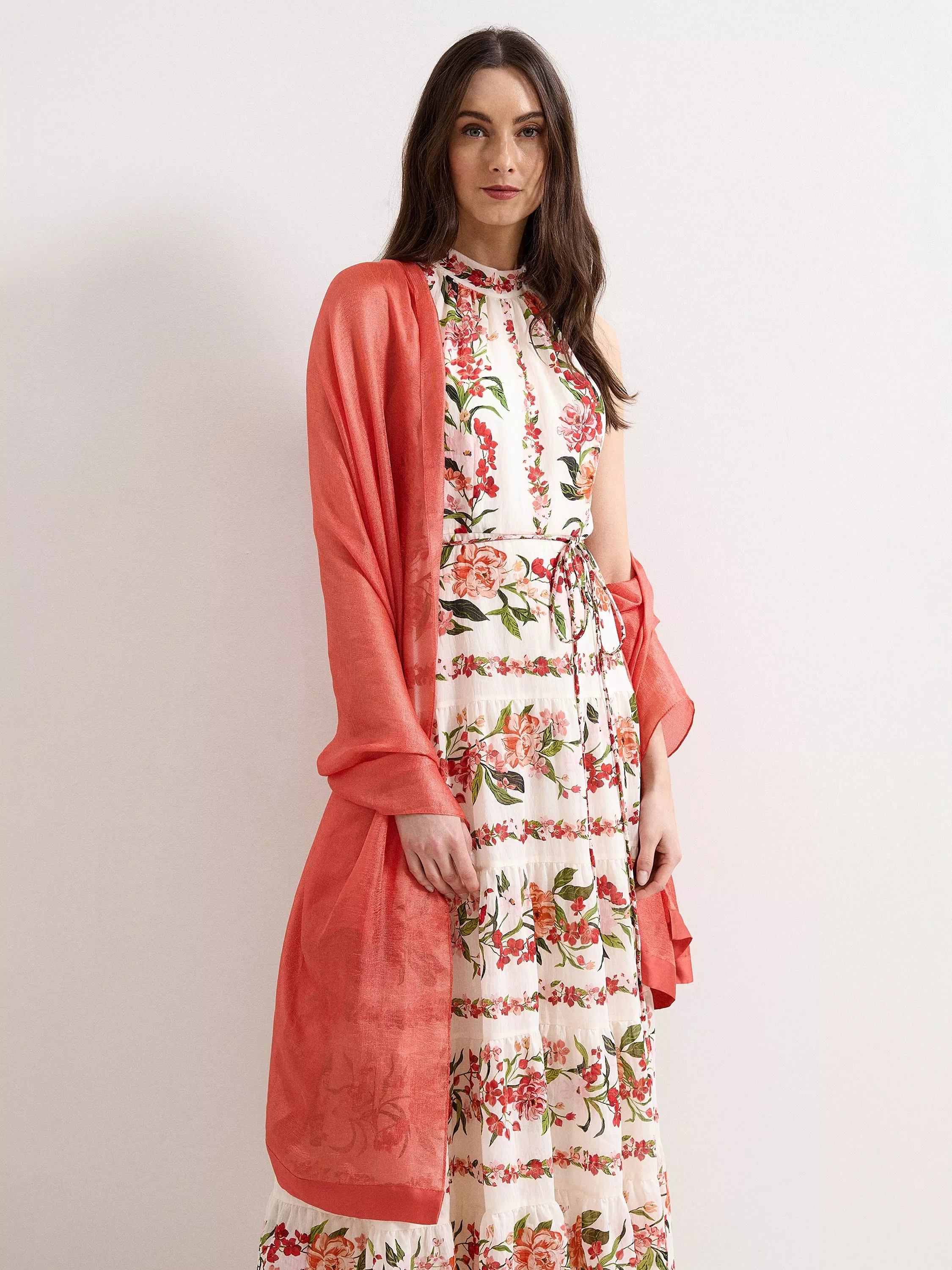 A satin trim scarf from Phase Eight, kept simple for timeless style.