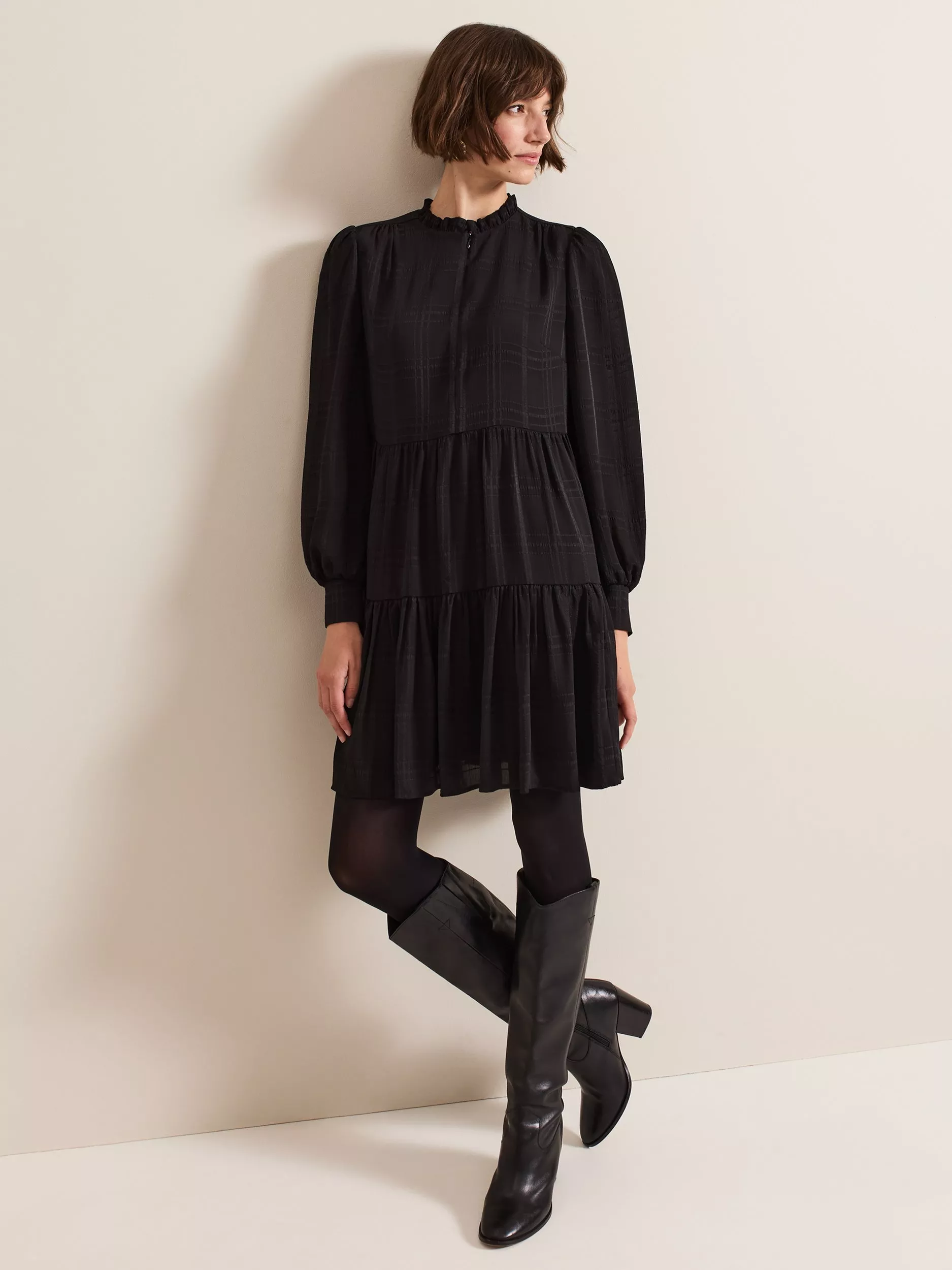 Cut to a swing silhouette, the Shreya dress promises both comfort and style. Featuring long sleeves with ruffled cuff detailing and a tiered mini skirt, it's the perfect everyday dress, for any time of year.