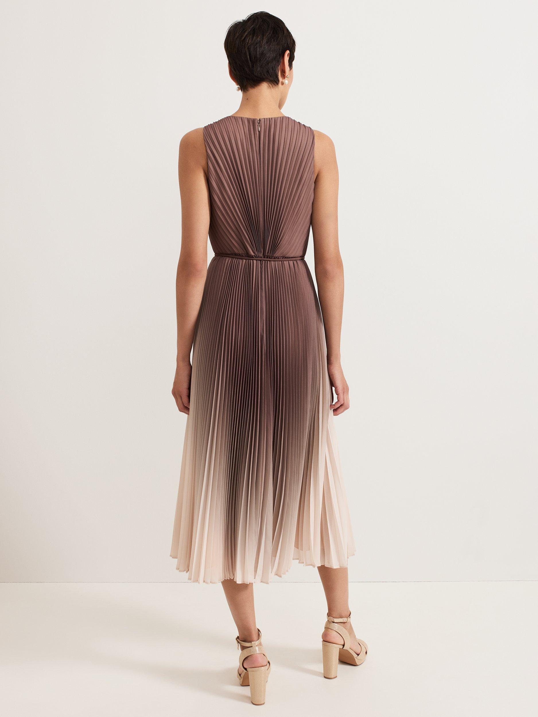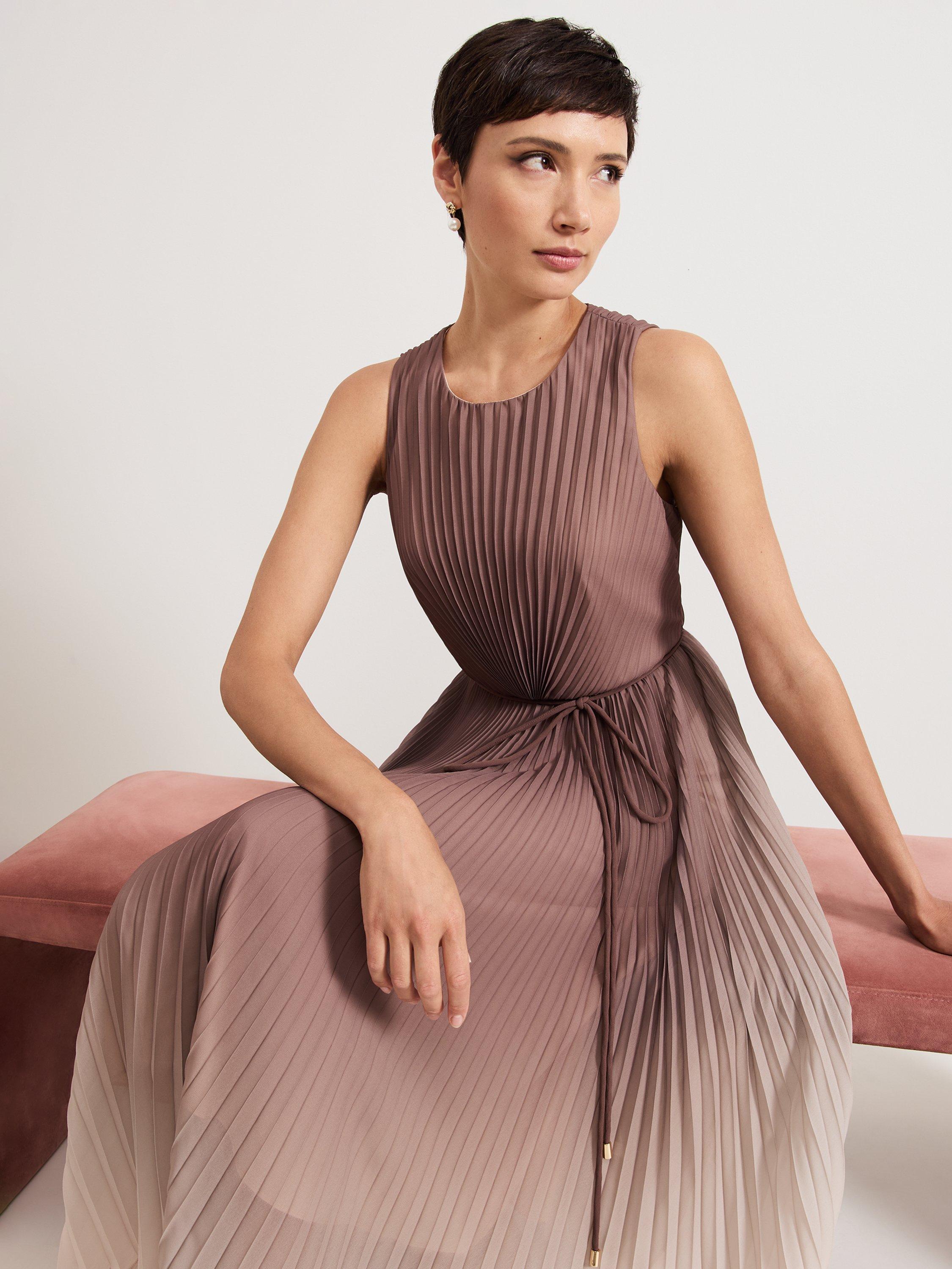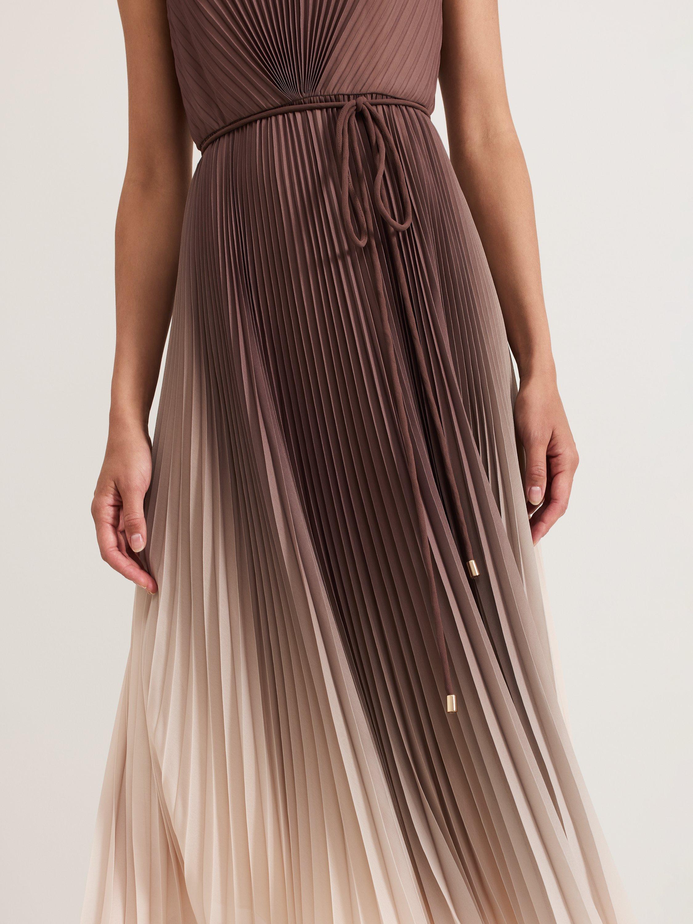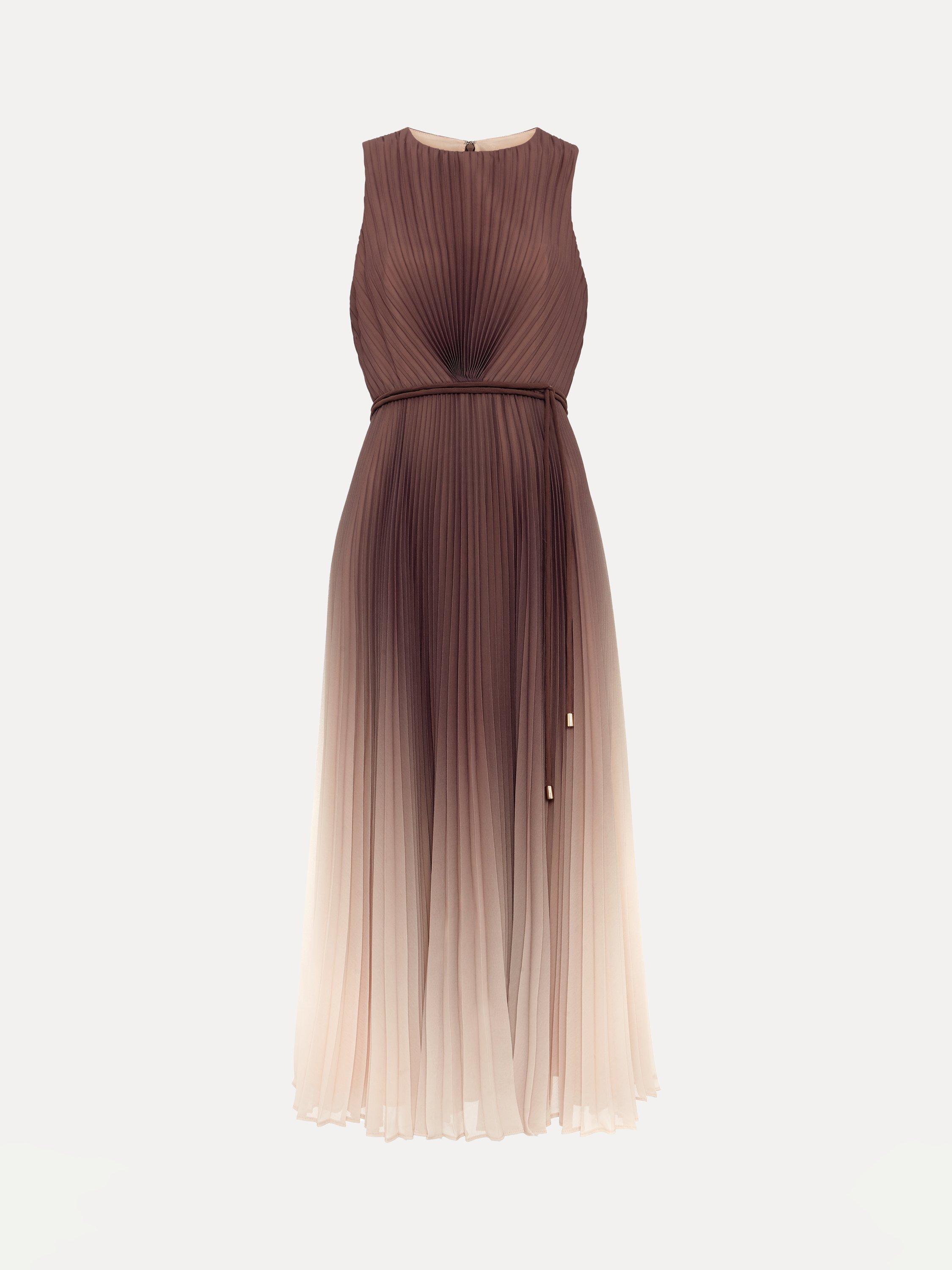 The bestselling Simara silhouette, in a new ombre tone that's perfect for the transition into the new season. With a pleated texture throughout that adds movement to the silhouette, this midi dress subtly highlights your waist with a matching tie detail. Wear with a simple heel and bold coloured clutch for any event.