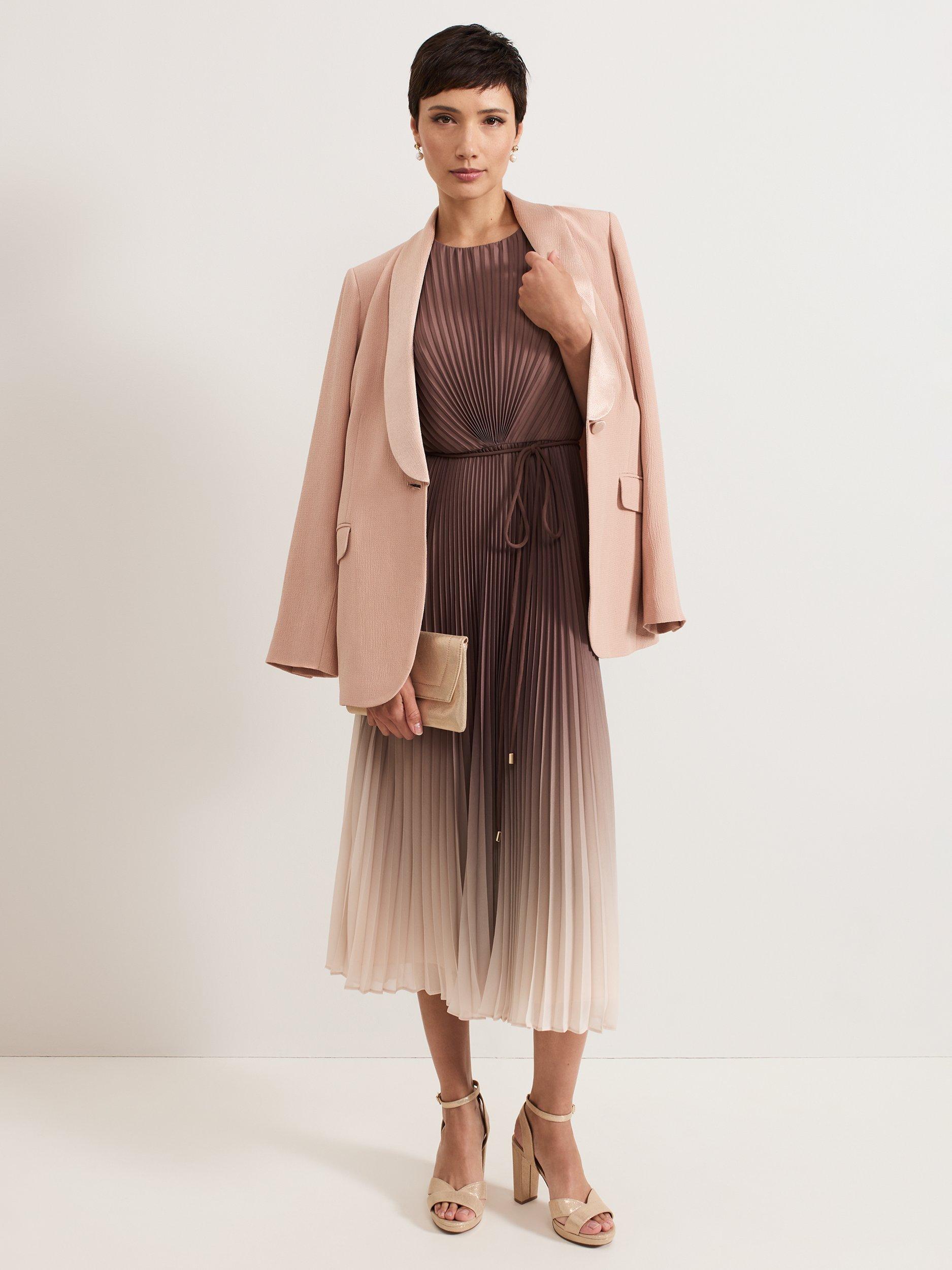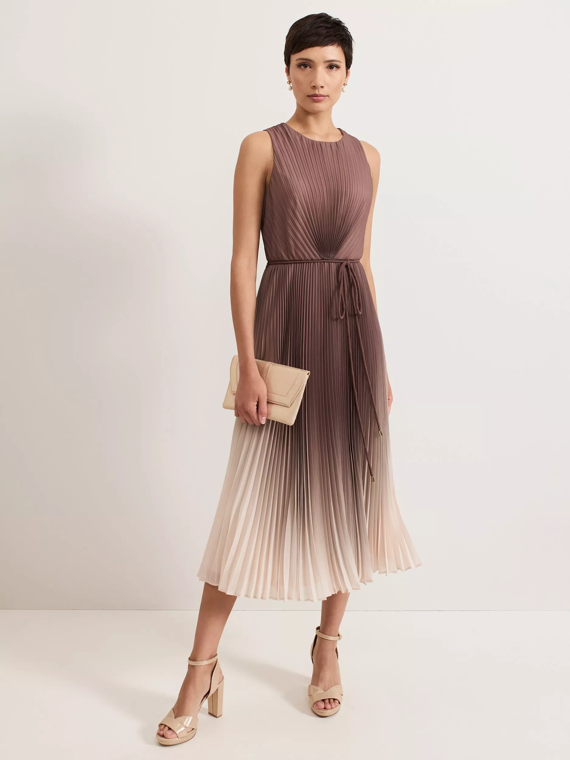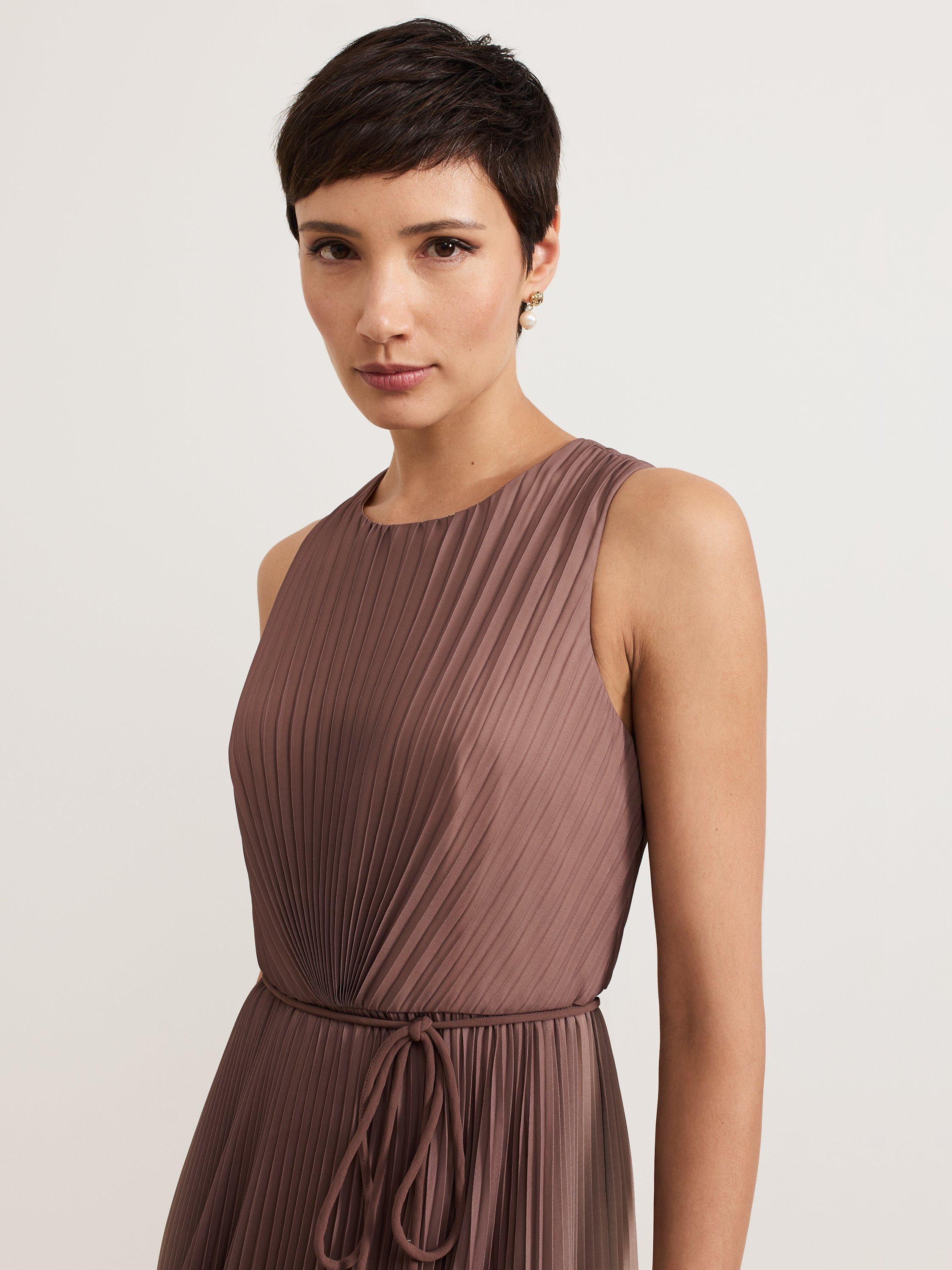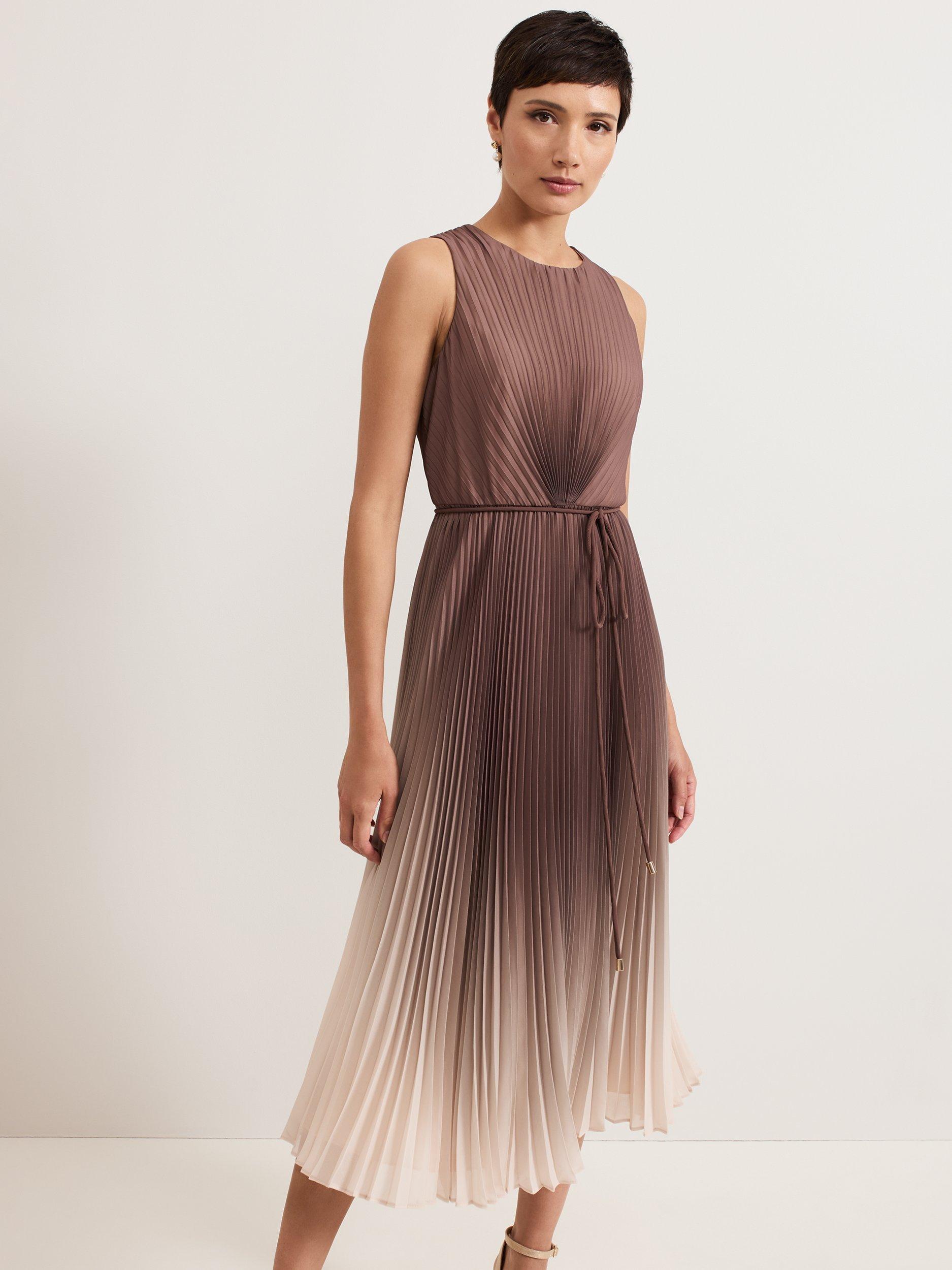 The bestselling Simara silhouette, in a new ombre tone that's perfect for the transition into the new season. With a pleated texture throughout that adds movement to the silhouette, this midi dress subtly highlights your waist with a matching tie detail. Wear with a simple heel and bold coloured clutch for any event.