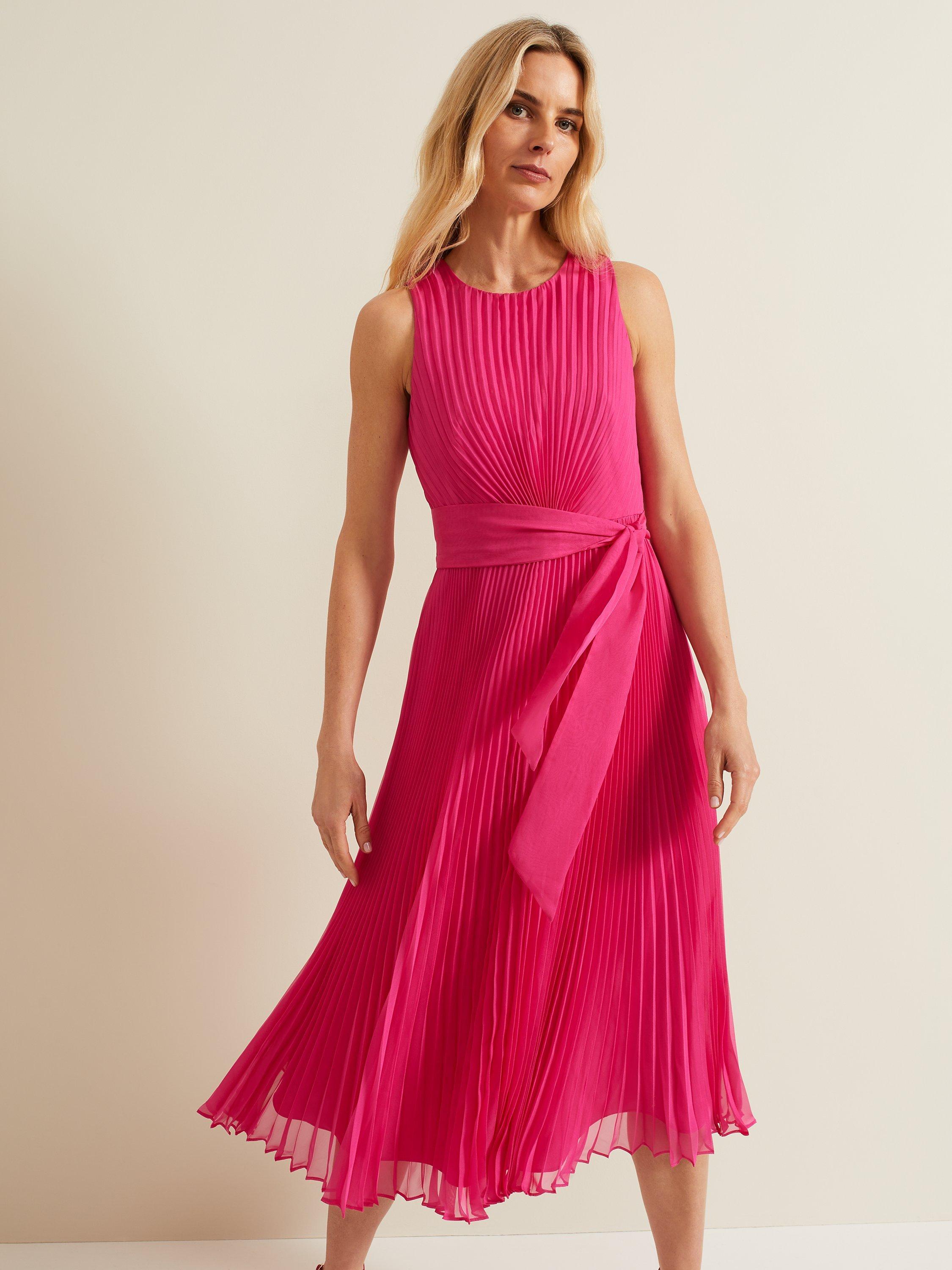 Pleated to perfection in an A-line shape, this mid-length dress from Phase Eight is made from a lightweight fabric. Keeping things simple with a round neckline, this sleeveless style is kept trend-free so that it'll sit in your closet for years to come.