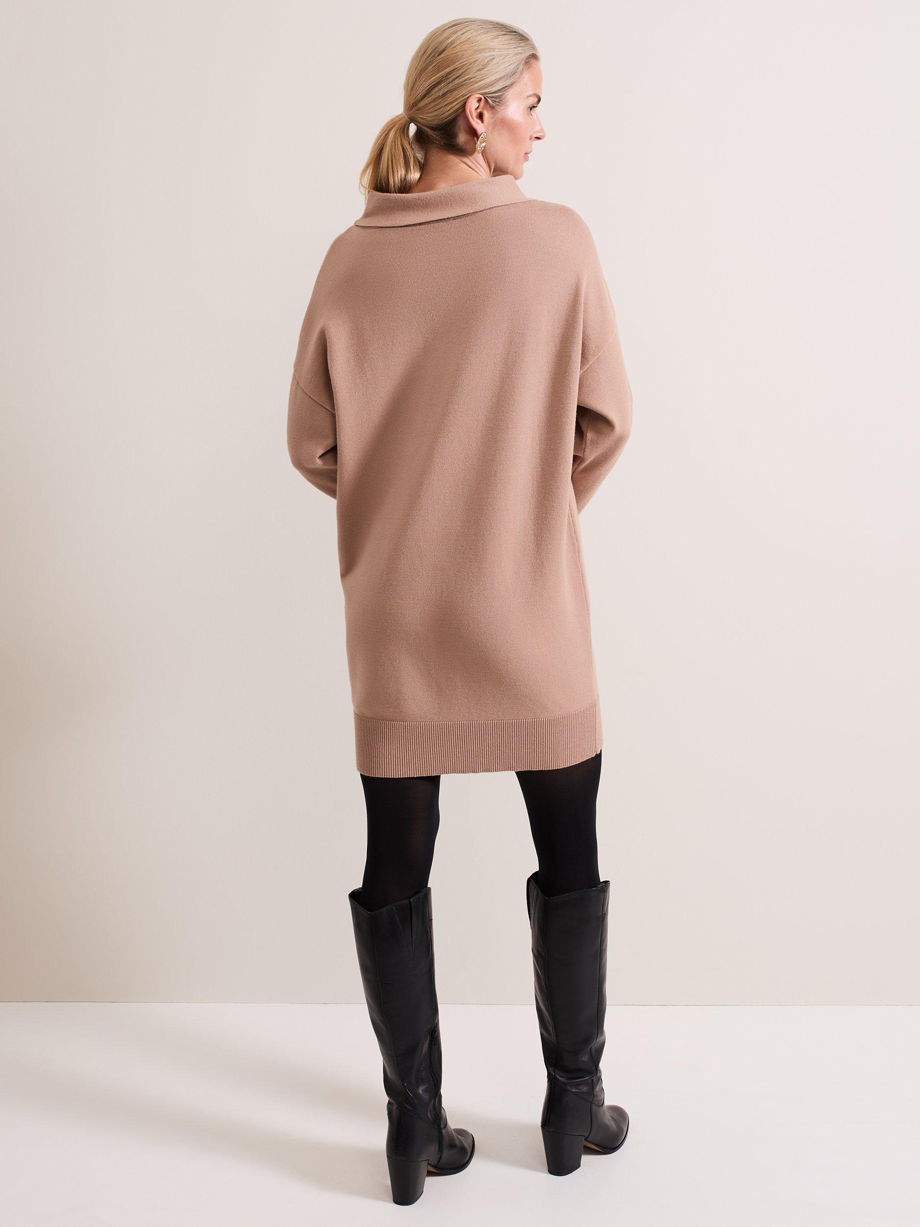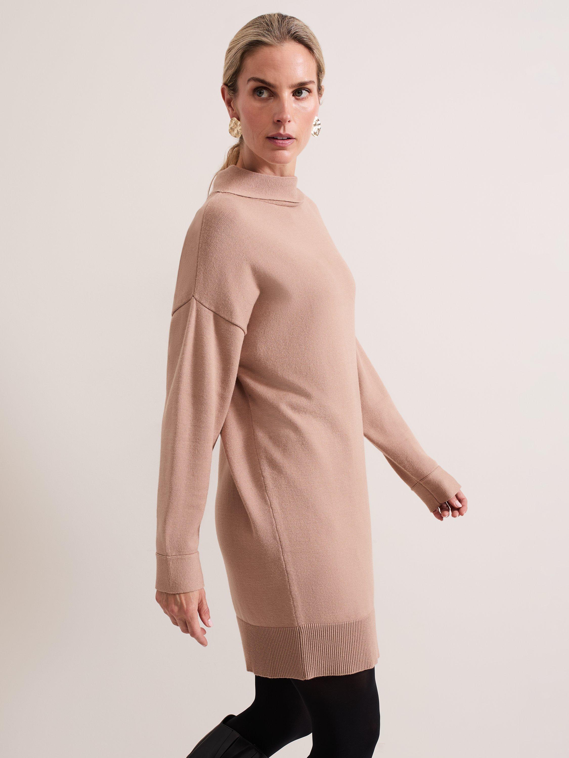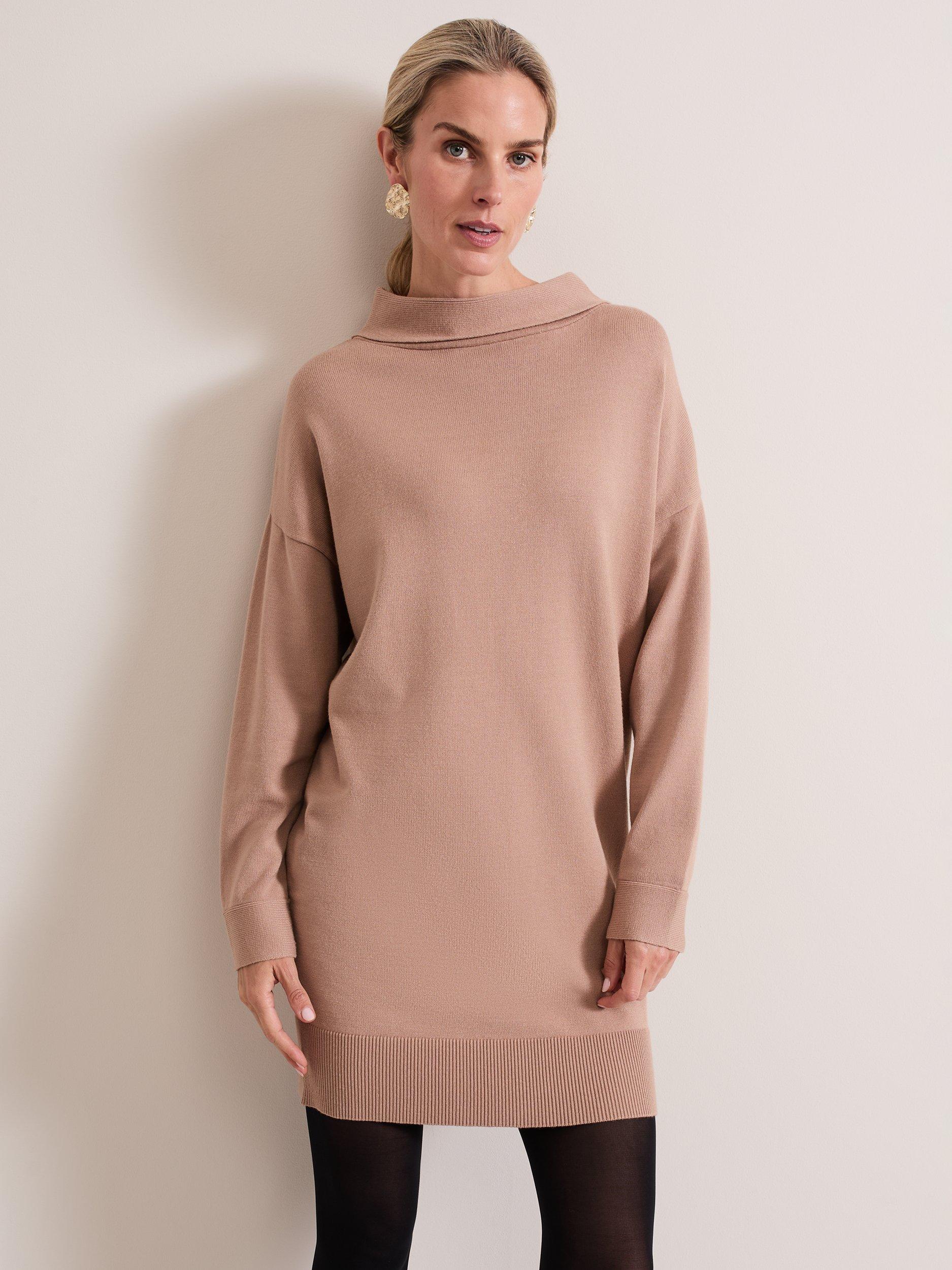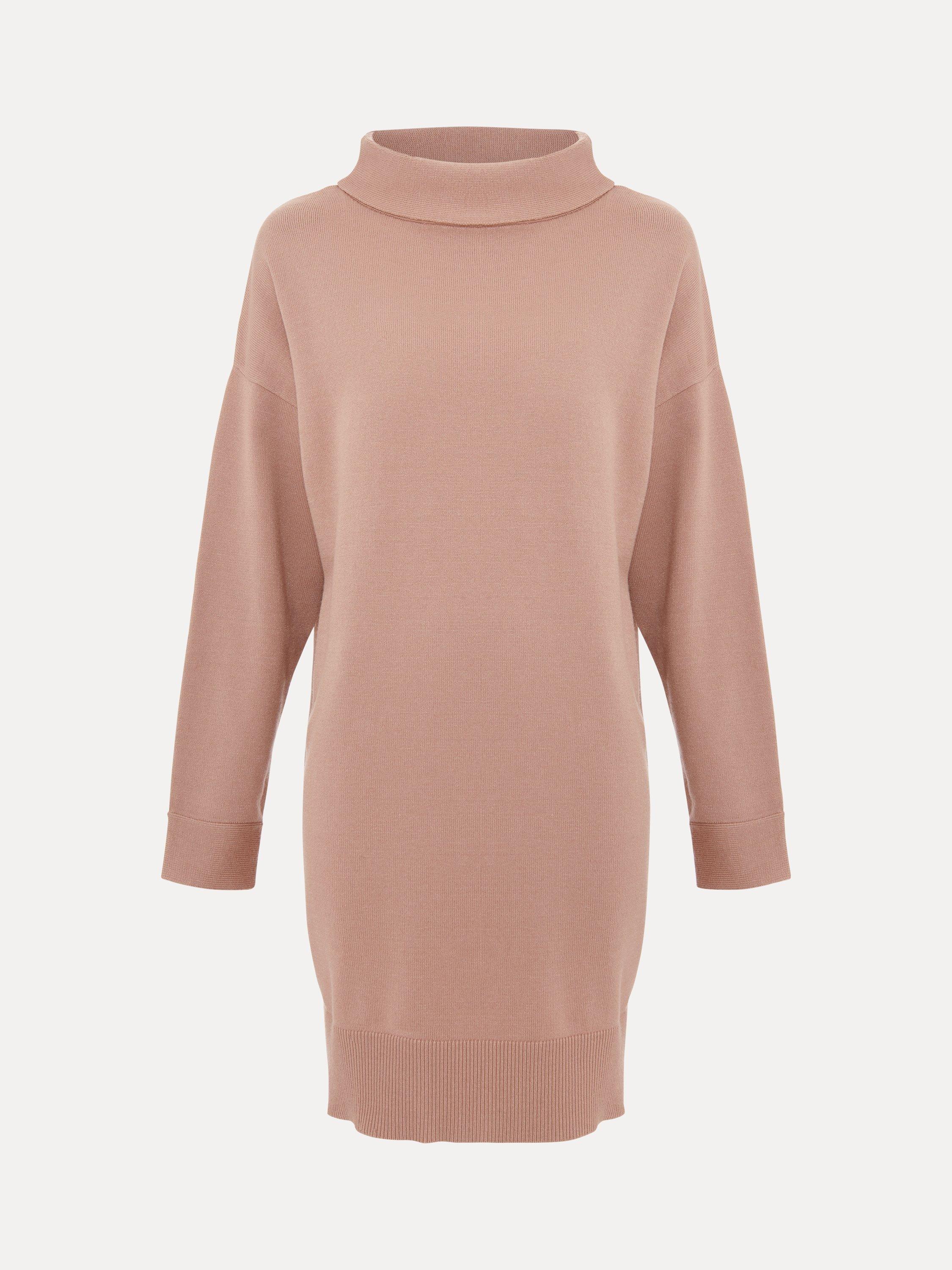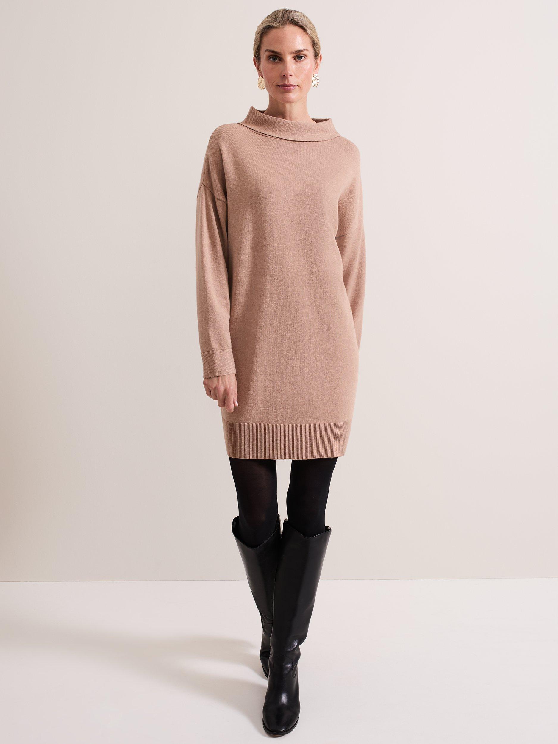 A masterclass in simplicity, this mid-length dress from Phase Eight is the knitted style your wardrobe needs. Featuring contrast ribbed hems, long sleeves and a funnel neck, pair with classic boots for a refined aesthetic.