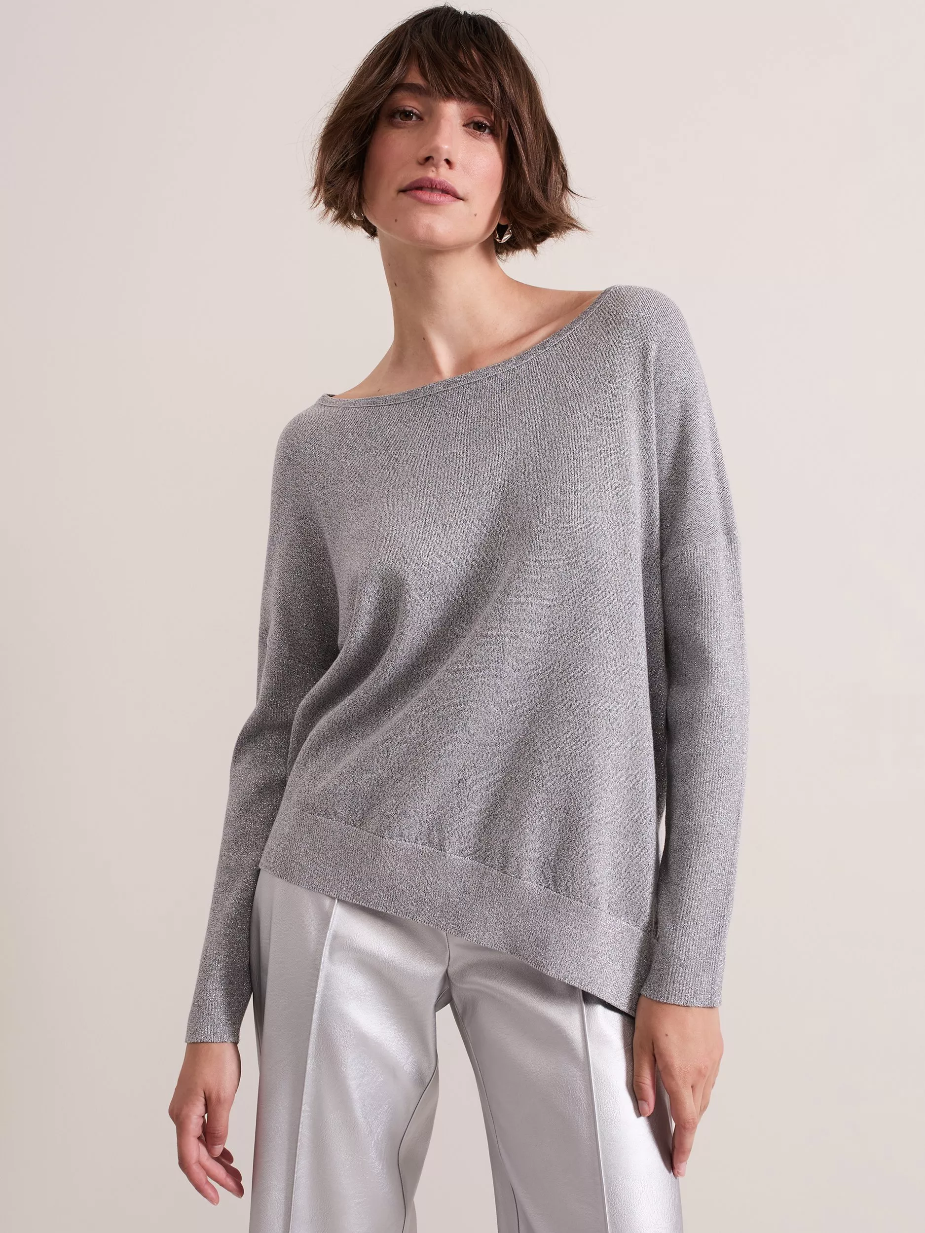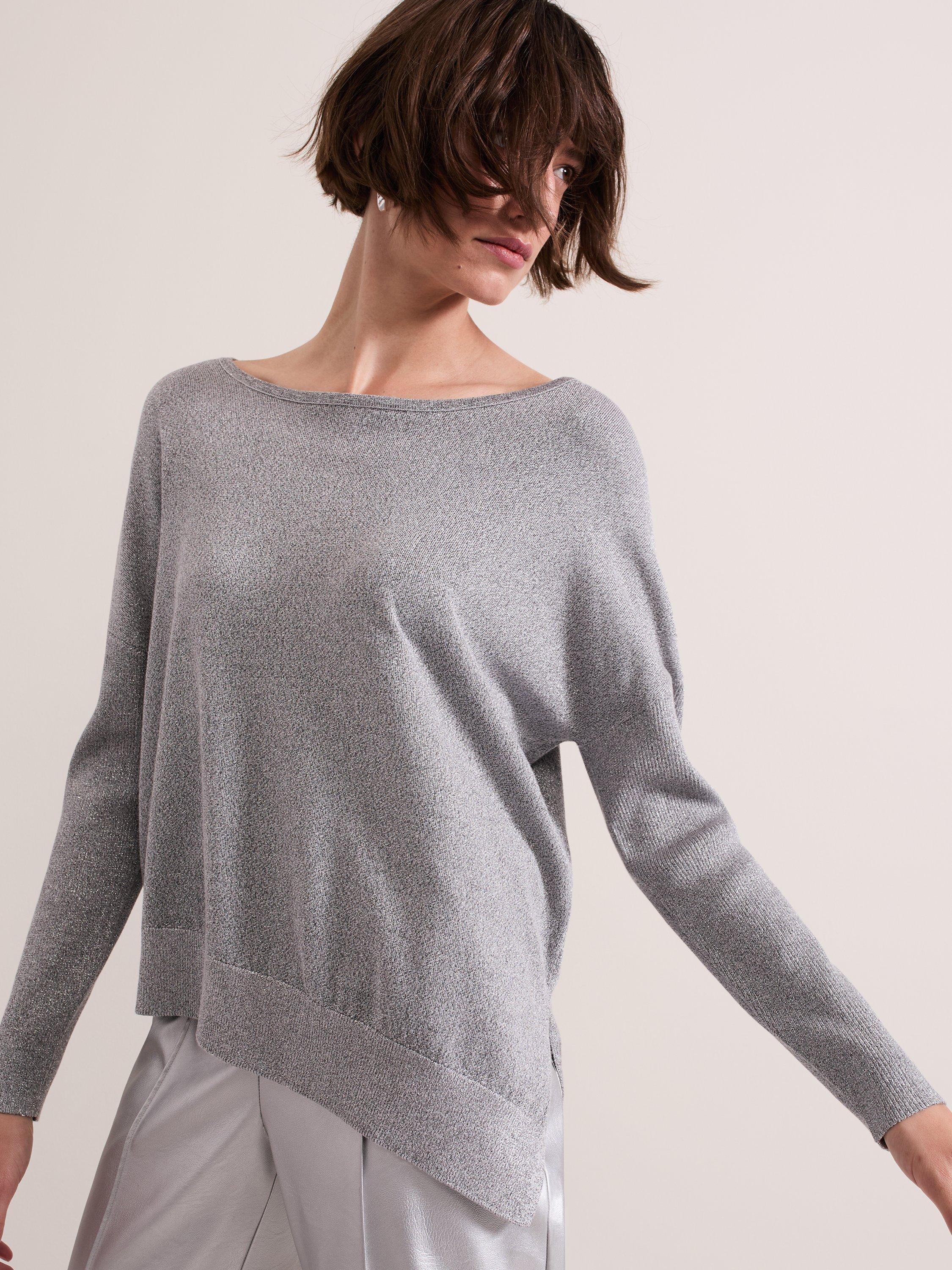 Cut to an asymmetric silhouette with split hem detailing, the Sofia jumper features an elegant boat neck and long sleeves. Pair with any of your favourite separates for a versatile all-day wear style.