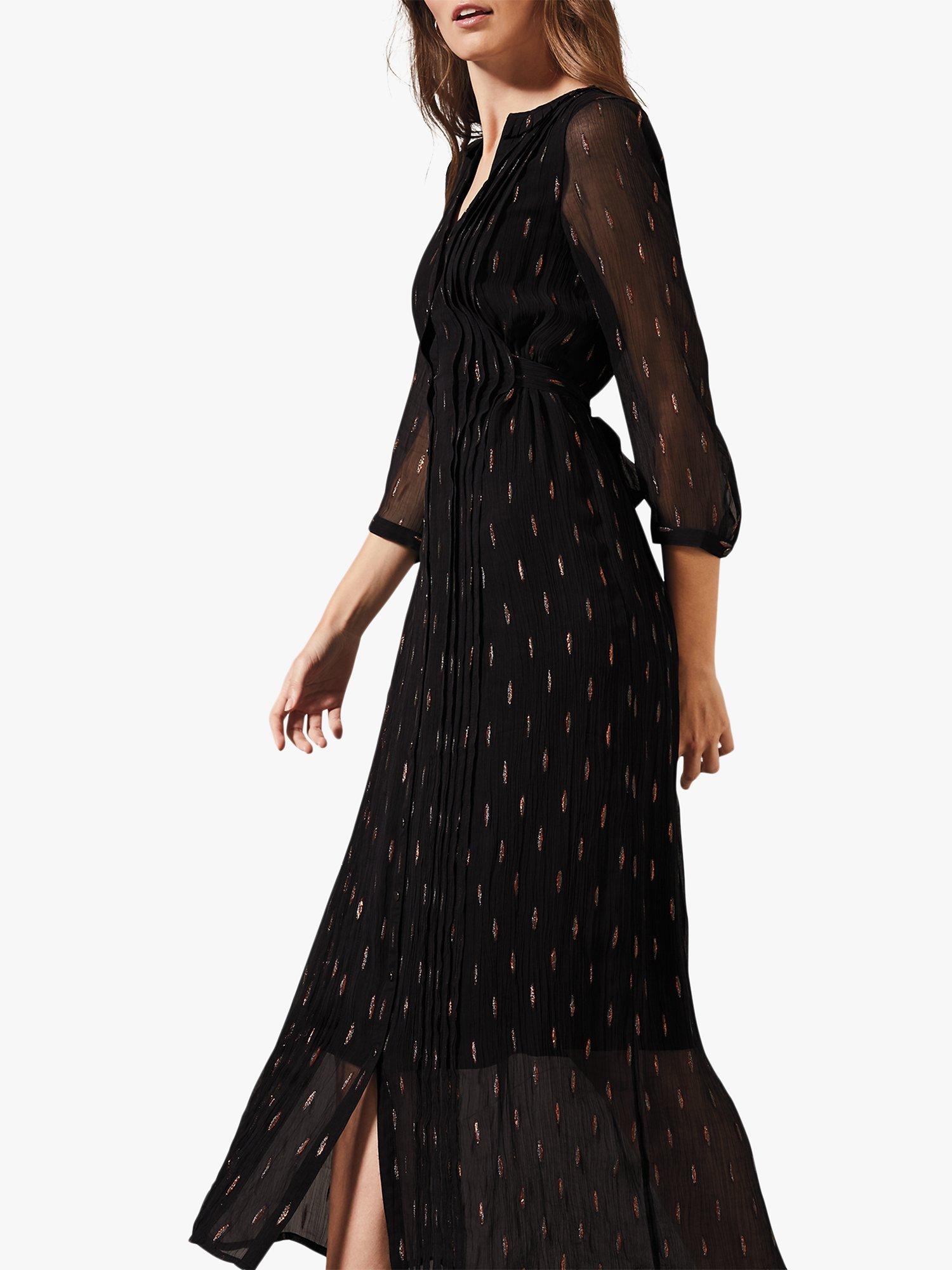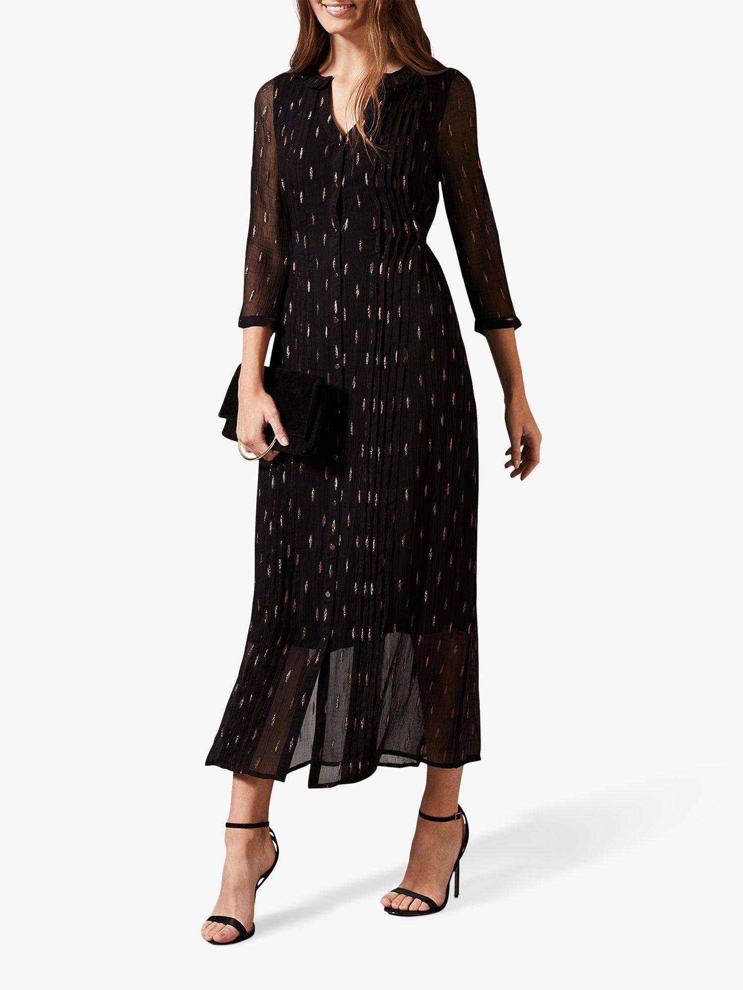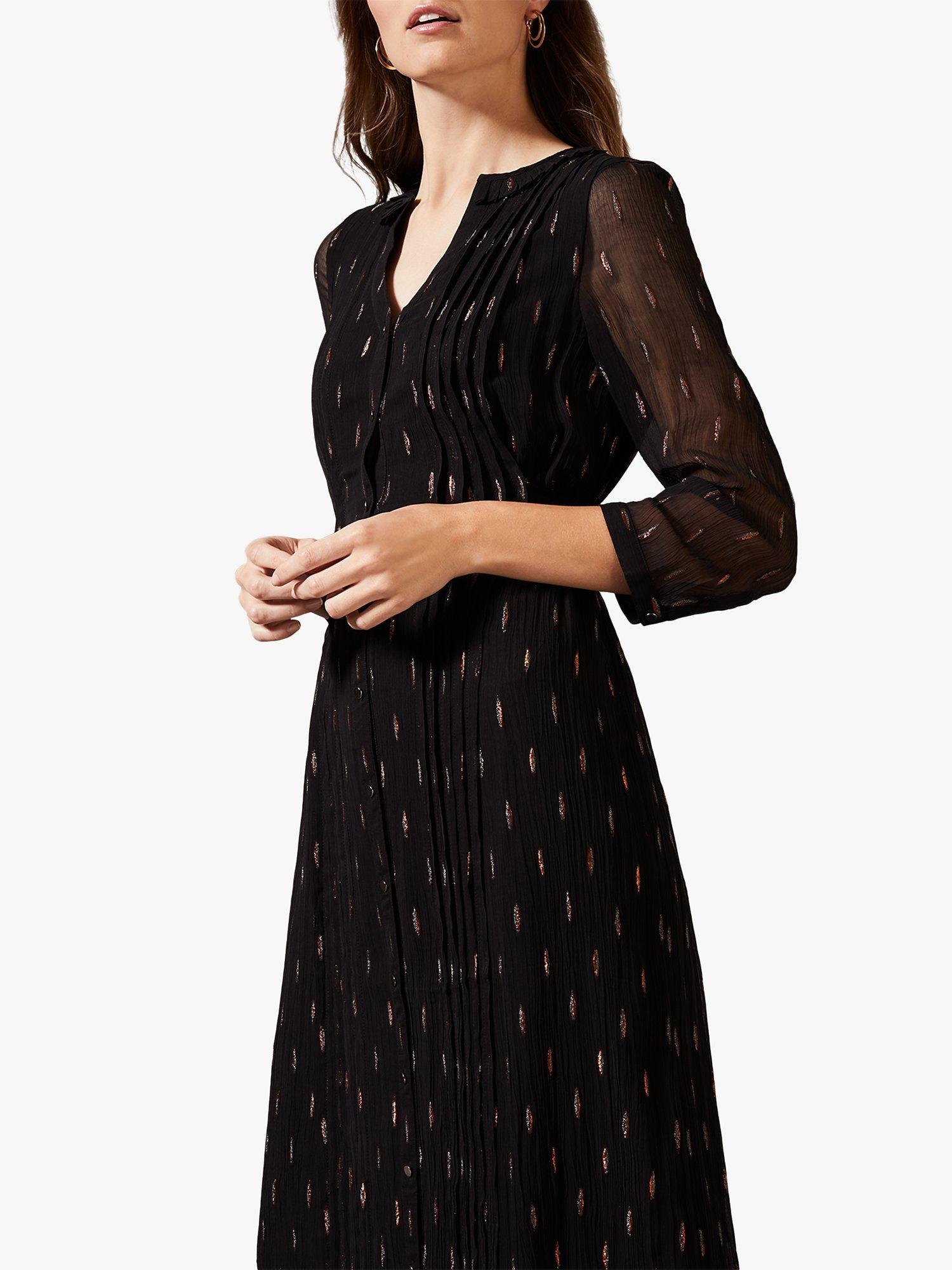 Embellished with a teardrop foil pattern and accented with sheer sleeves, this dress from Phase Eight is an elegant choice for evenings out and parties. It's made from a soft textured fabric, pleated through the bodice for a smart look that gently flares towards the hem and has a button front with a deep notched neckline. Complement with your best heels for a sophisticated finishing touch.