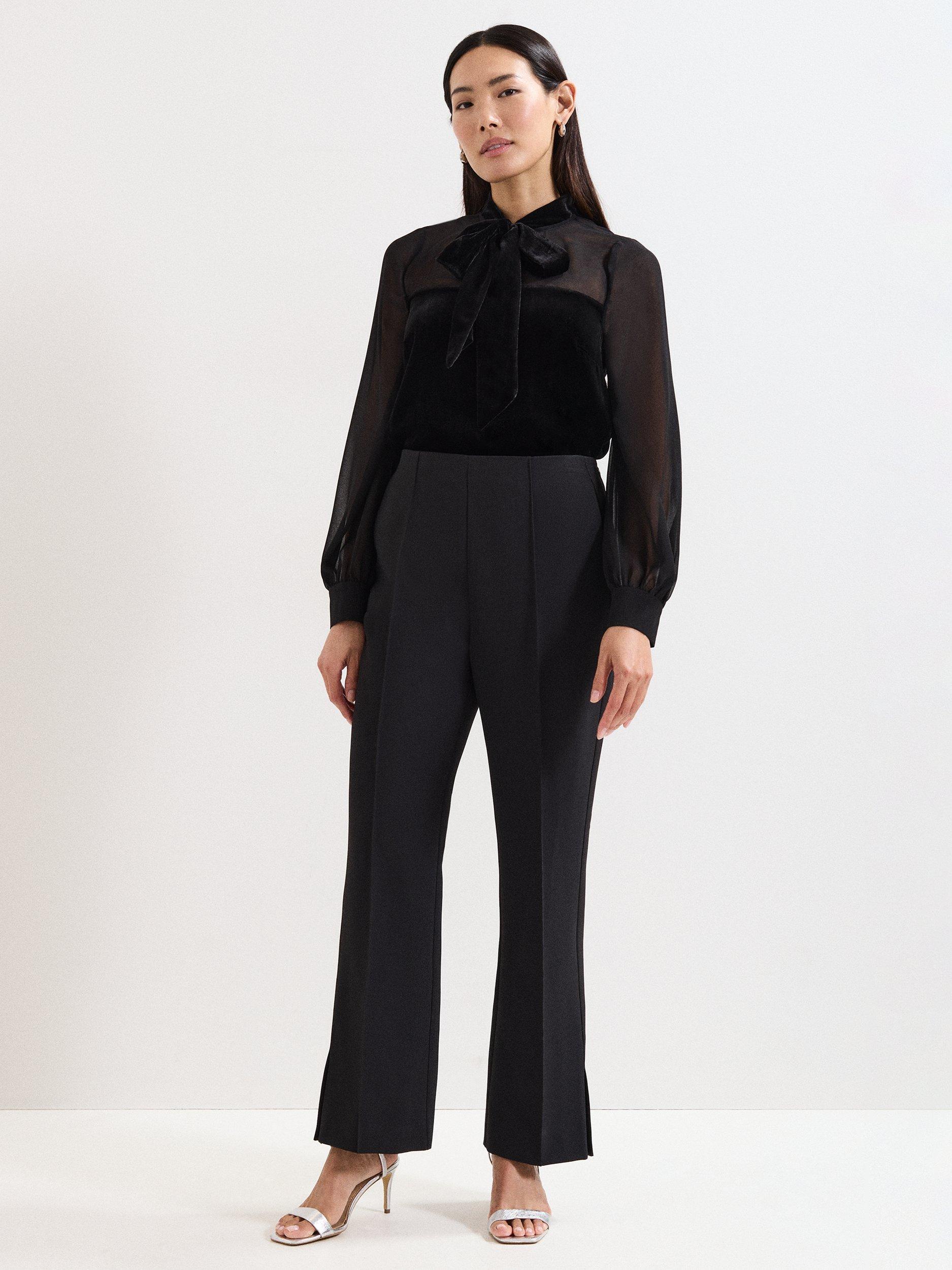 A pair of straight-leg tuxedo trousers by Phase Eight. Balancing sharp lines and all-day comfort, they sit mid rise with a zip fly and a regular length.