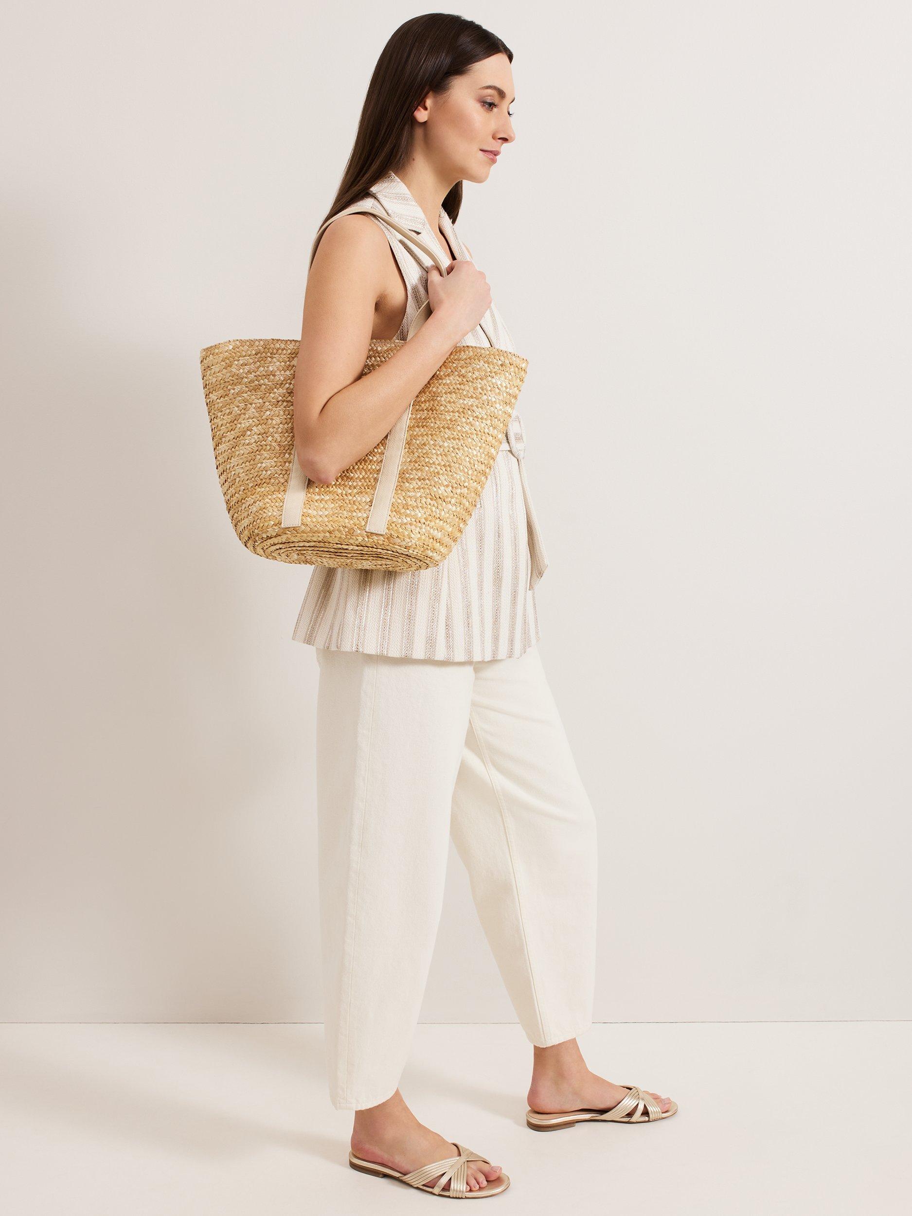 A wardrobe staple, carry your essentials in style with this sunshine-ready straw shopper bag.