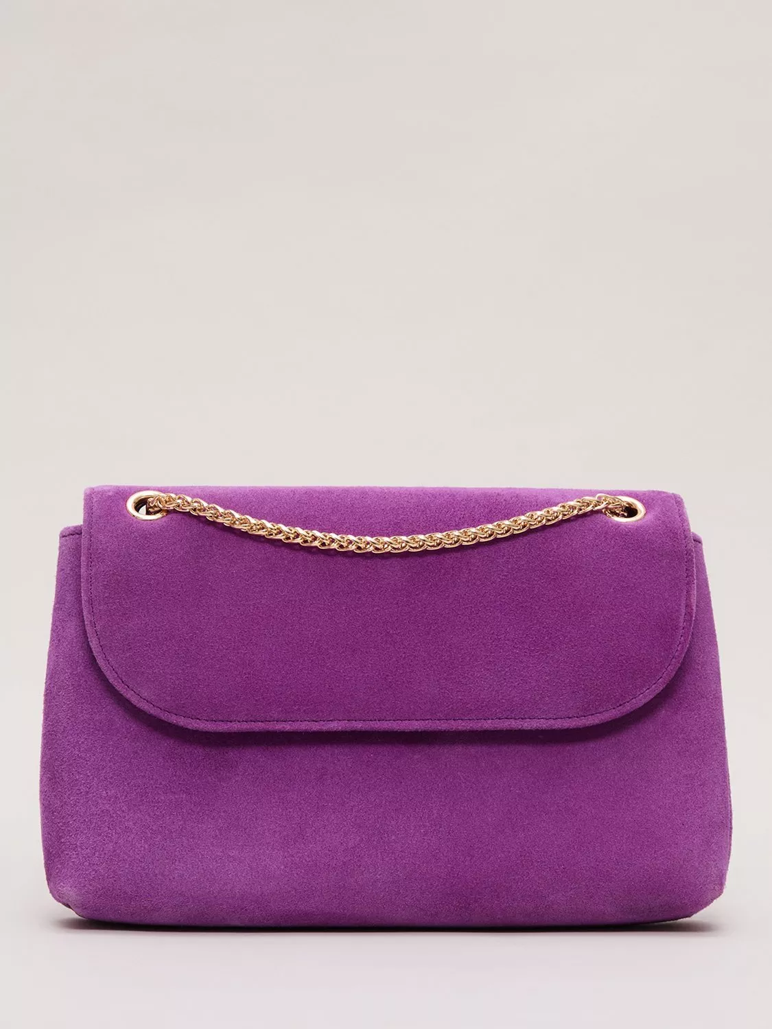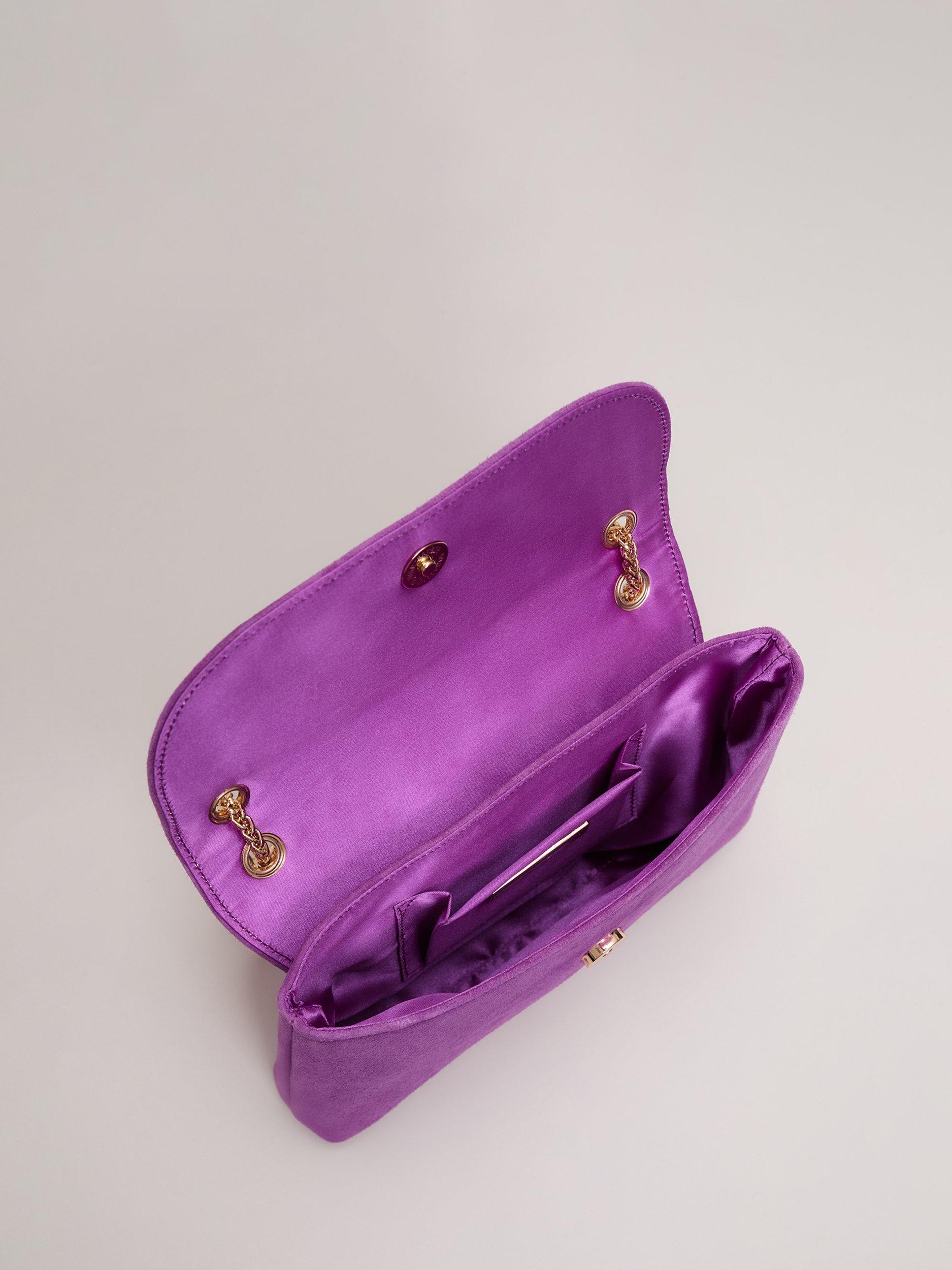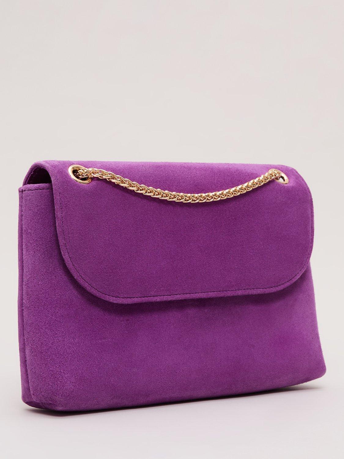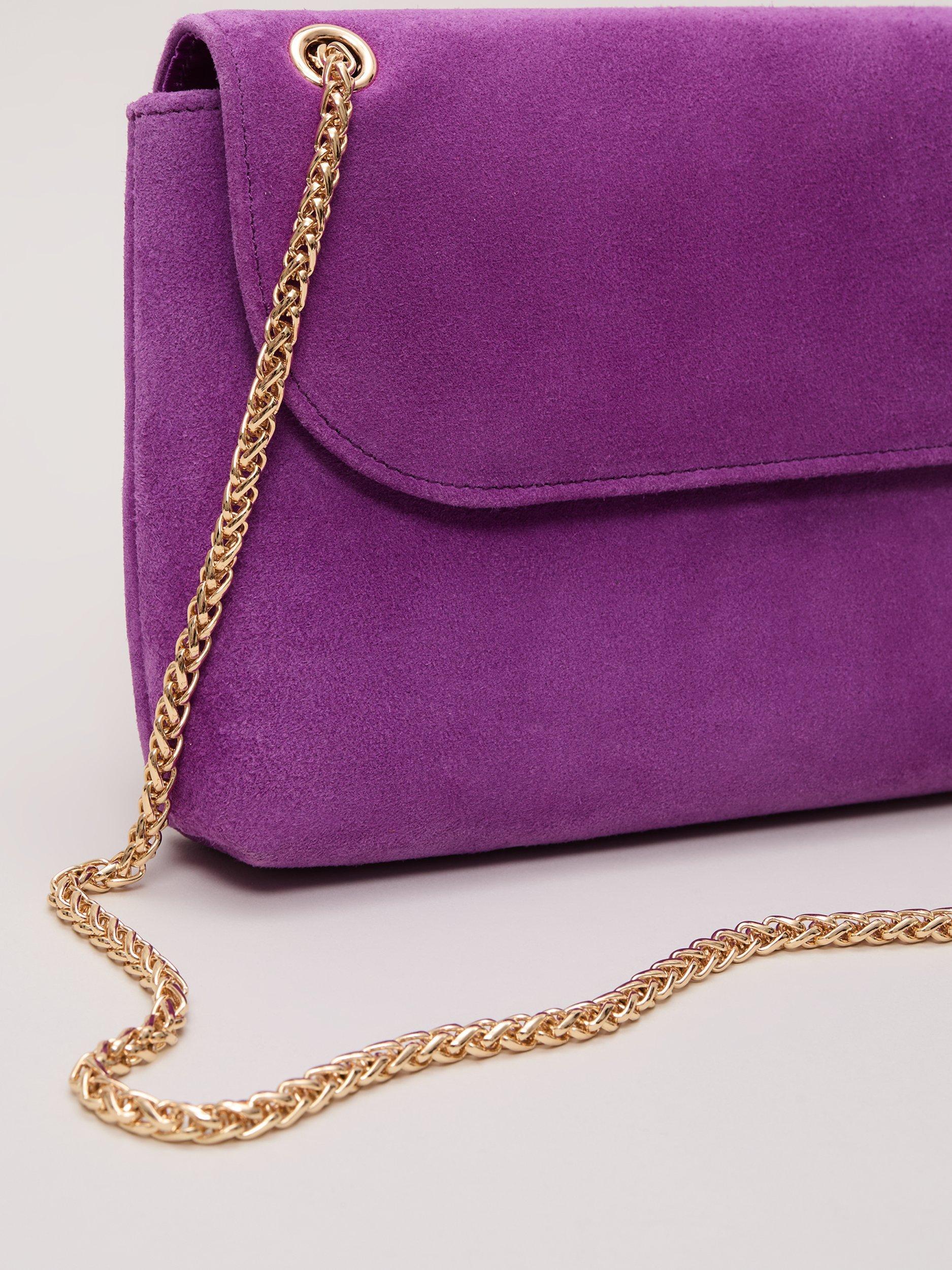 Designed in a luxurious suede material, this clutch bag from Phase Eight is ideal as a sophisticated accessory to finish all your outfits. Finished with a soft satin interior, our bag fastens with a concealed magnetic clasp and can be worn as a crossbody style with the gold chain or used as a true clutch for versatile styling.